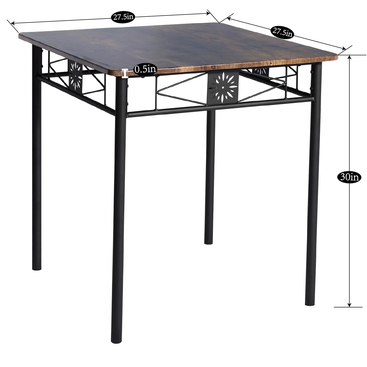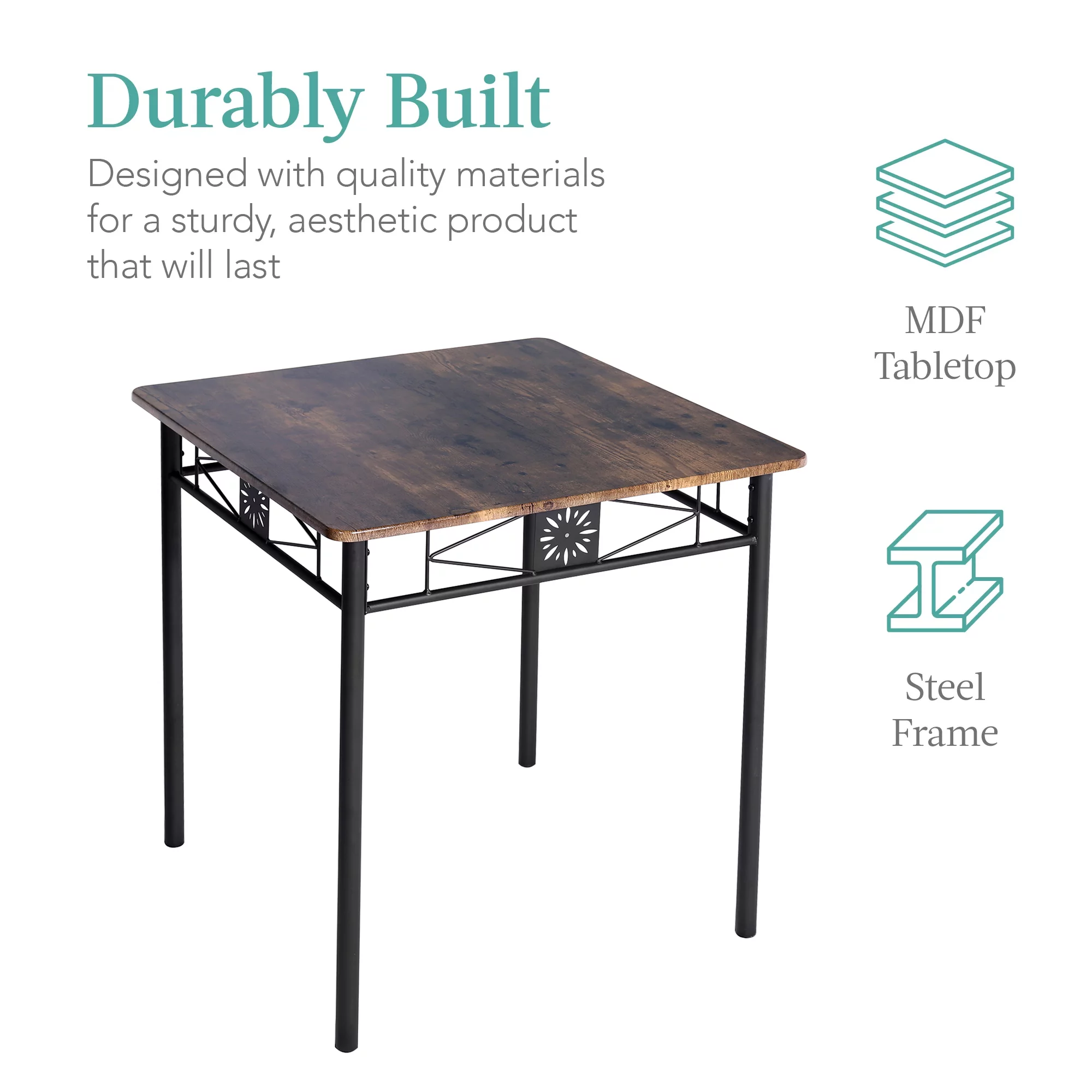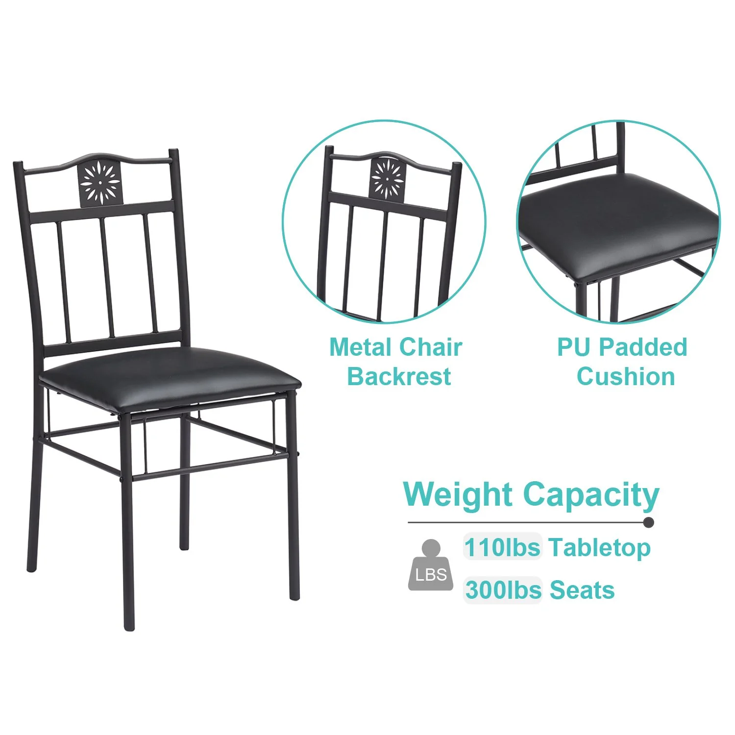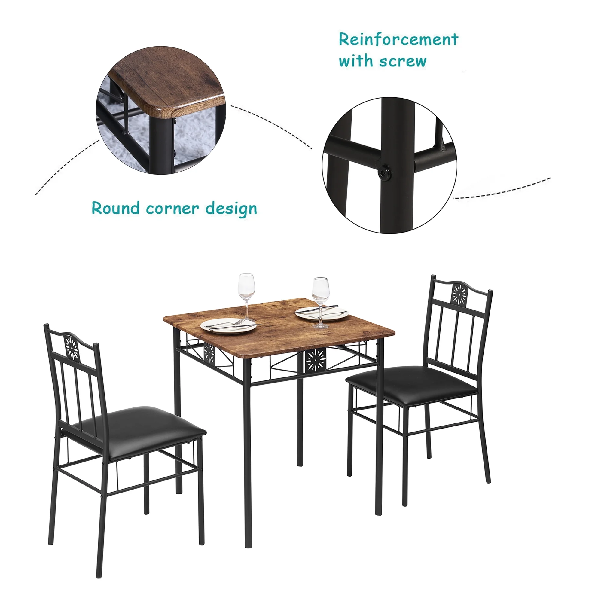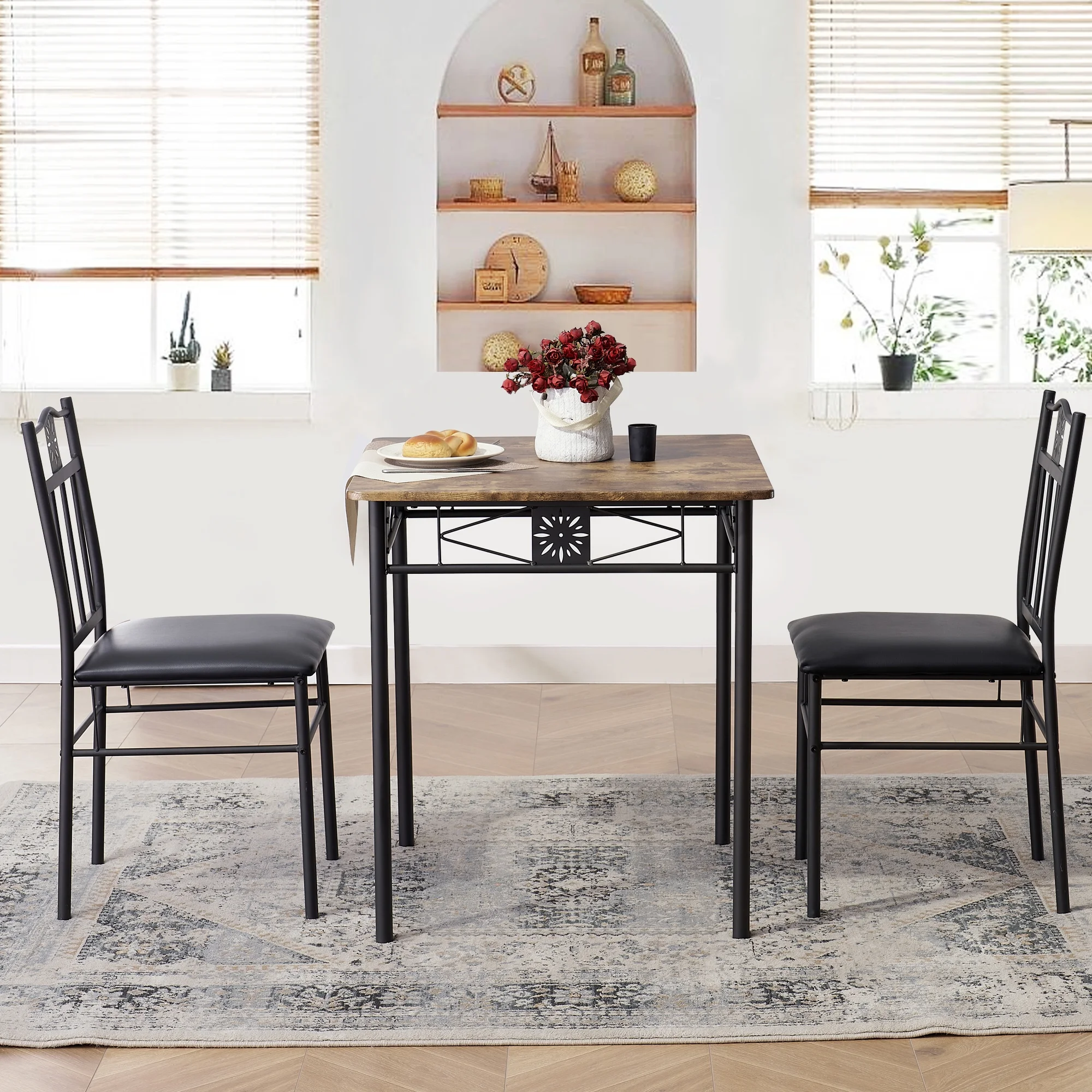 3-Piece Dining Table Sets with 2 Black Chairs for Kitchen, Dinette, Breakfast Nook, Brown