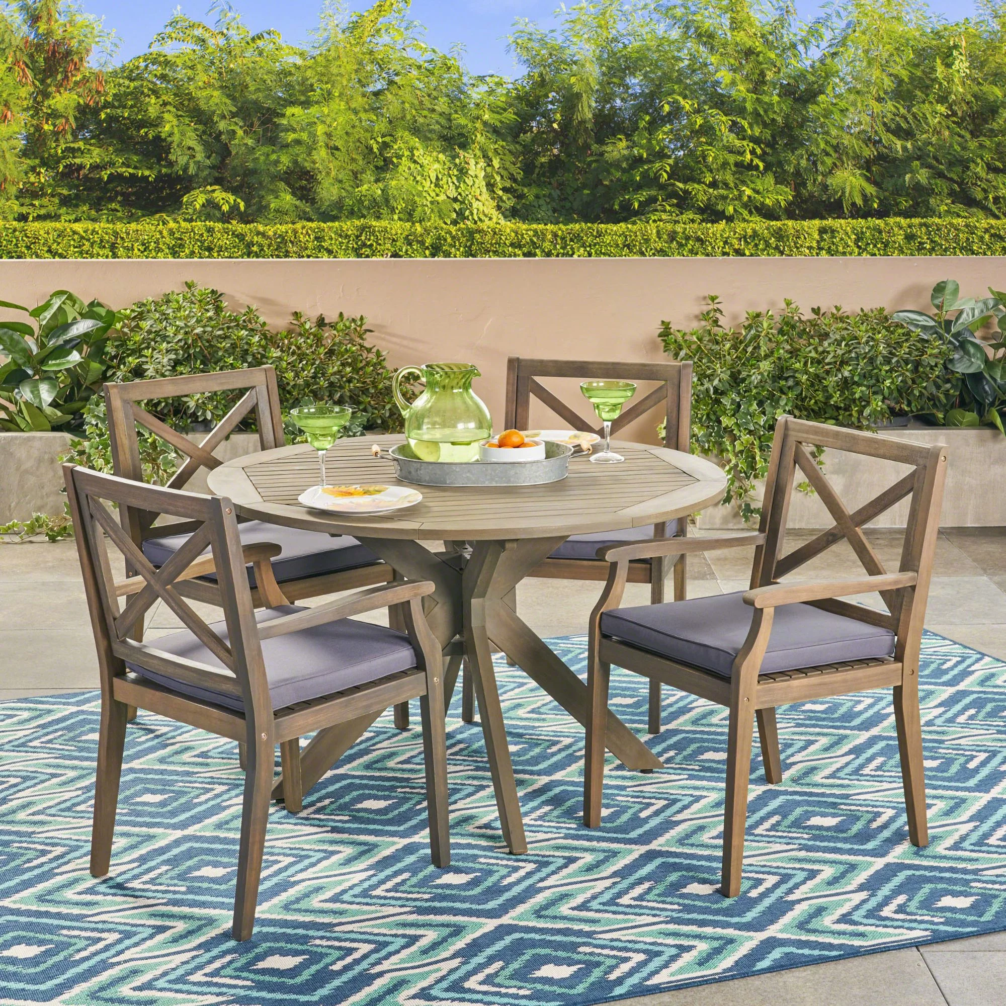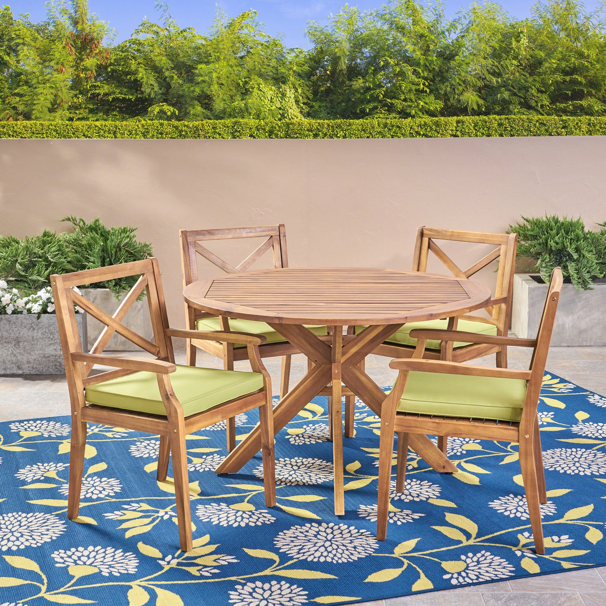 5-Piece Teak Brown Contemporary Outdoor Furniture Patio Dining Set - Gary Cushions