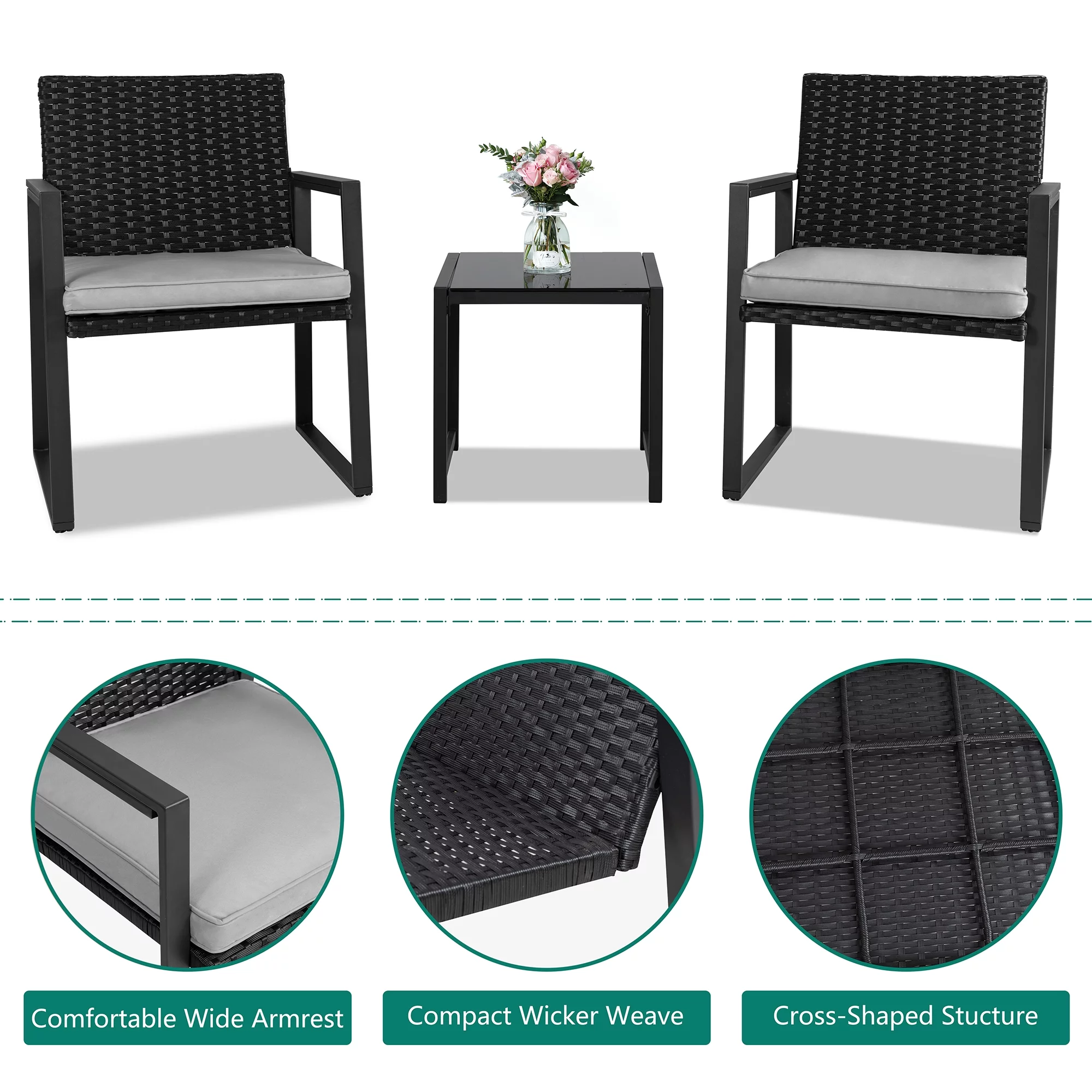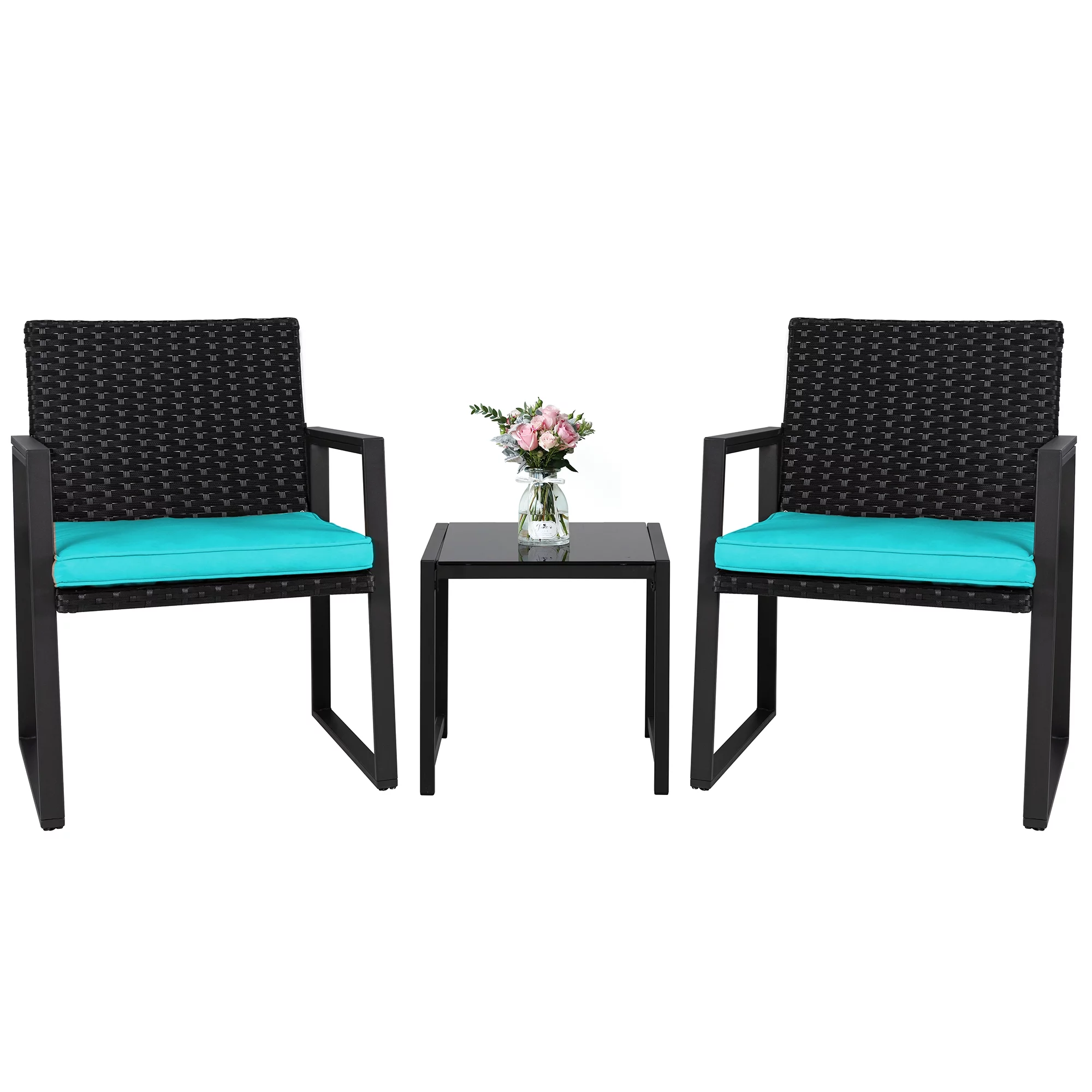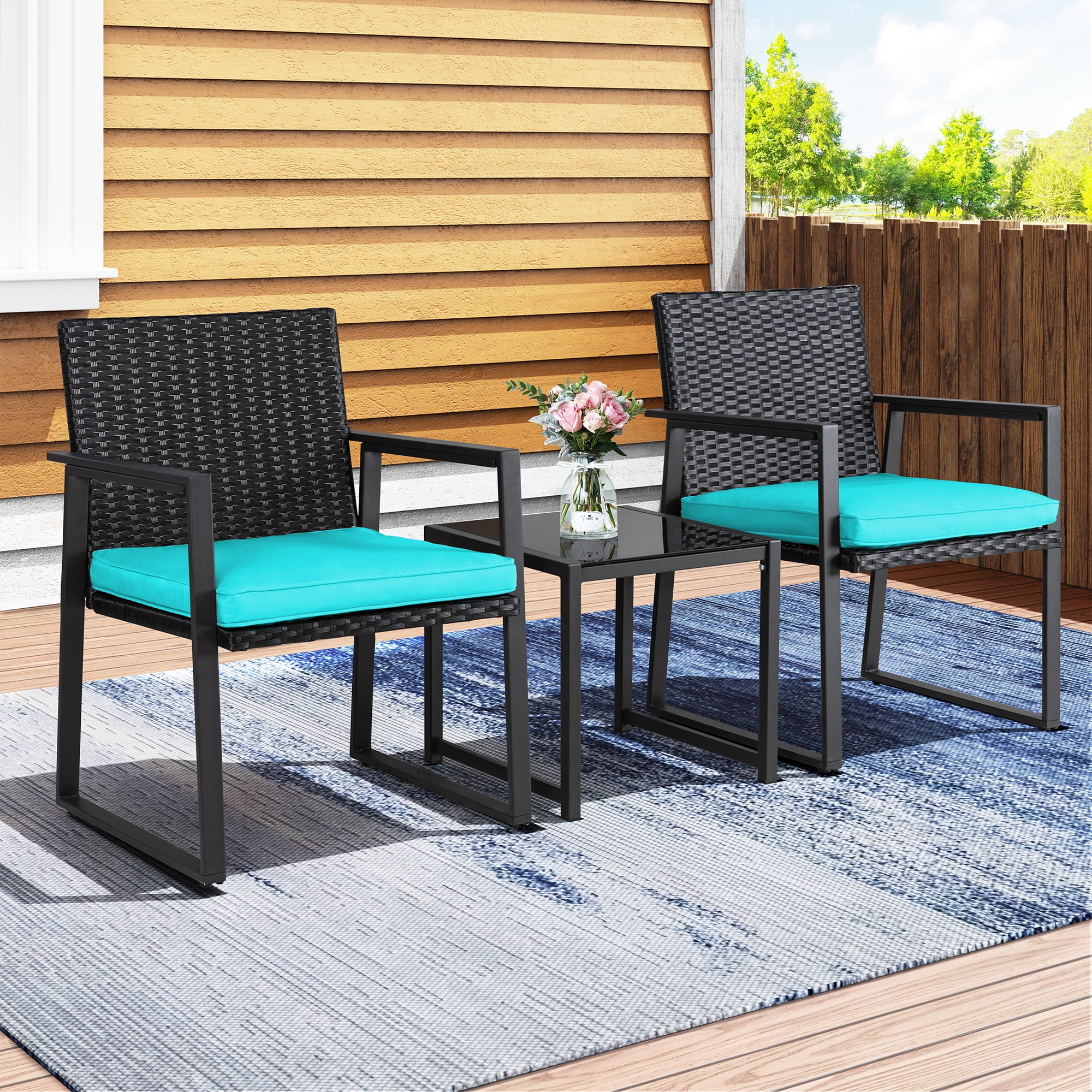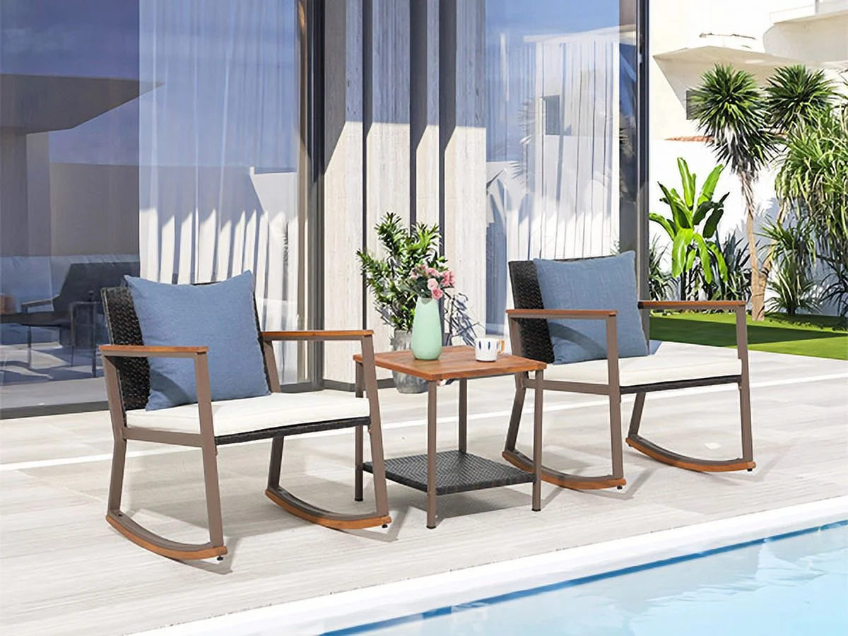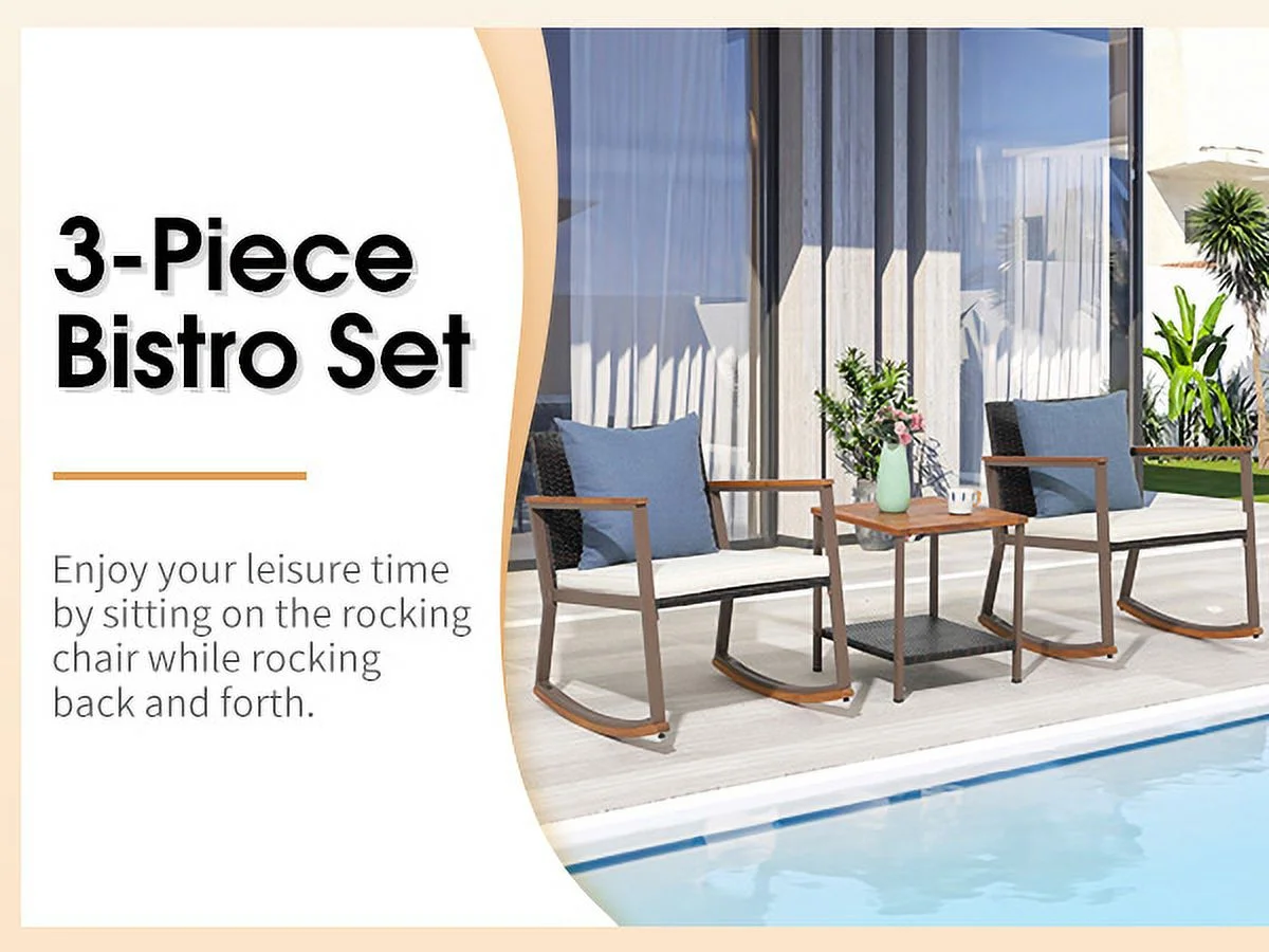 3 Piece Patio Set, Outdoor Furniture Wicker Bistro Set Rattan Chair Conversation Sets with Coffee Table and Cushions