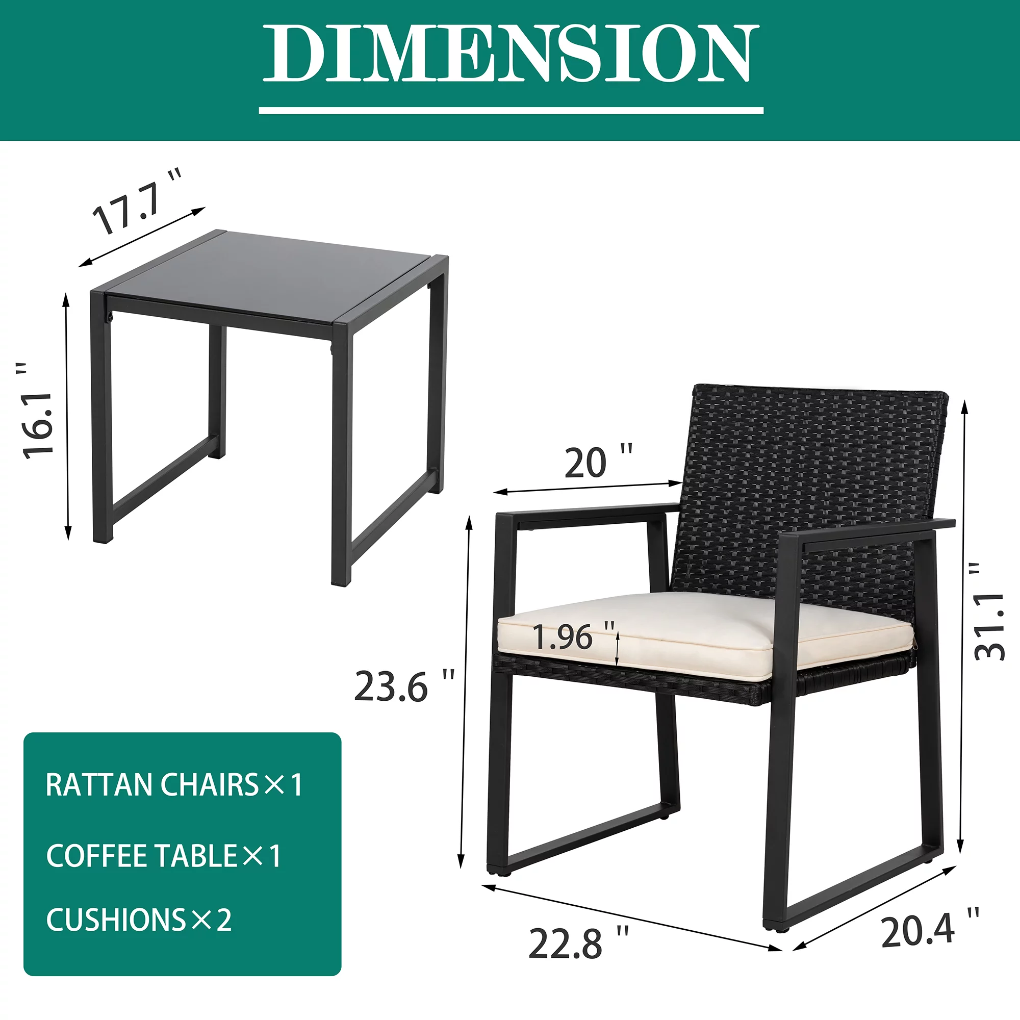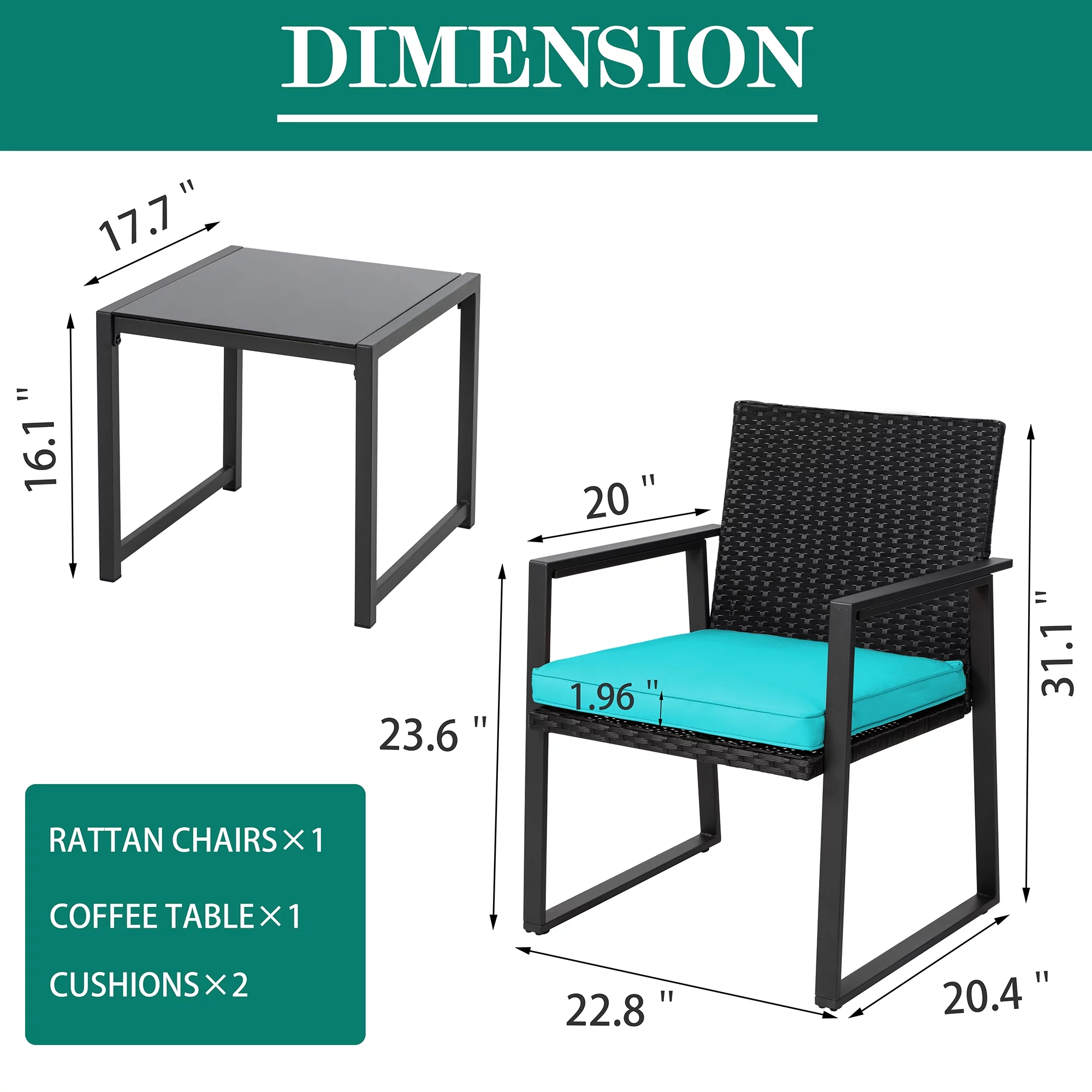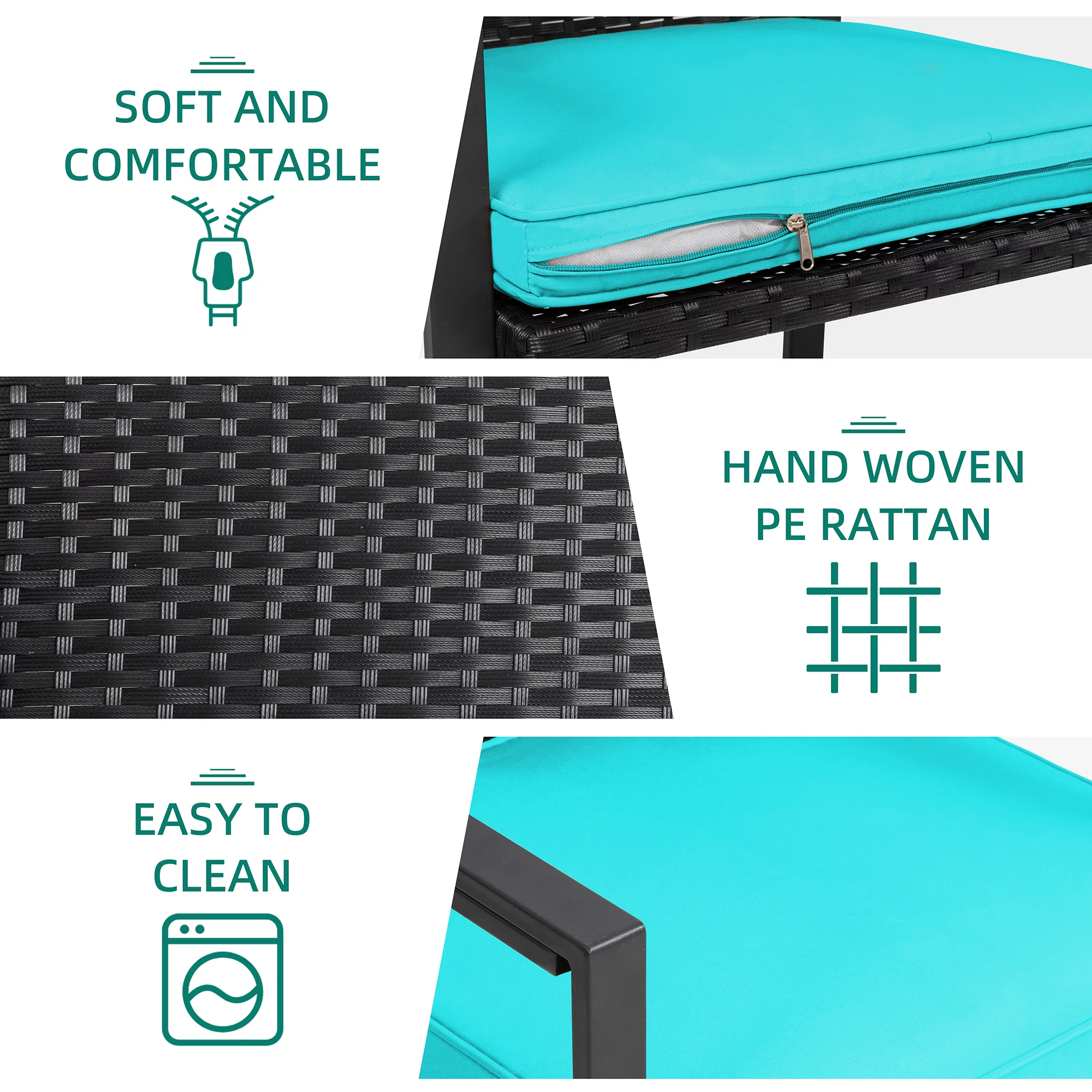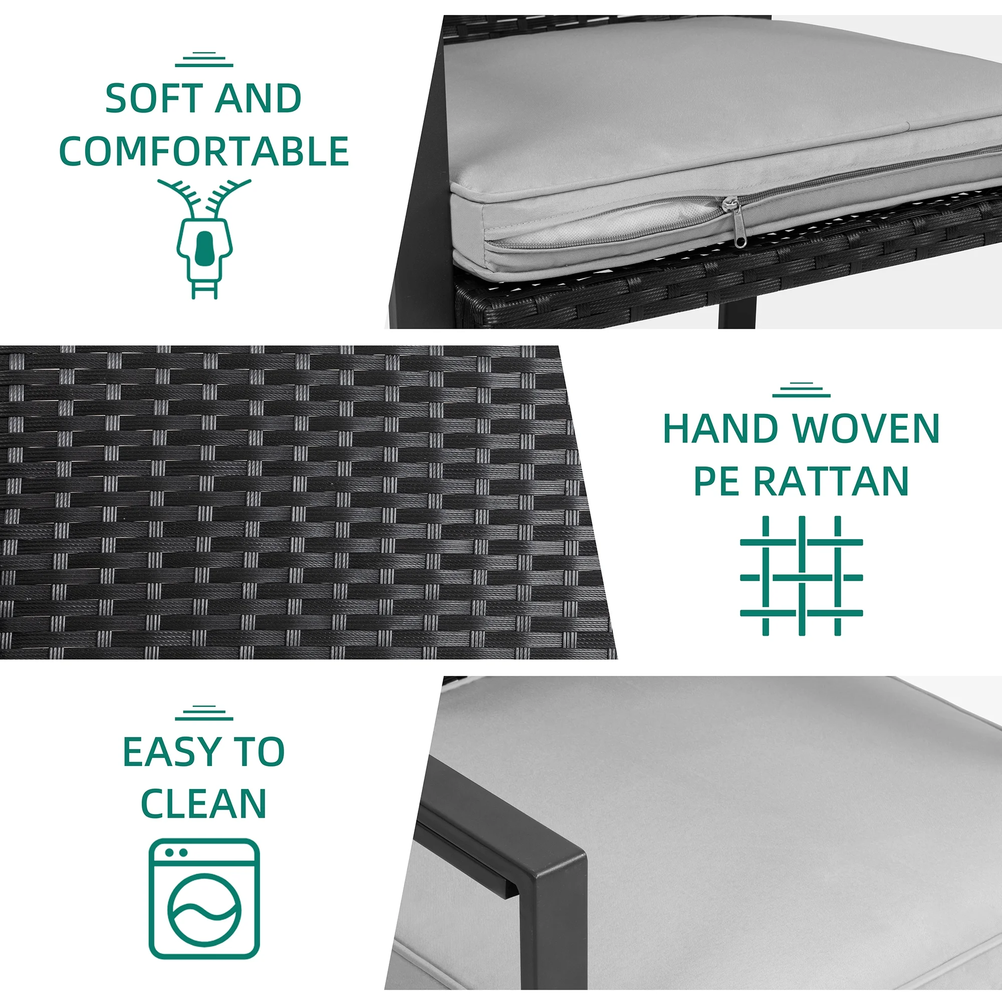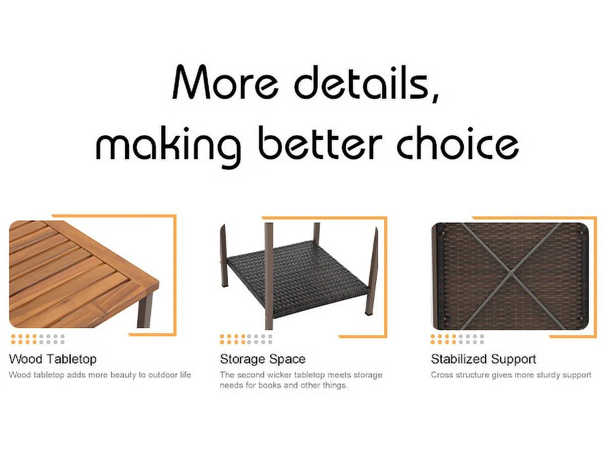3 Piece Patio Set, Outdoor Furniture Wicker Bistro Set Rattan Chair Conversation Sets with Coffee Table and Cushions