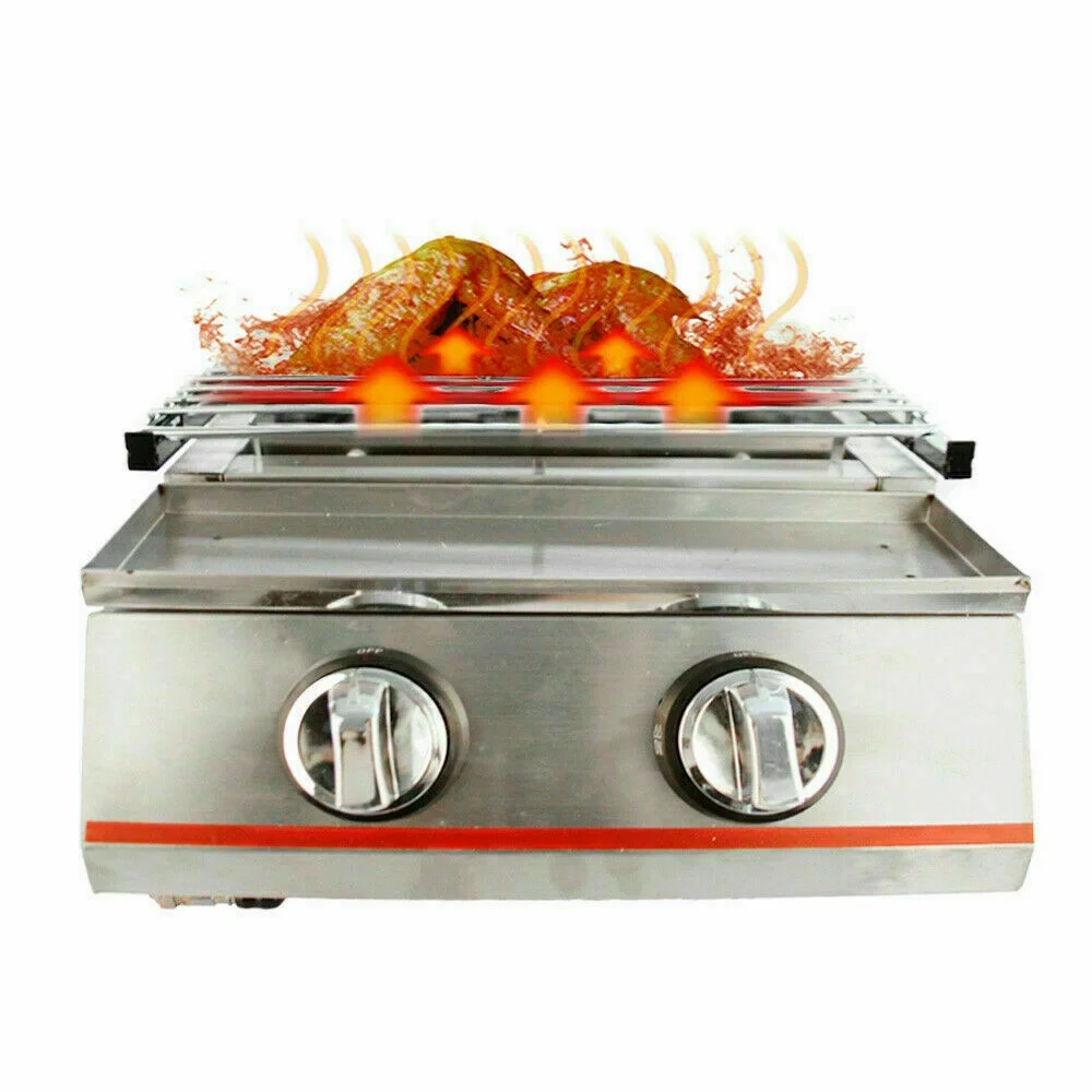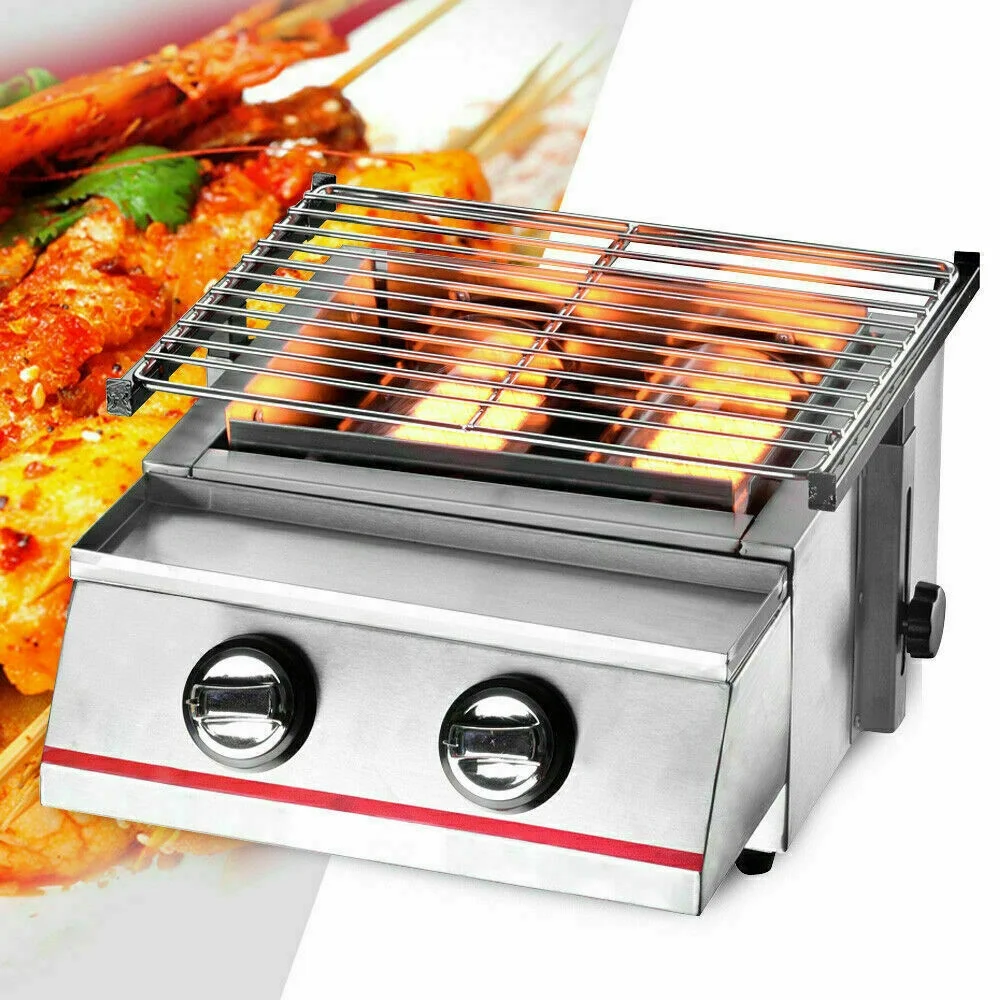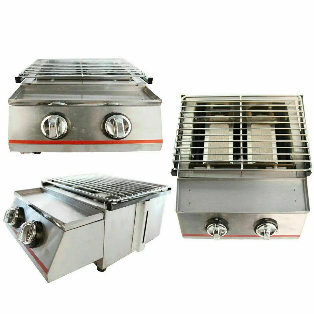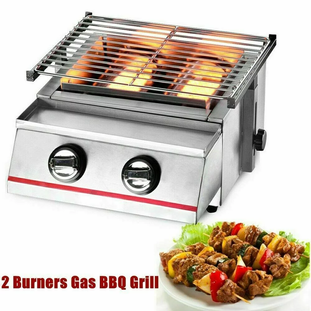 2 Burners Portable BBQ Table Top Camping Gas Smokeless Grill Stainless Steel