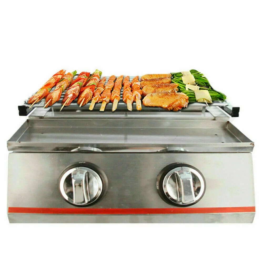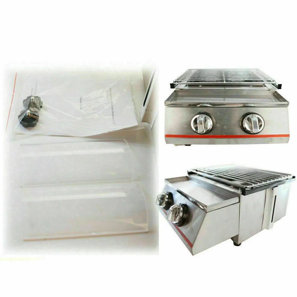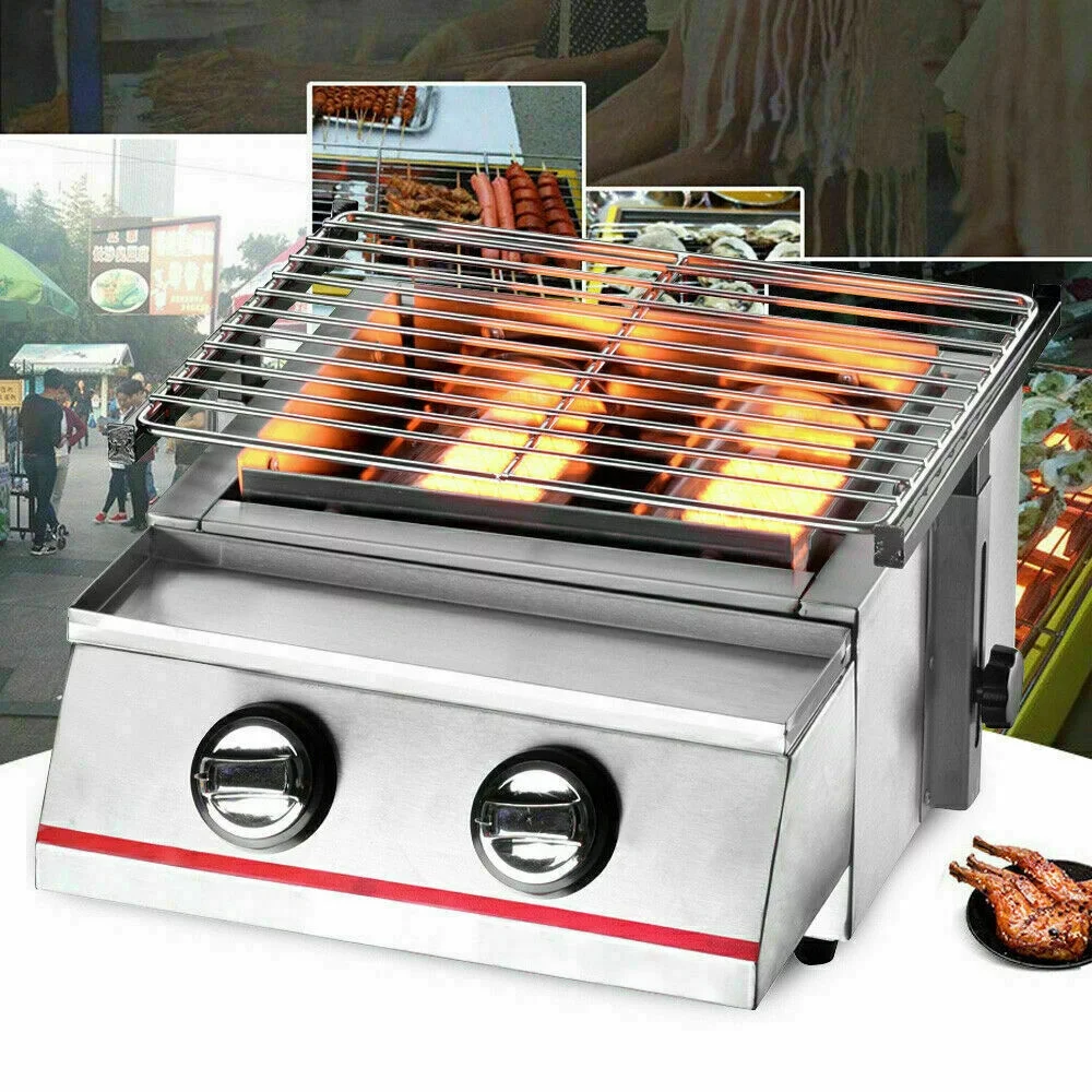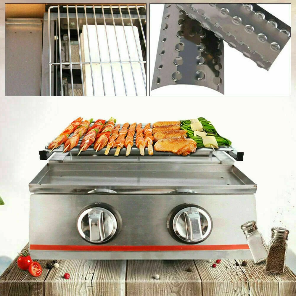 2 Burners Portable BBQ Table Top Camping Gas Smokeless Grill Stainless Steel