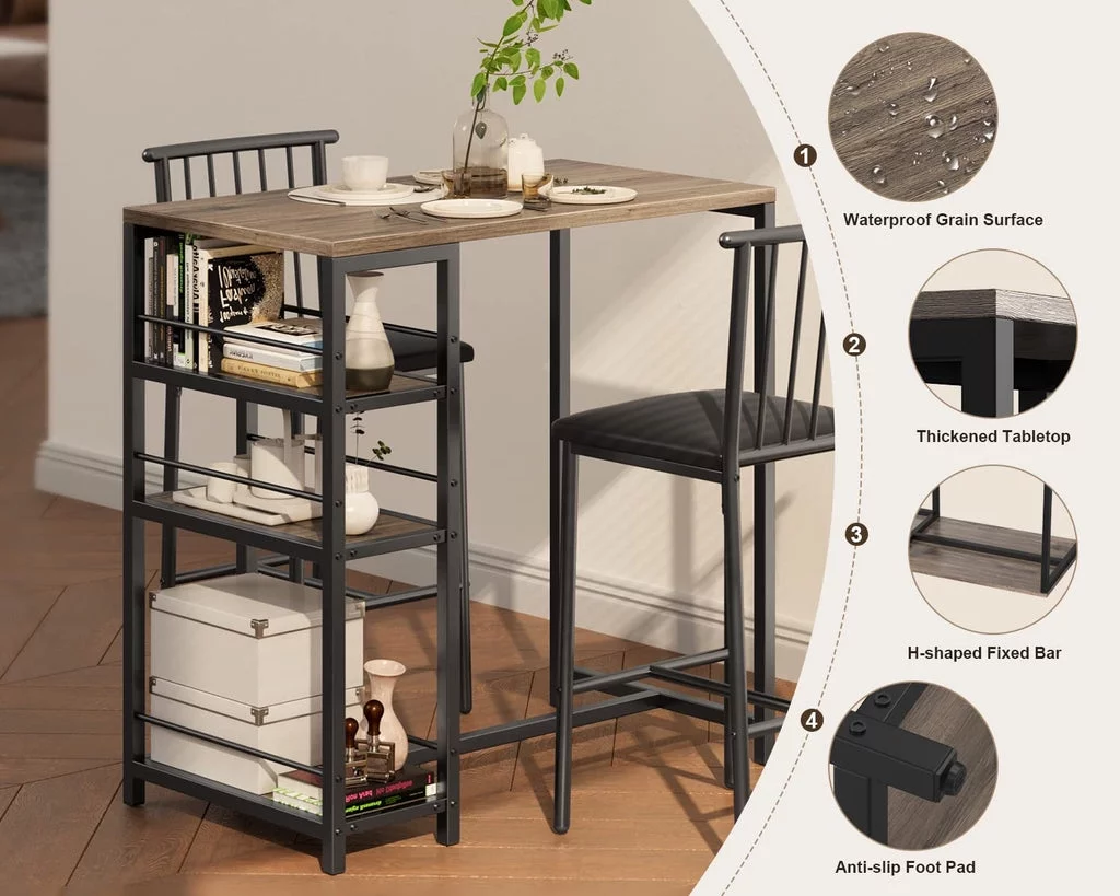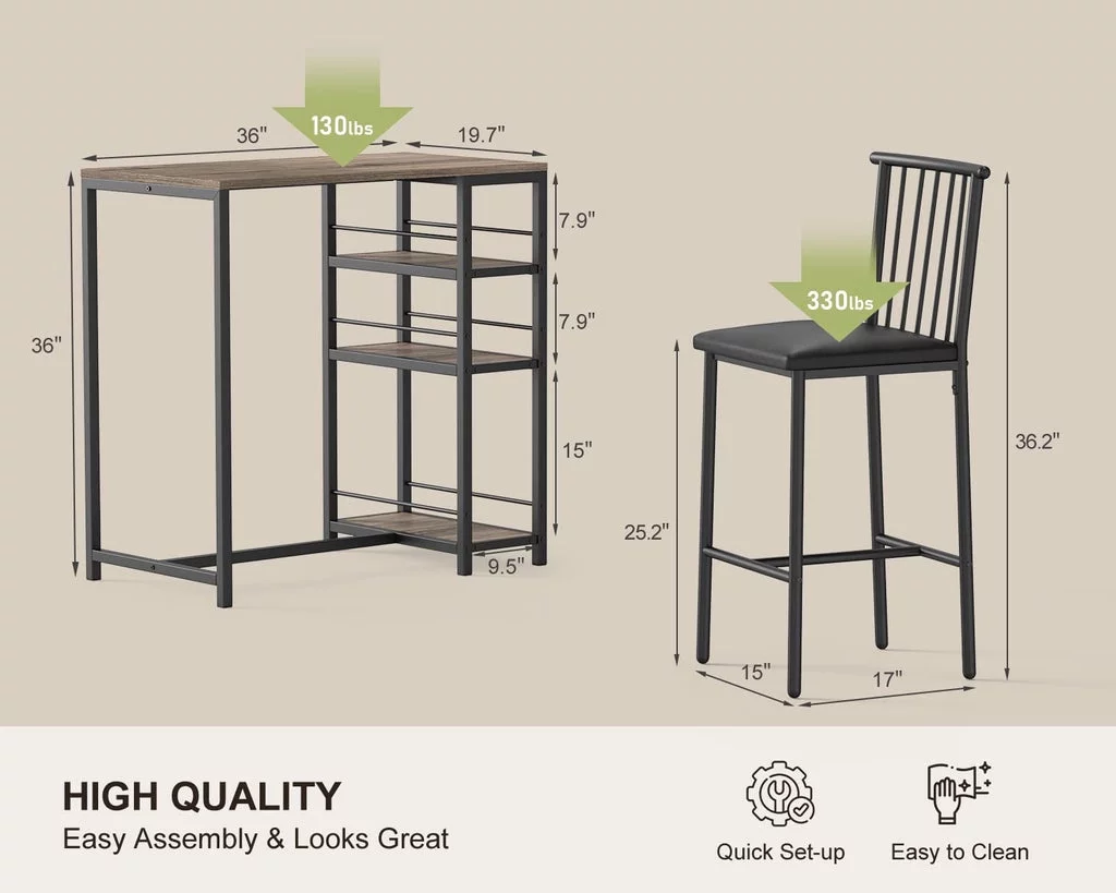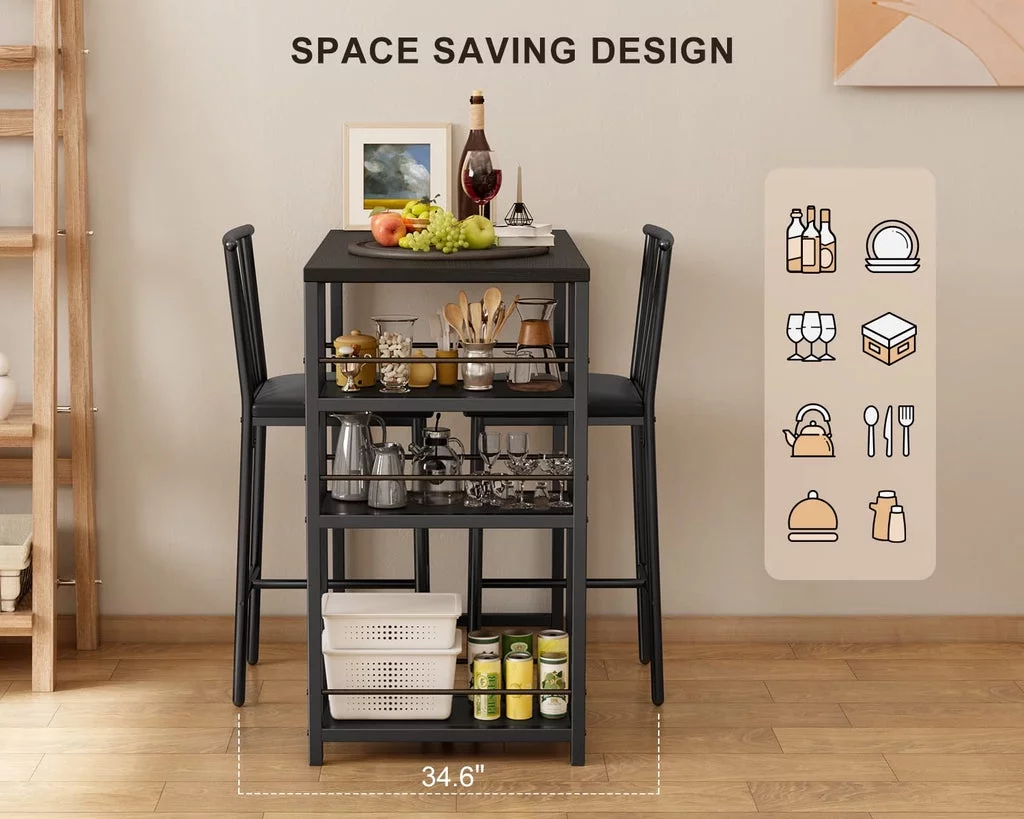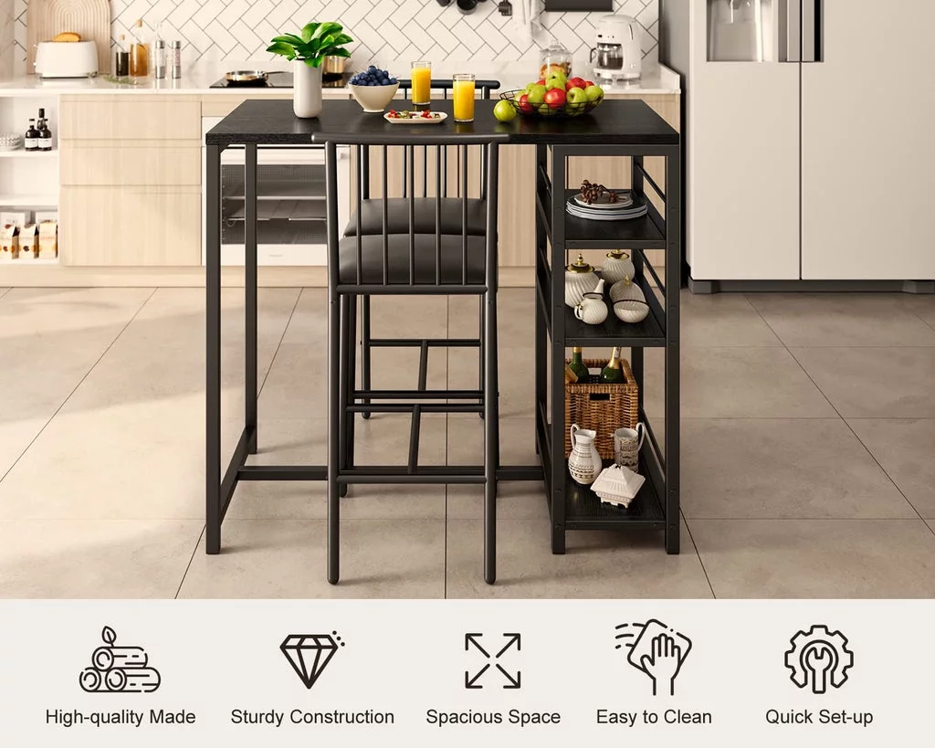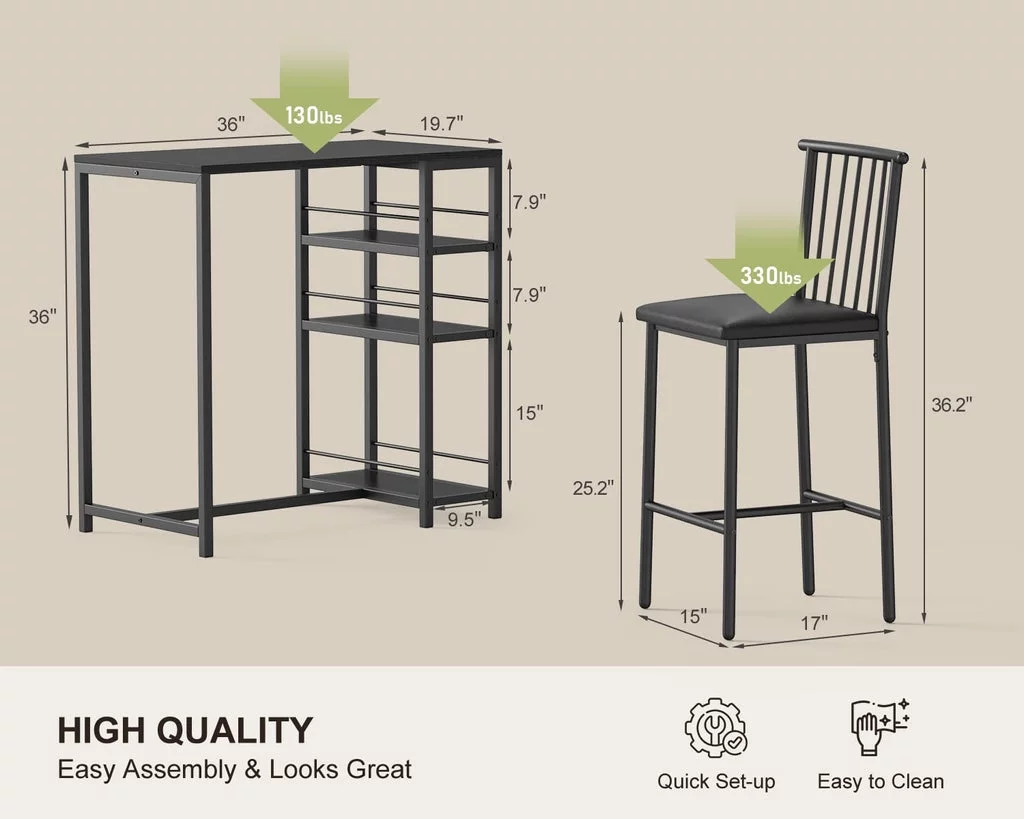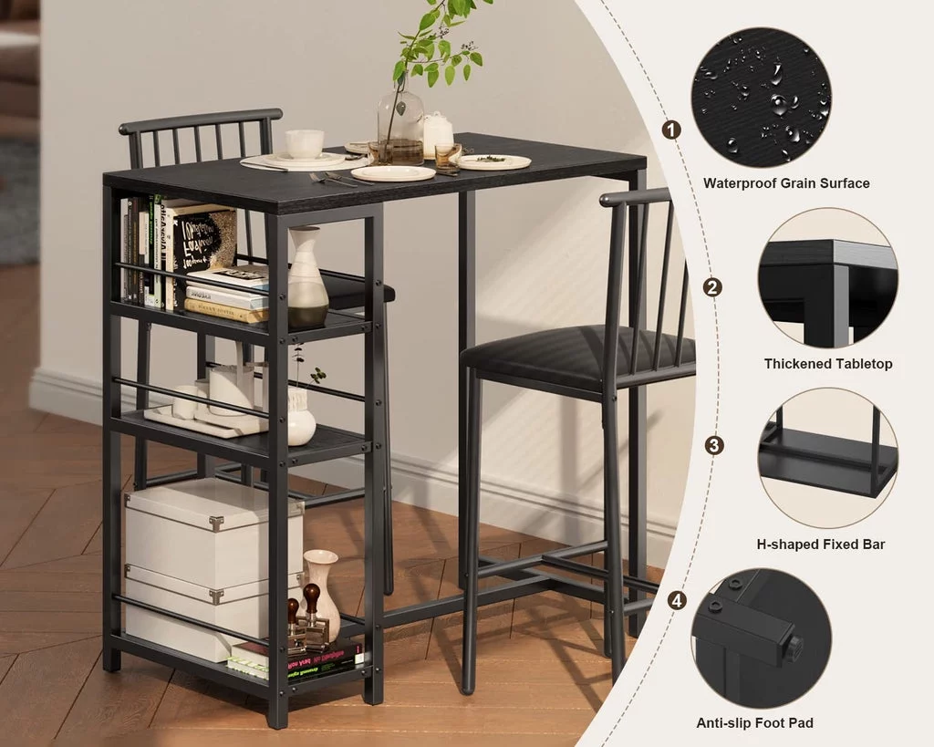 3-Piece Wooden Counter Height Dining Table Set, Aiho Small Kitchen Table for Kitchen, Dining Room - Black