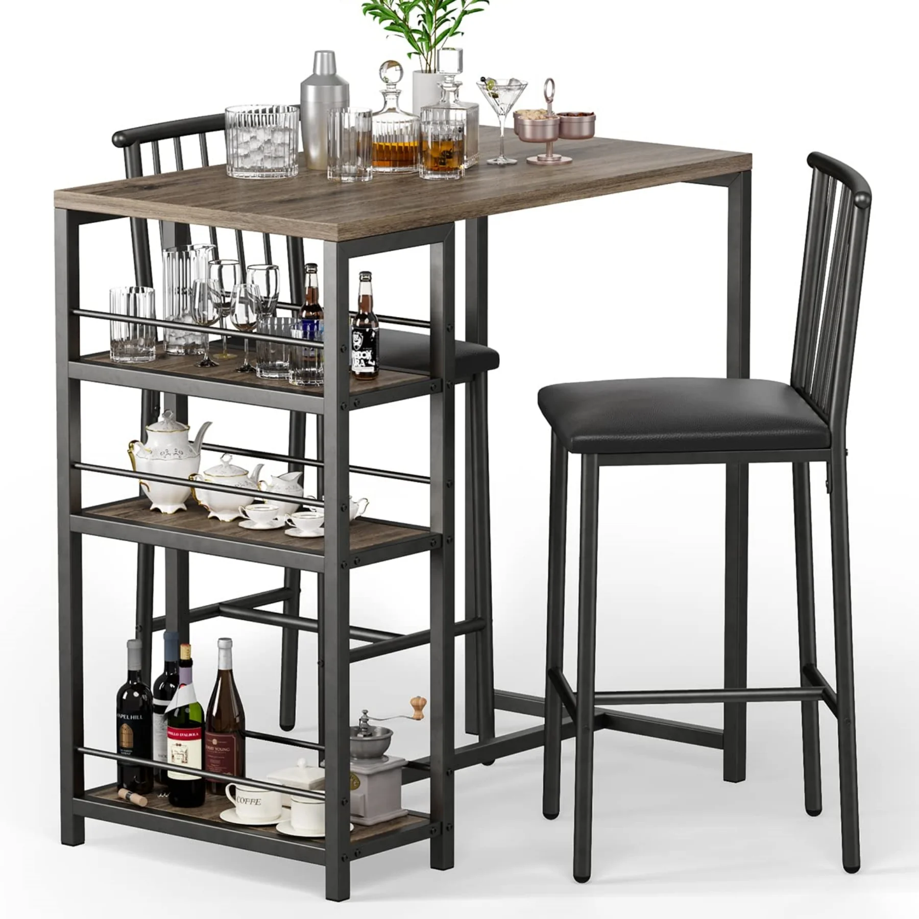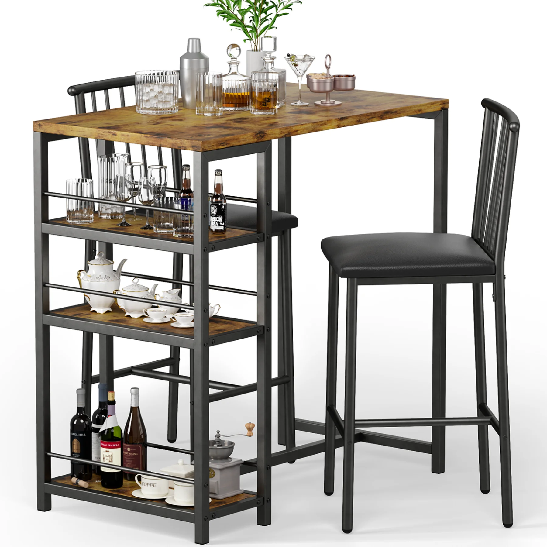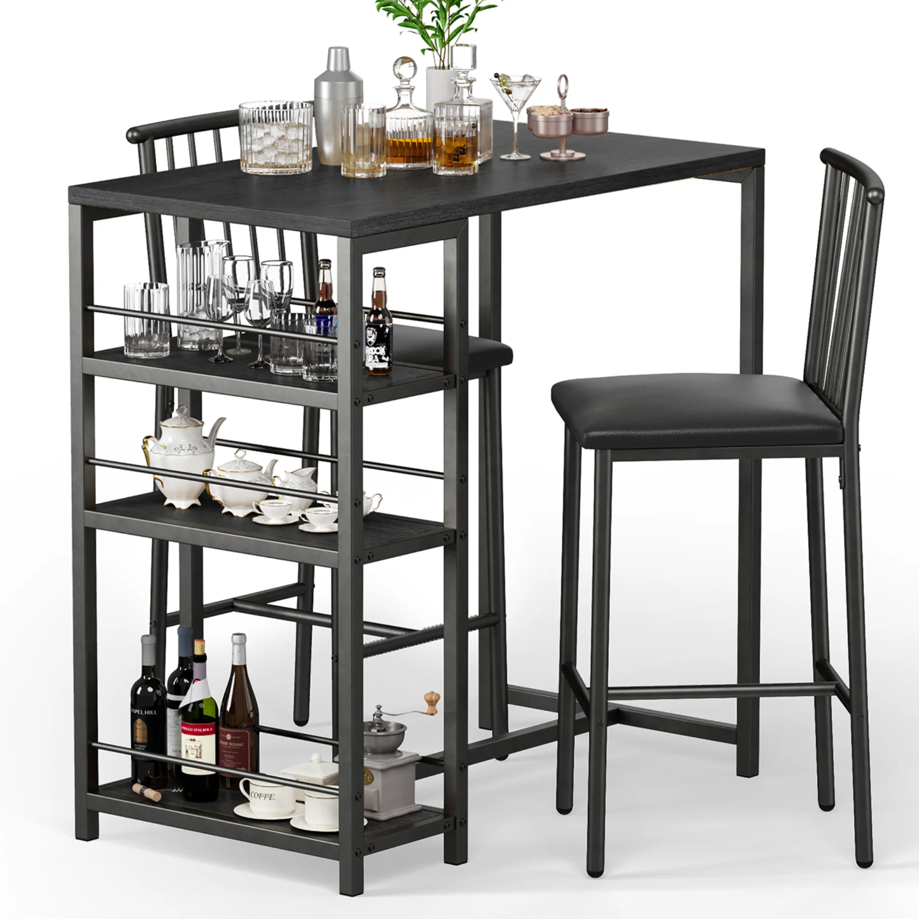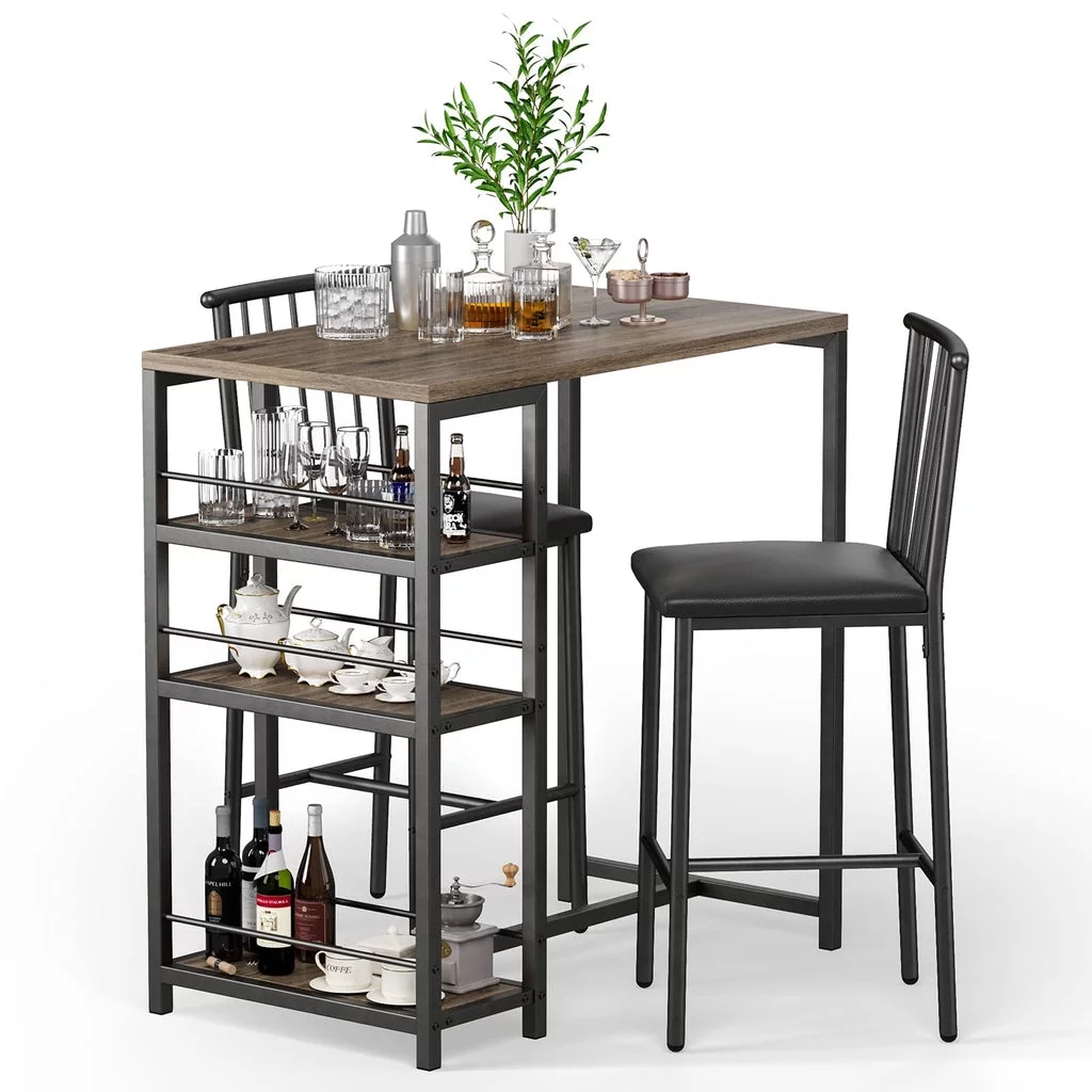 3-Piece Wooden Counter Height Dining Table Set, Aiho Small Kitchen Table for Kitchen, Dining Room - Black