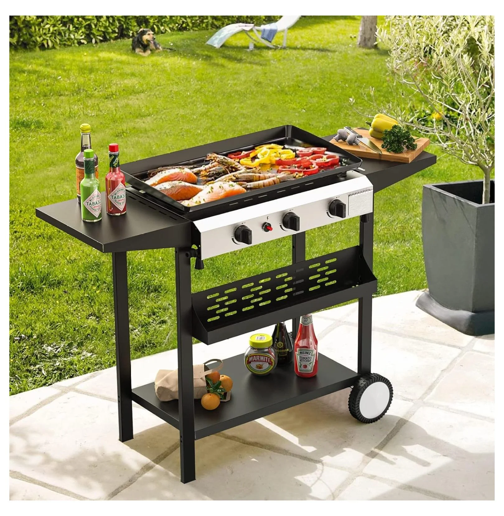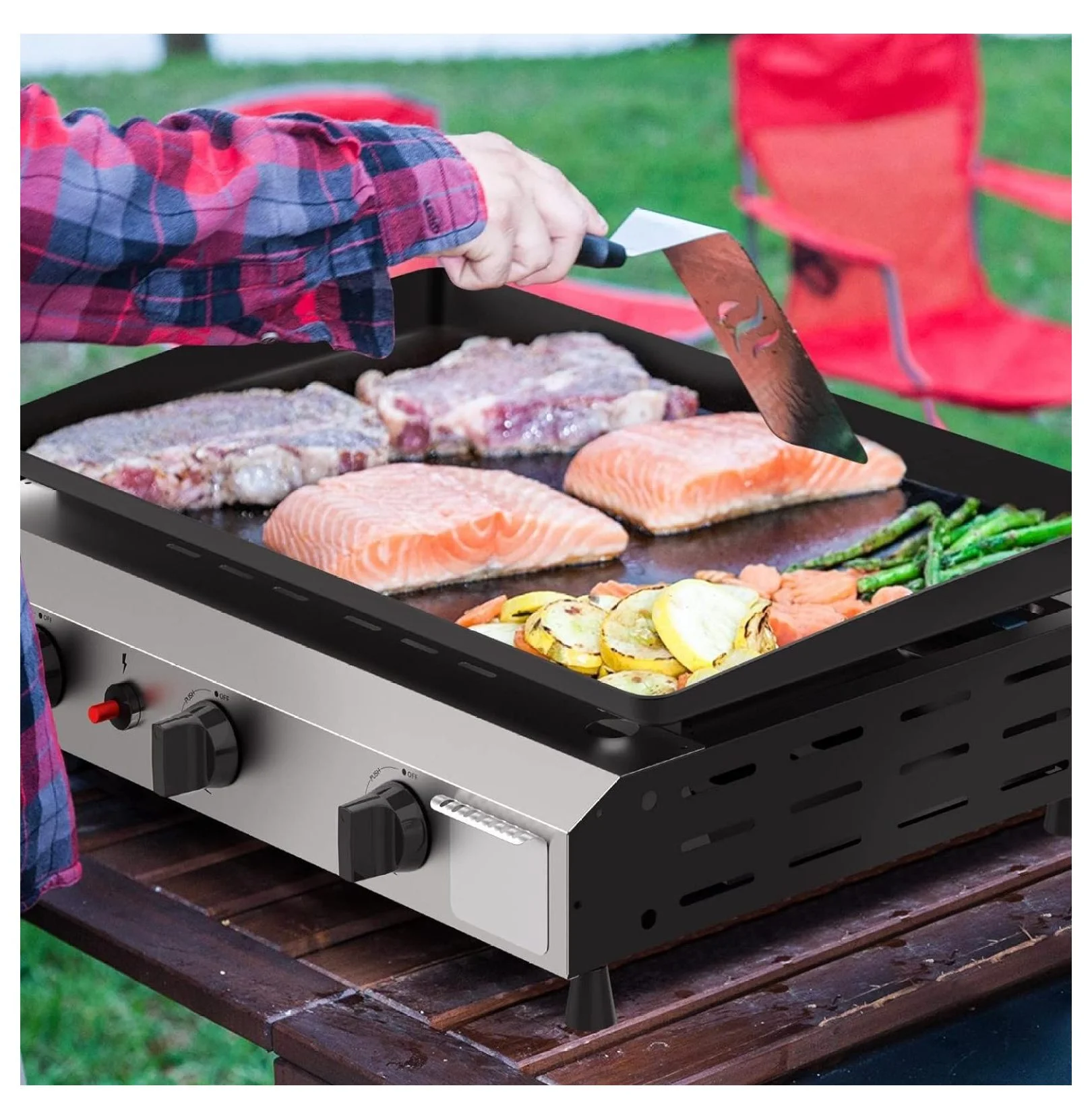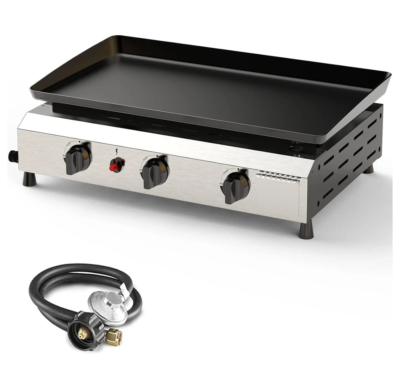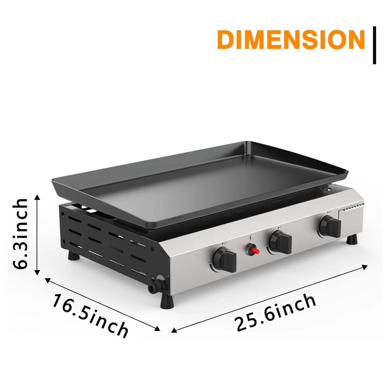 25.6 Inch 3 Burner BBQ Gas Grill Griddle, Stainless Steel Portable Detachable 30,000 BTU Table Top Propane Barbecue Grill for Camping or Tailgating ( Griddle)