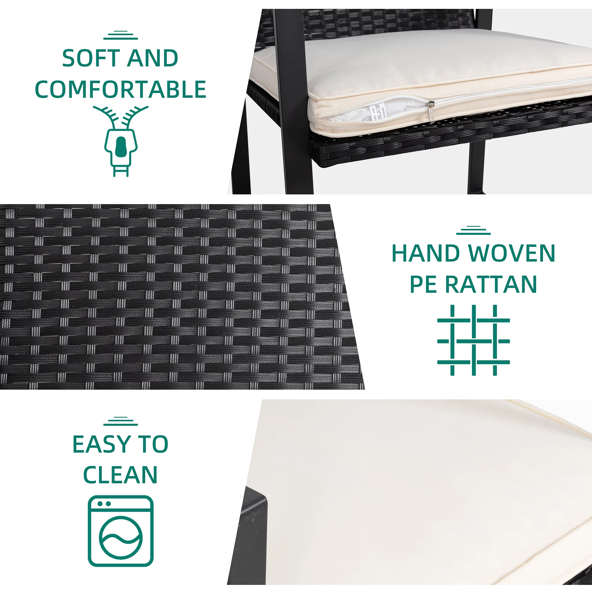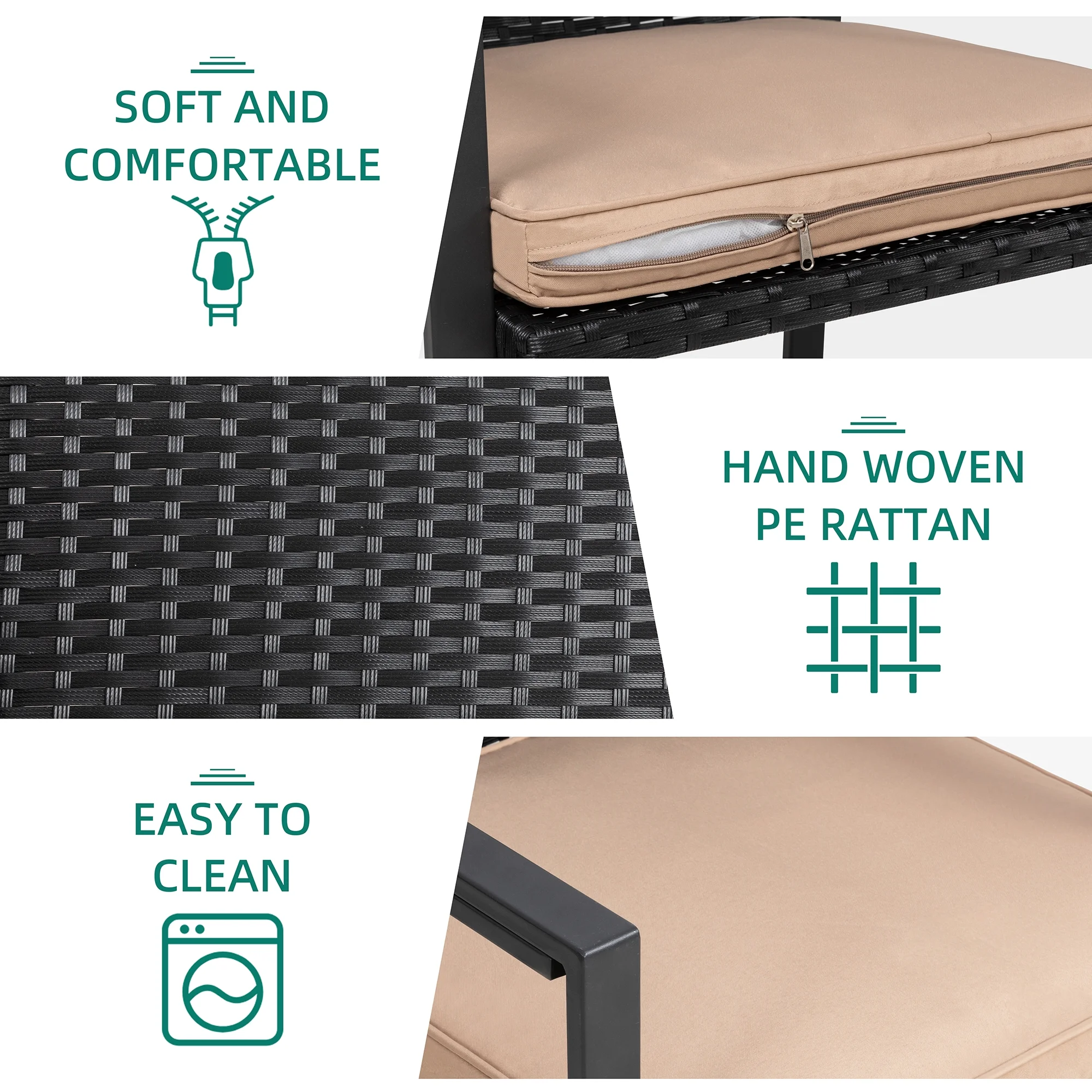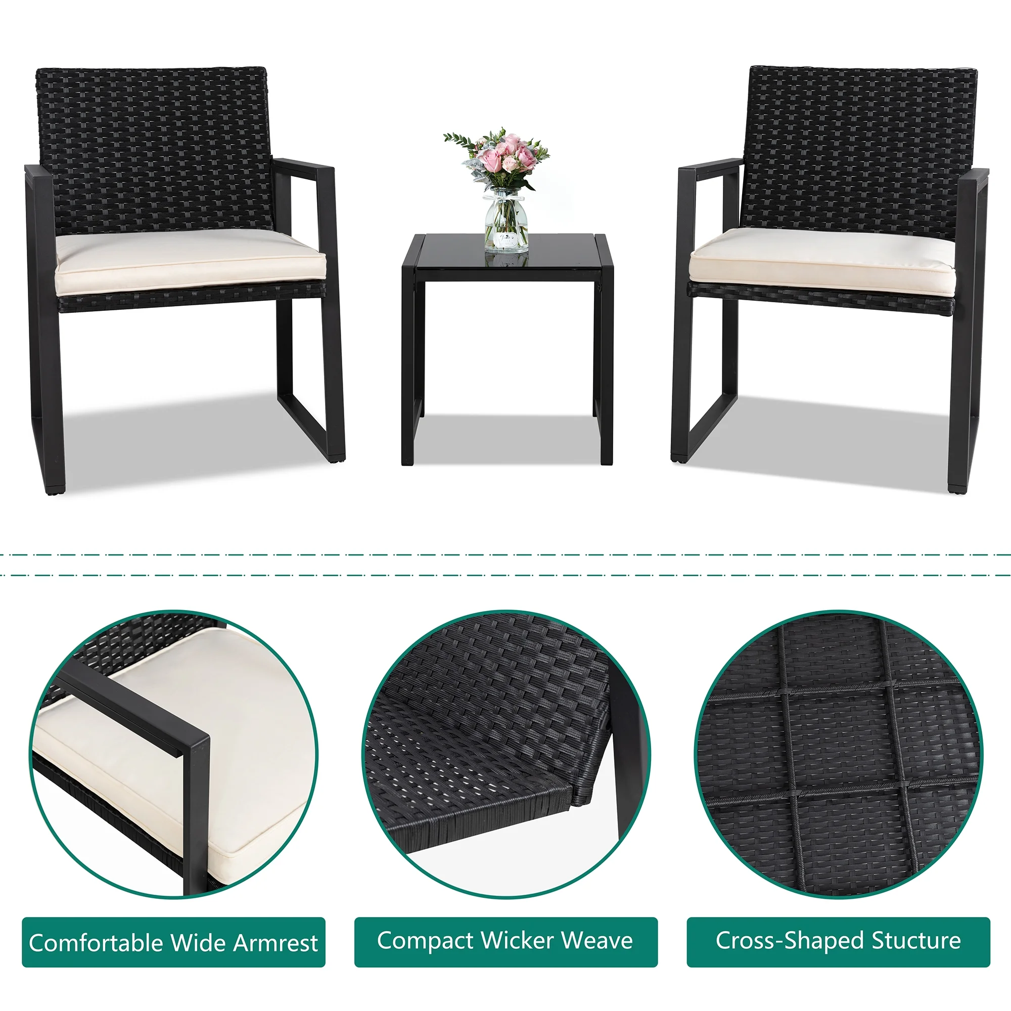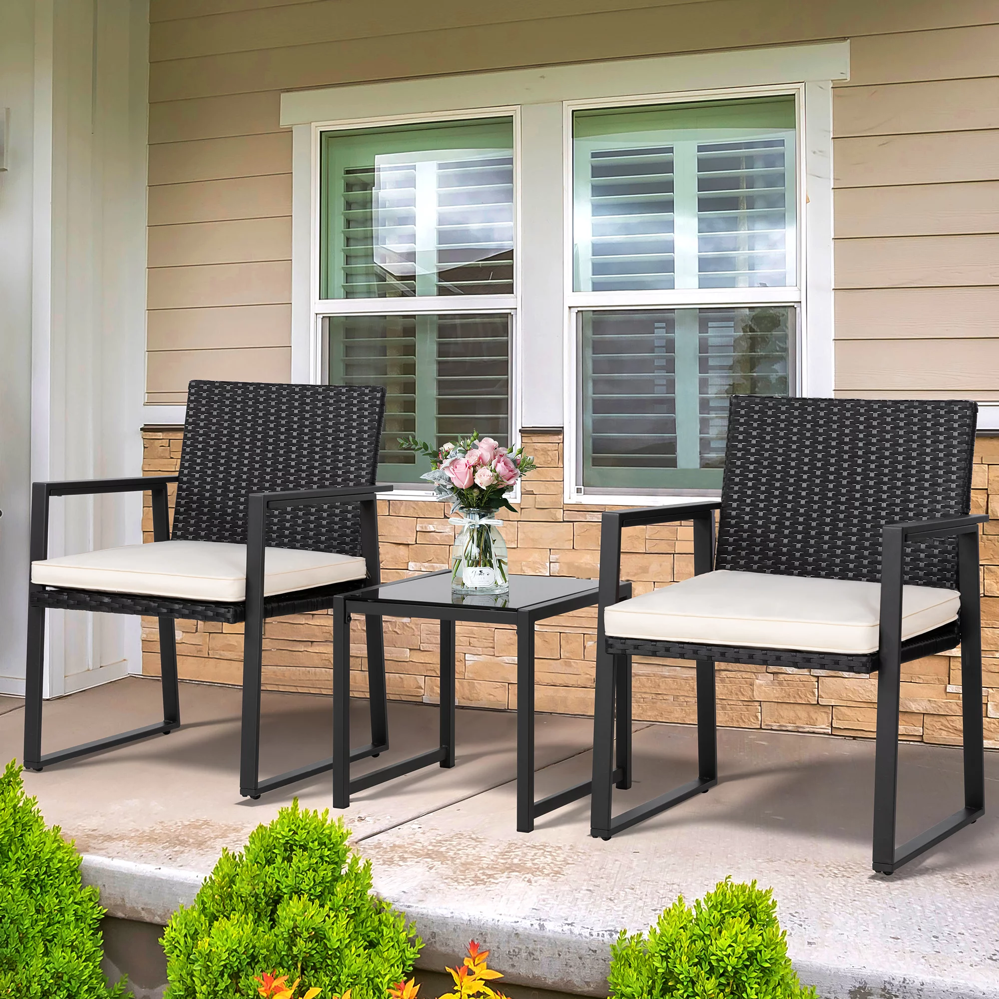 3 Piece Patio Bistro Sets, Outdoor Rattan Chairs & Black Wicker Furniture Conversation Set Biege