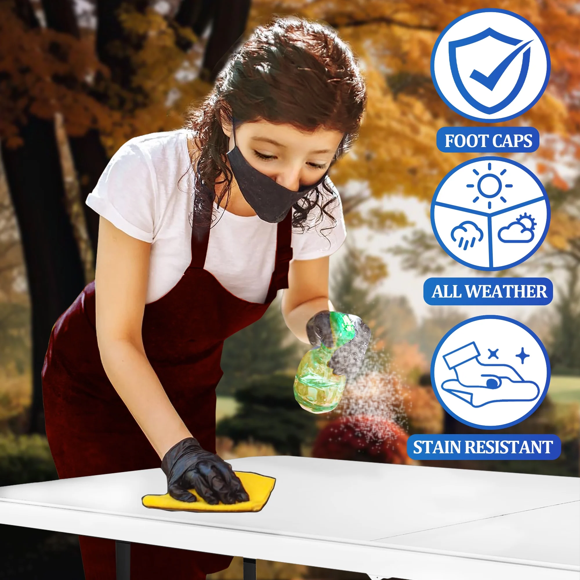 4FT Folding Table - Portable Foldable Table with Lock Function, Ideal for Indoor/Outdoor Use - Compact Design for Dining, Camping, and Parties - Heavy Duty, White