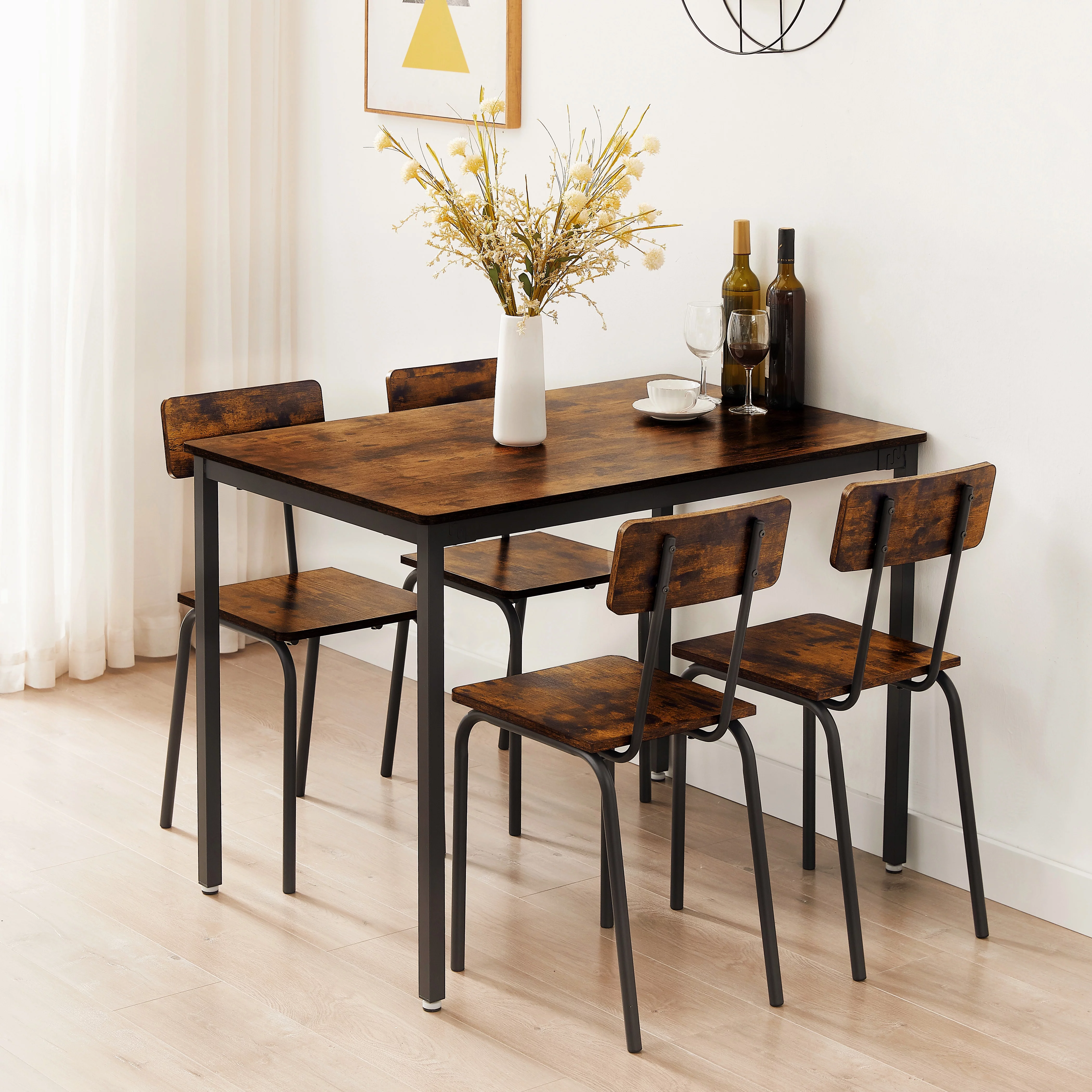 5-Piece Dining Room Table Set, Compact Wooden Kitchen Table and 4 Chairs with Metal Legs Dinette Sets, Industrial Style Kitchen Table and Chairs for Dining Room & Small Space