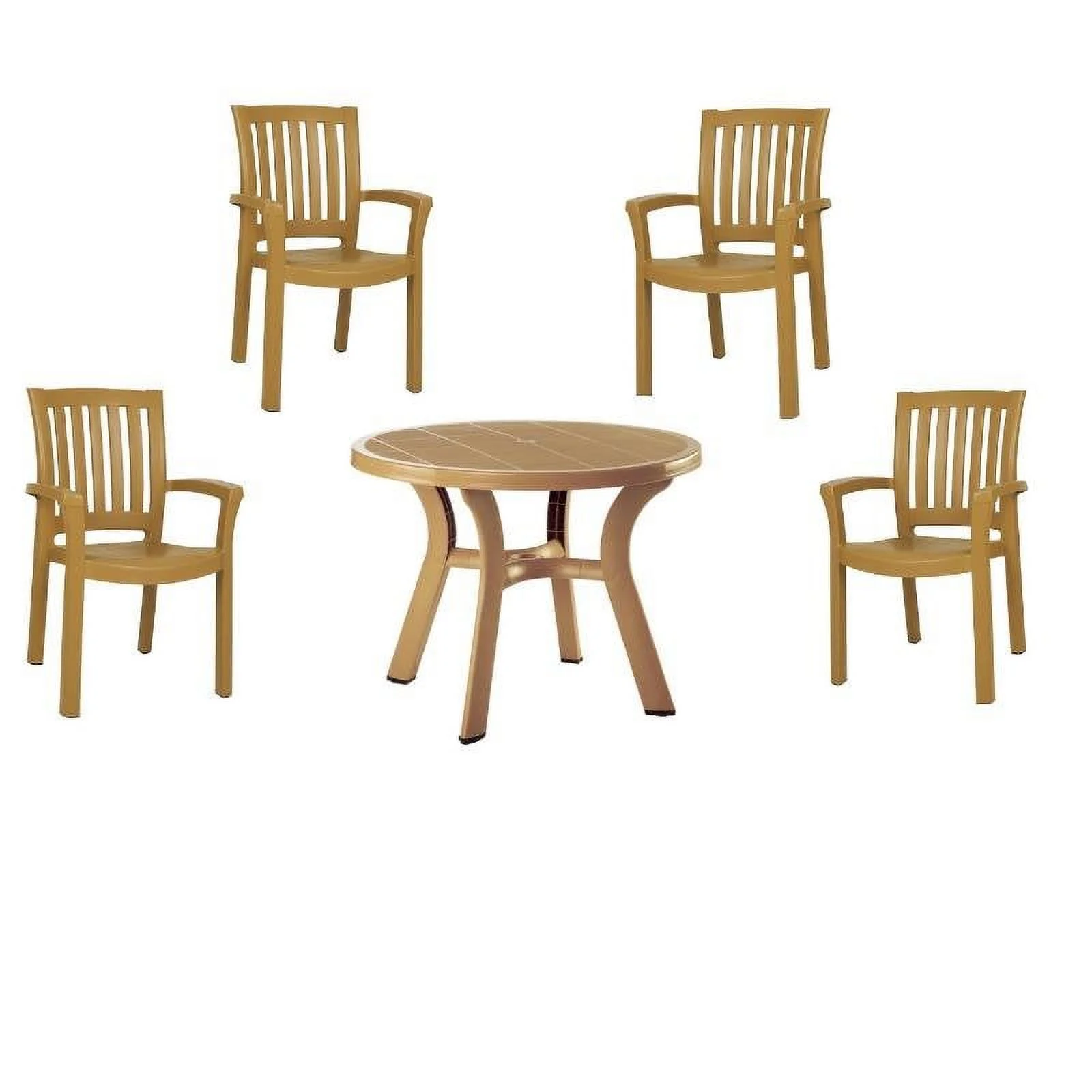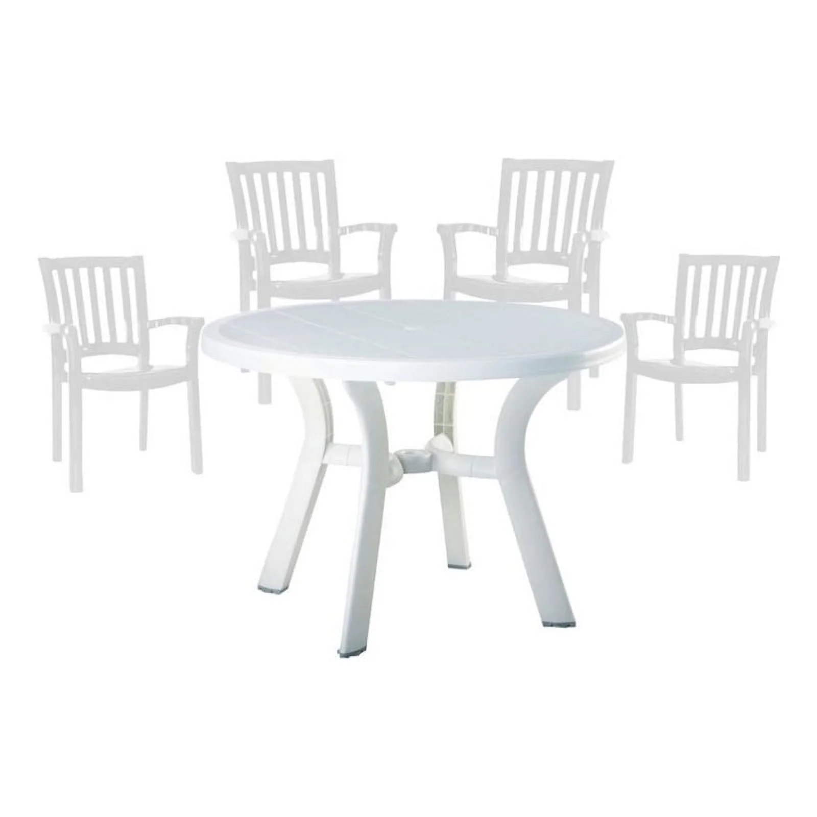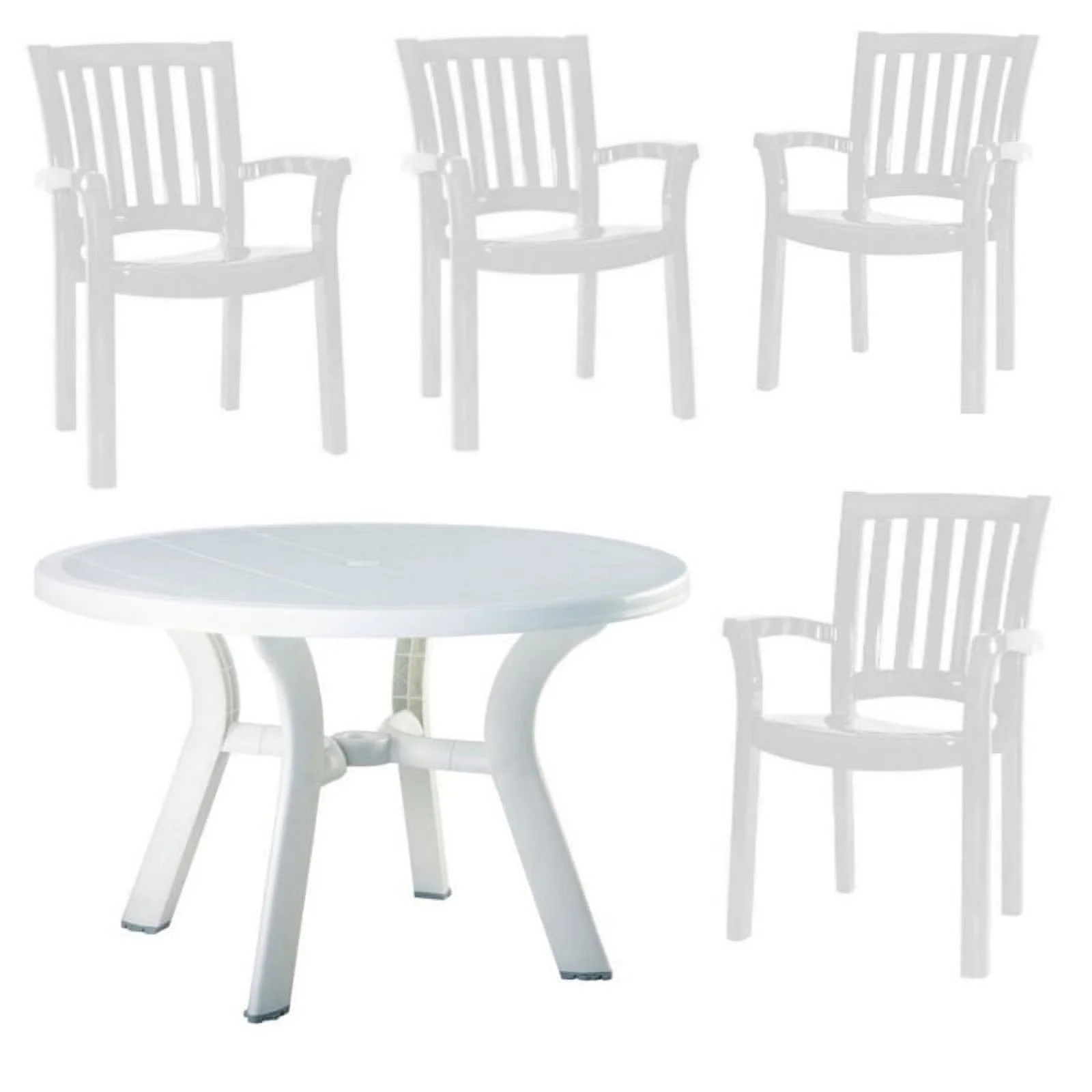 5 Piece Set 42" Round Resin Patio Table and 4 Resin Chairs in White