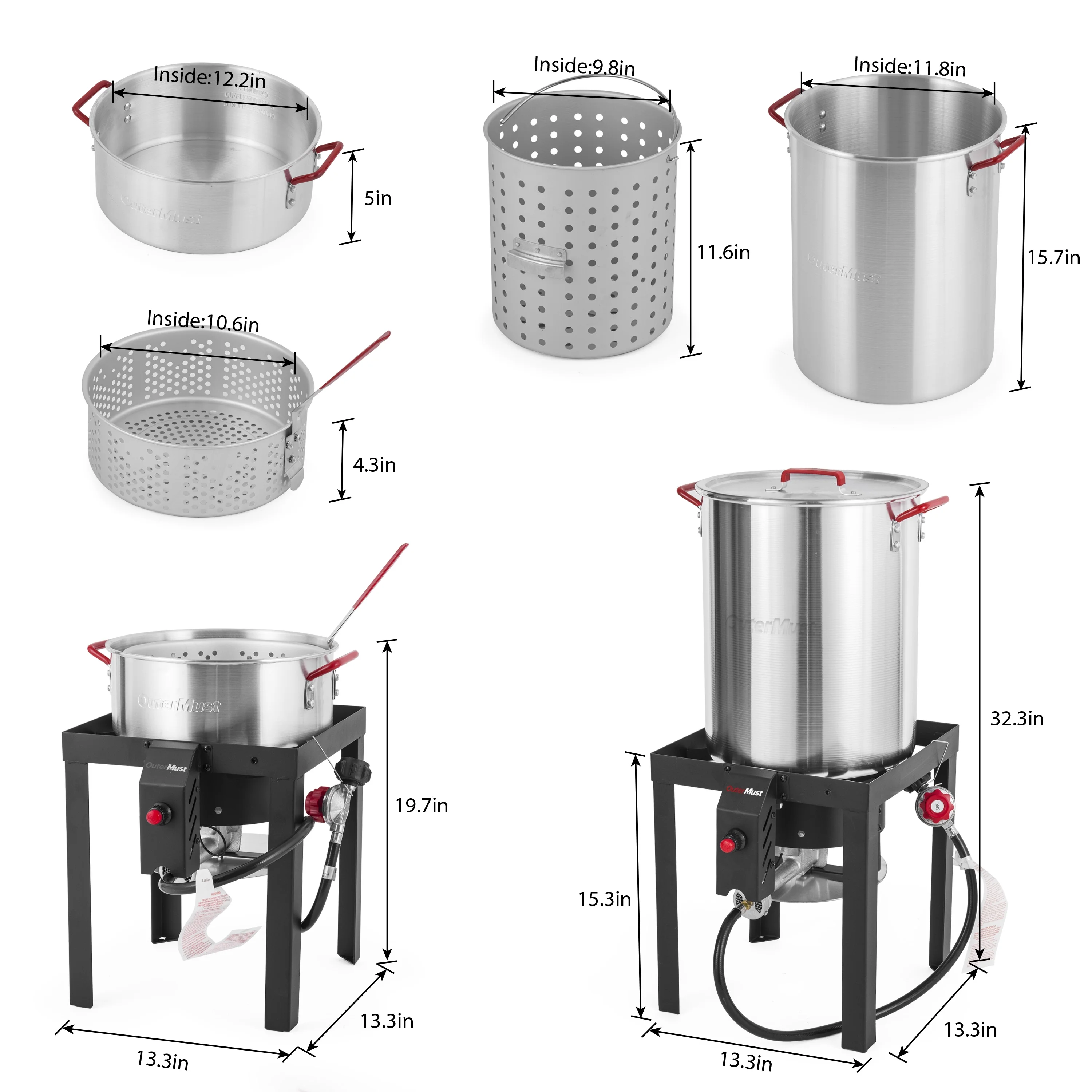 30 QT. Seafood Boil Pot and Burner Kit 50,000 BTU Turkey Deep Fryer with Basket and Burner Set Crafish Boiler, Ideal for Cooking Turkey, Crawfish, Crab