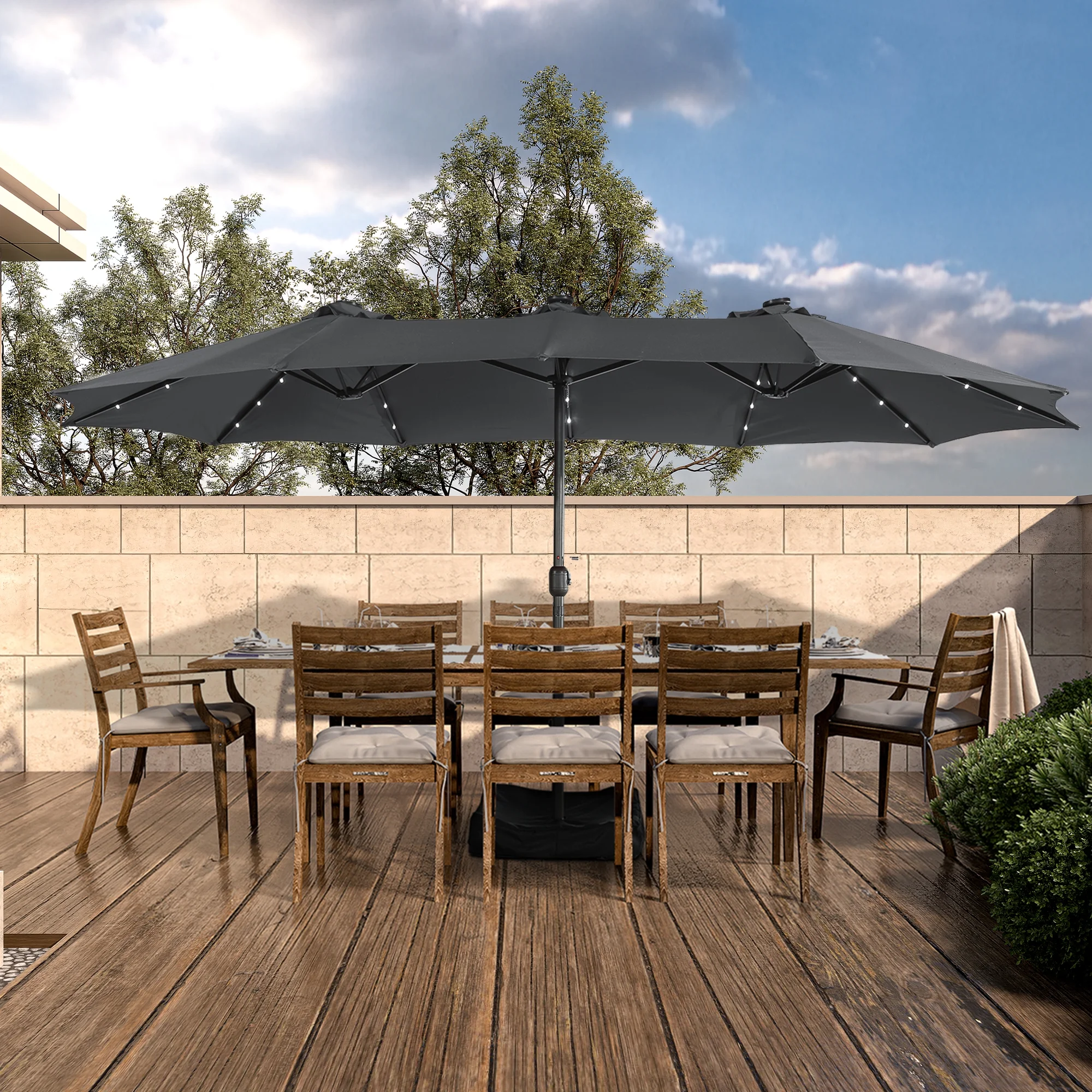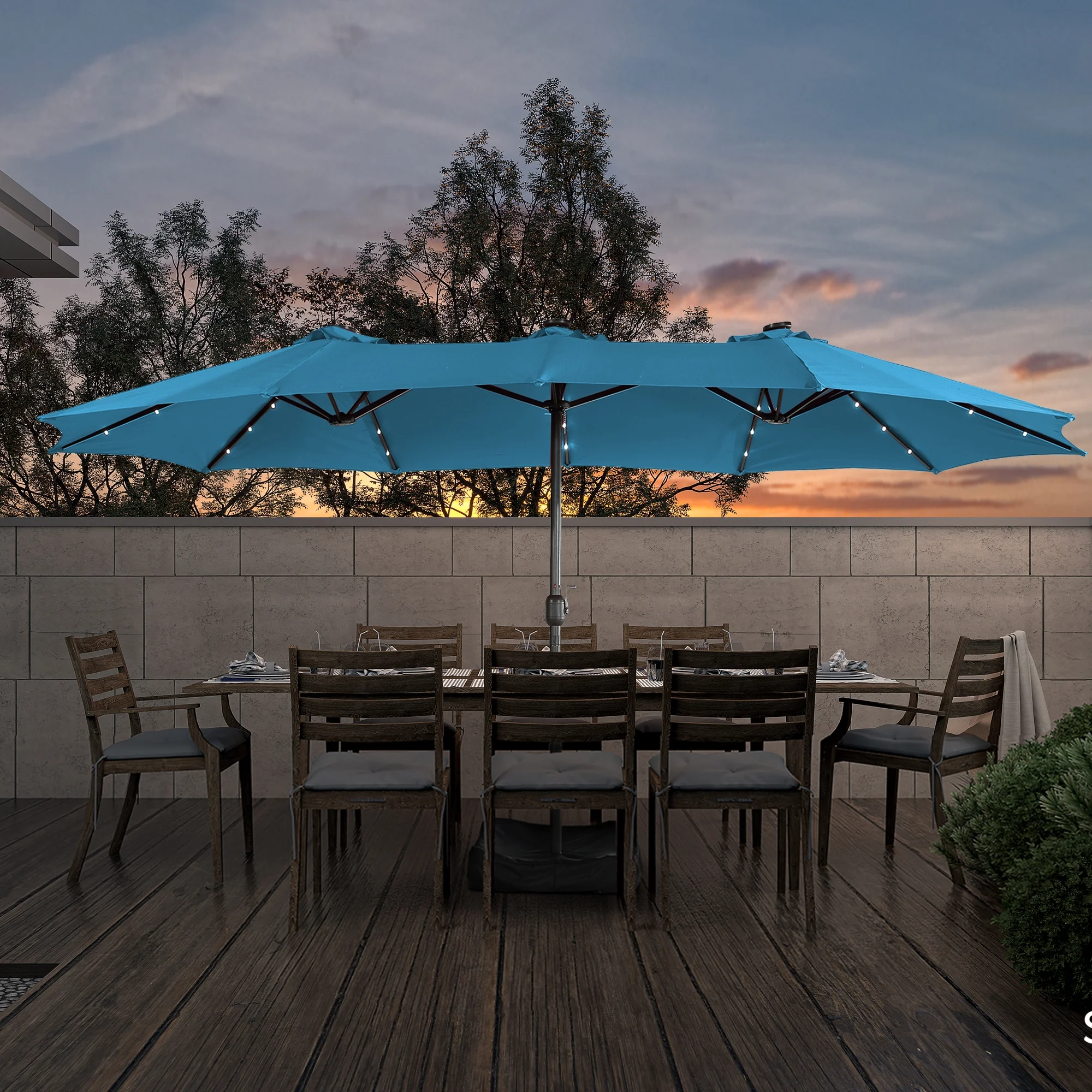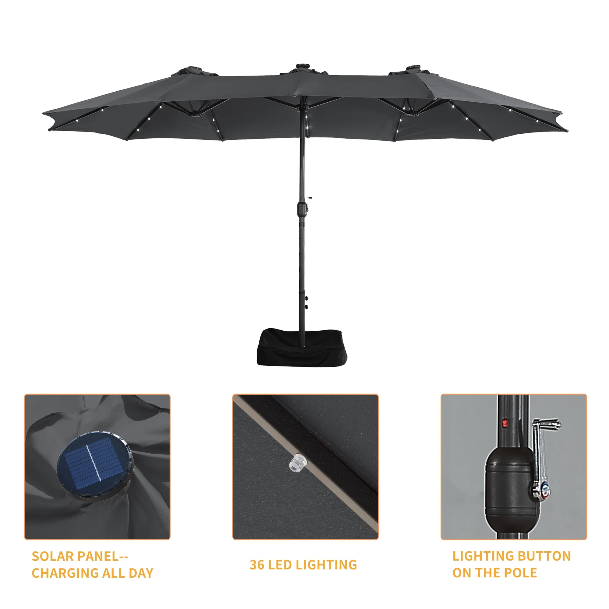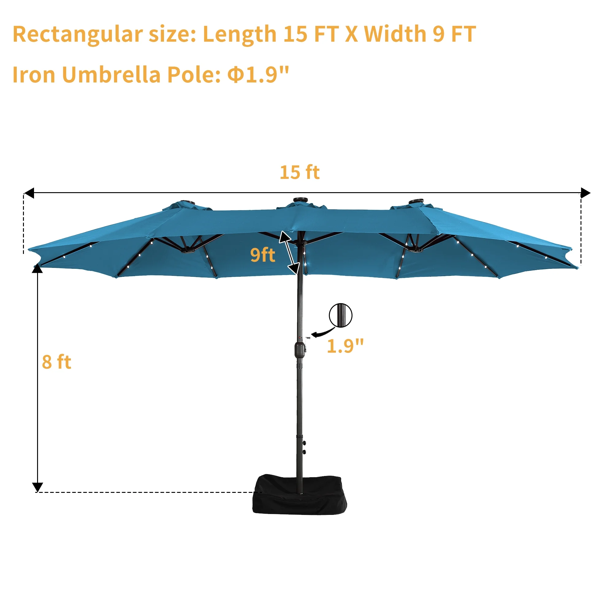15ft Large Patio Umbrella with Solar Lights, Double-Sided Outdoor Market Rectangle Beach Umbrellas with 36 LED Lights, Umbrella Base (Stand) Included