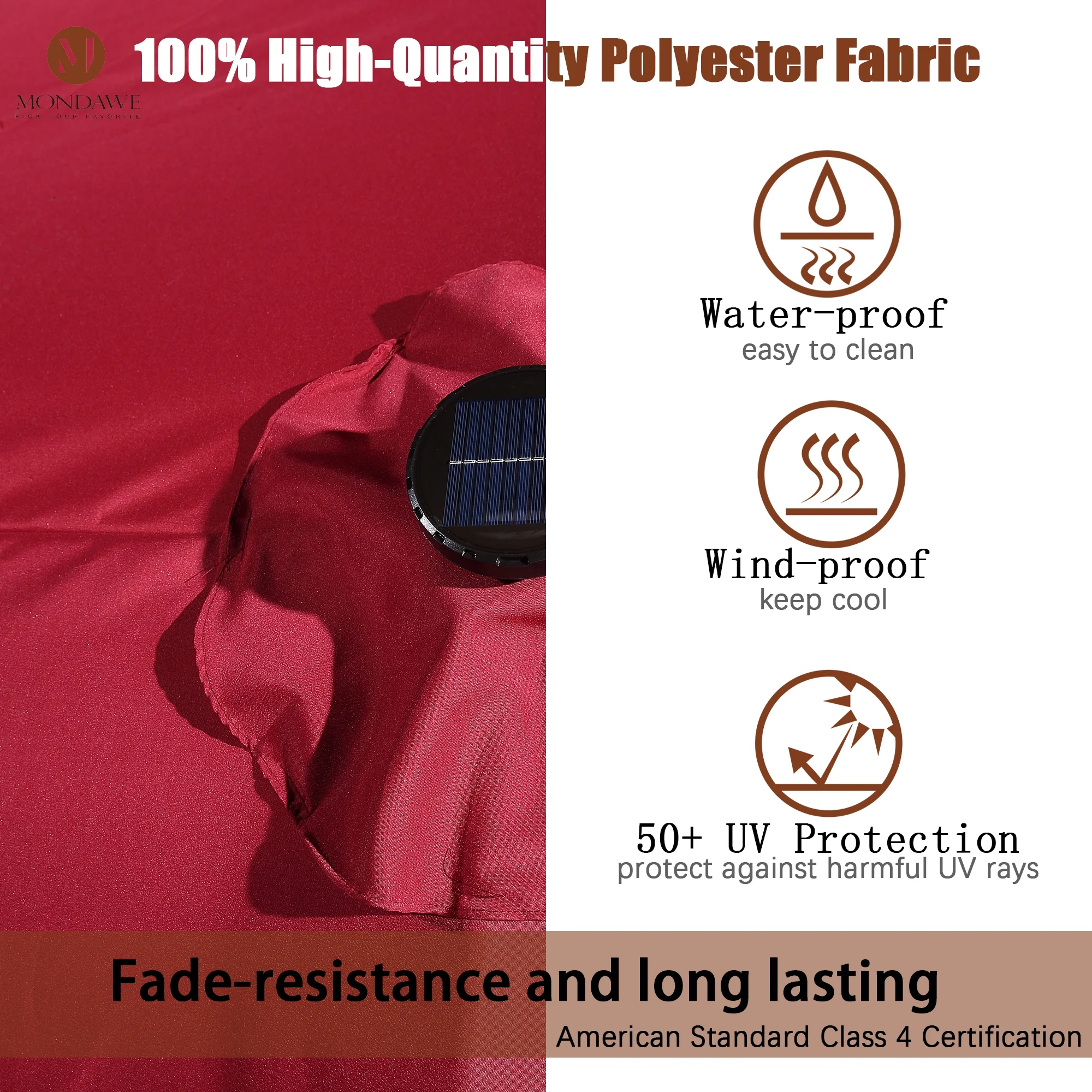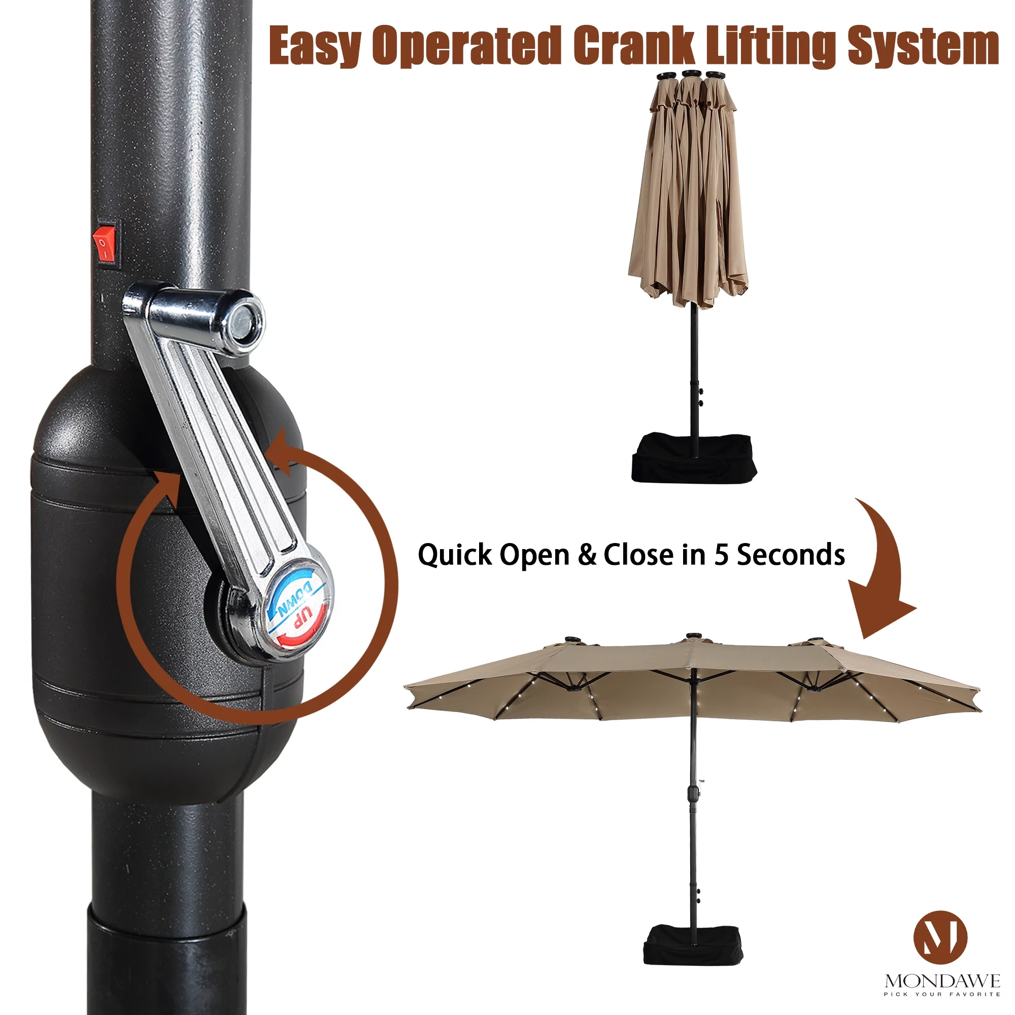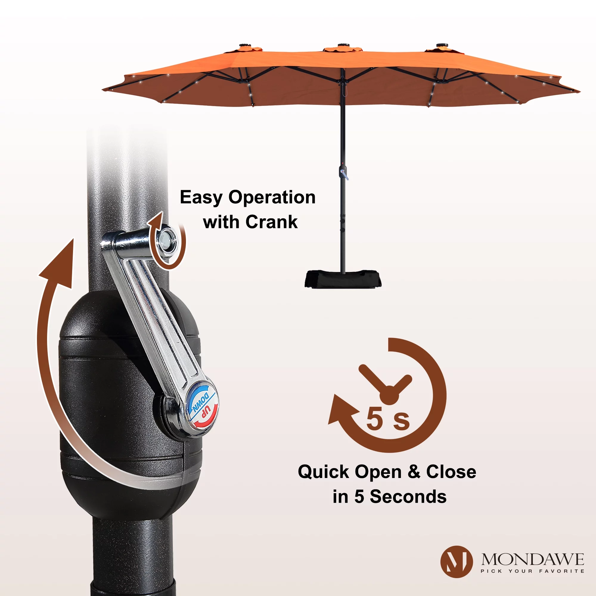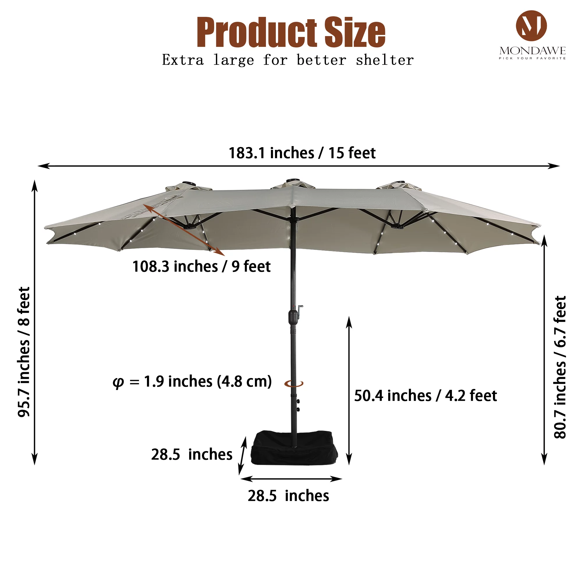 15ft Large Patio Umbrella with Solar Lights, Double-Sided Outdoor Market Rectangle Beach Umbrellas with 36 LED Lights, Umbrella Base (Stand) Included