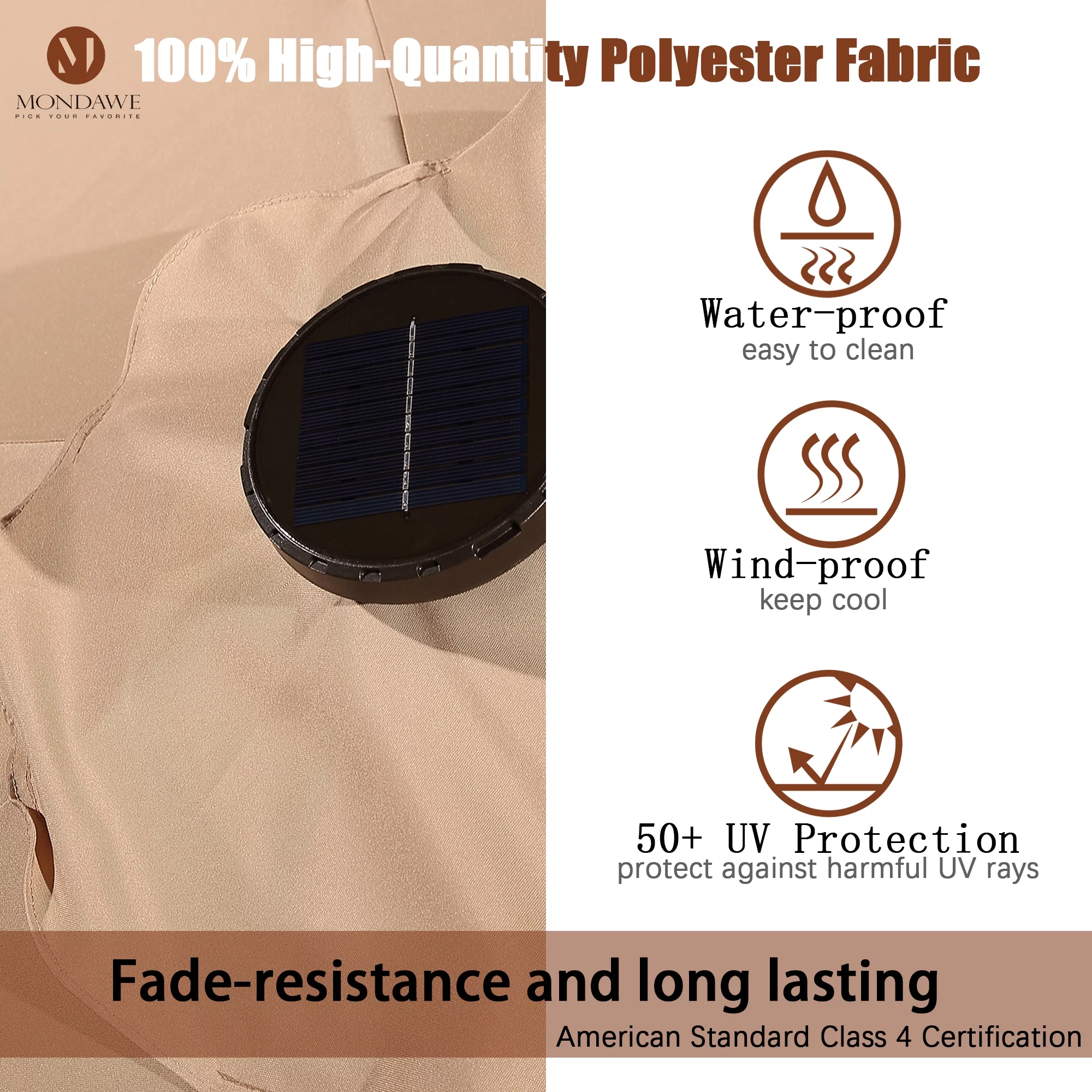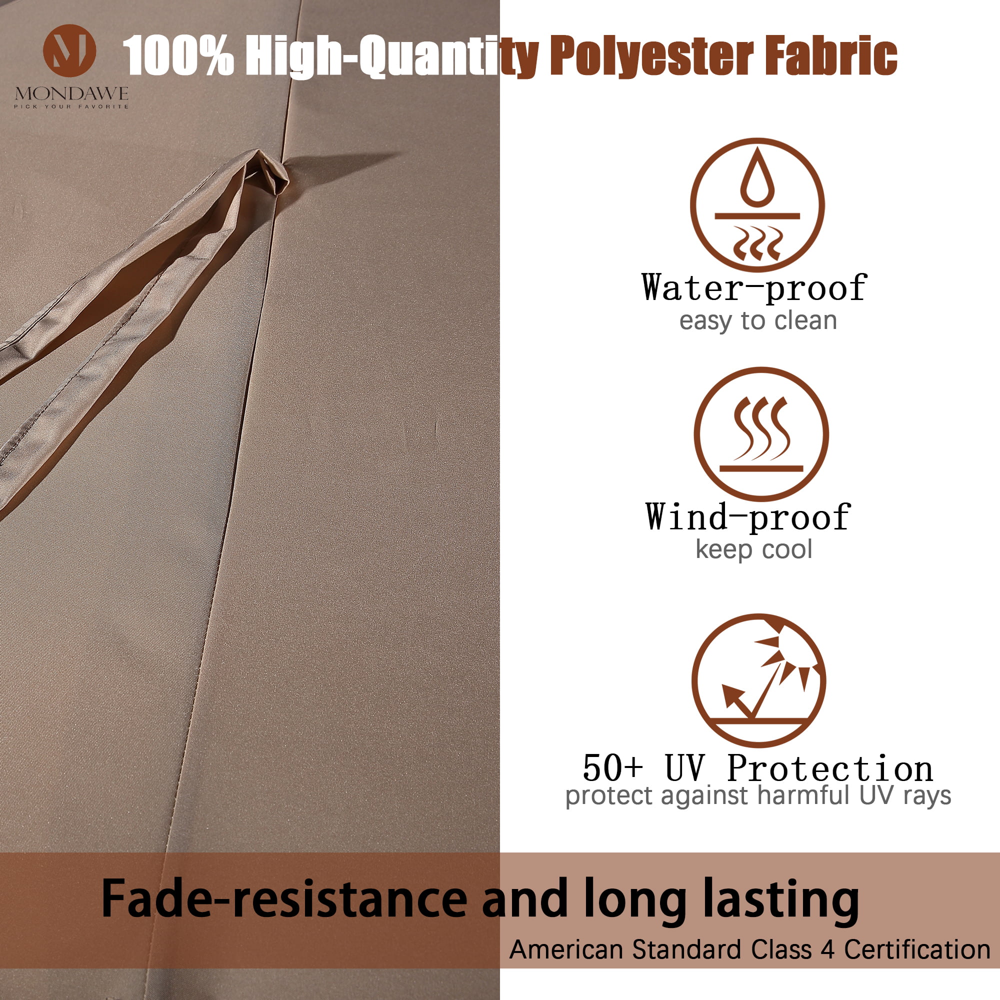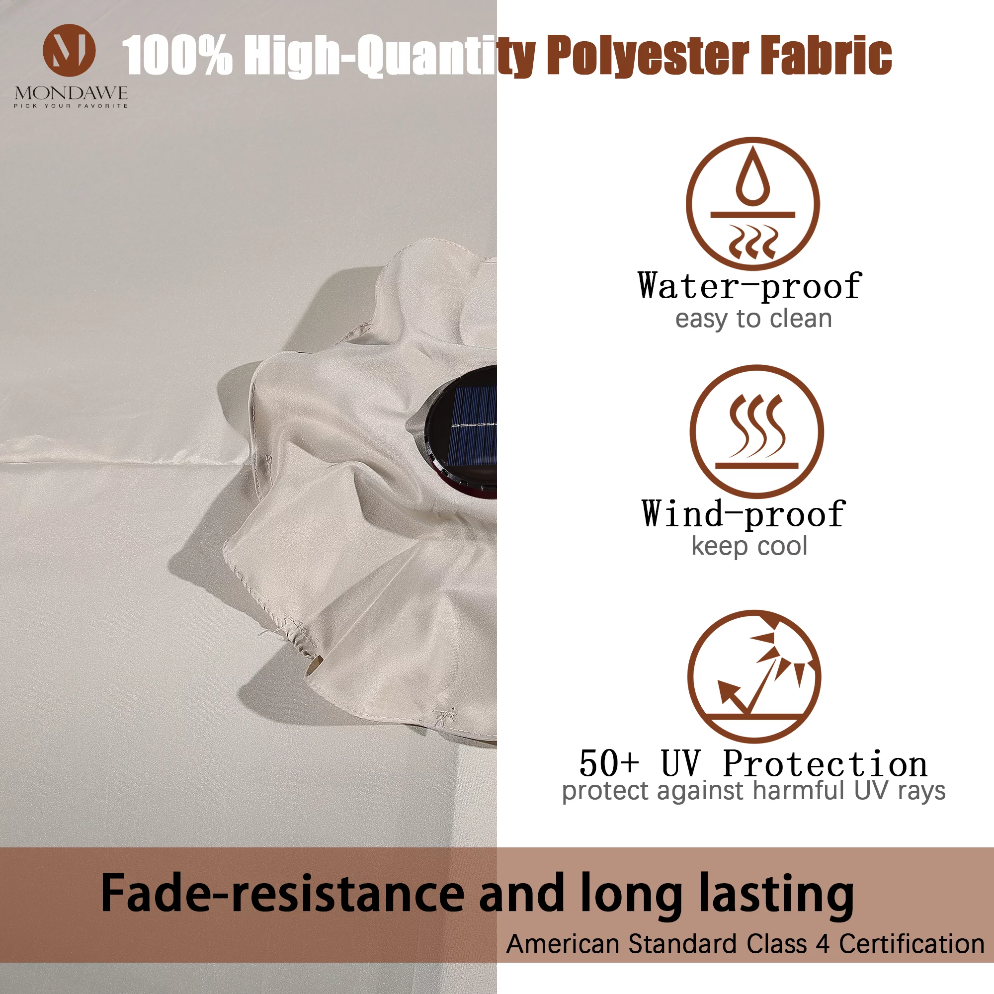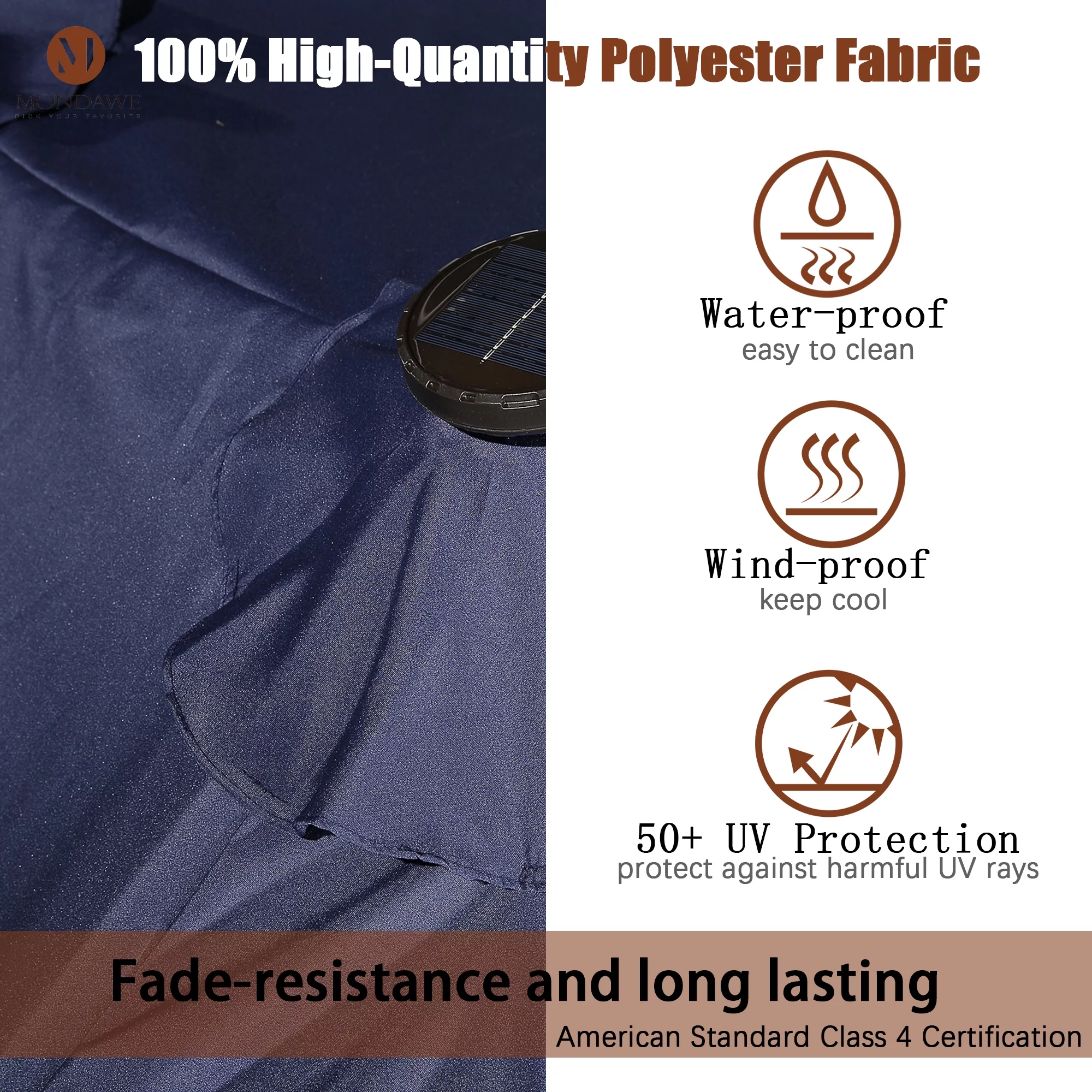 15ft Large Patio Umbrella with Solar Lights, Double-Sided Outdoor Market Rectangle Beach Umbrellas with 36 LED Lights, Umbrella Base (Stand) Included