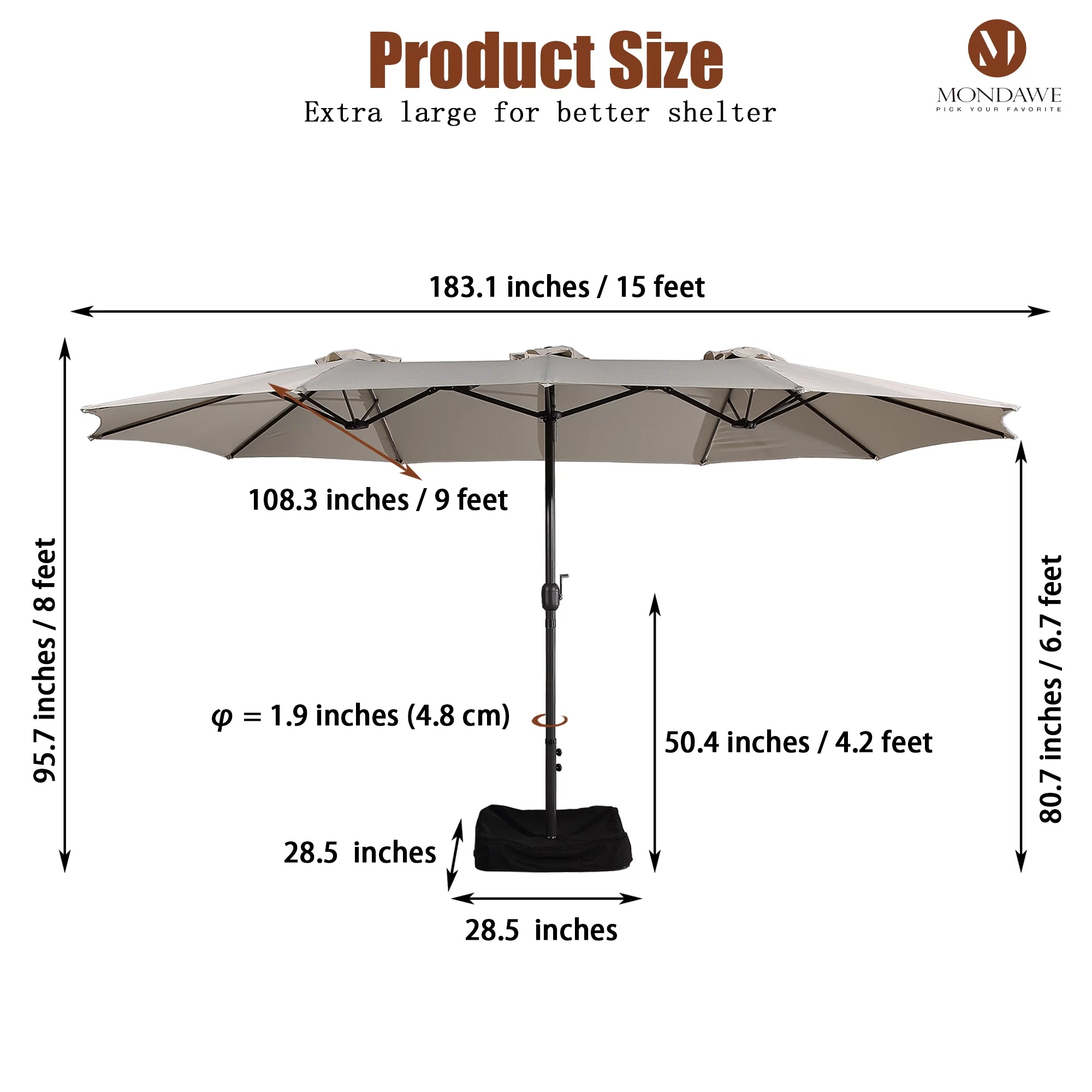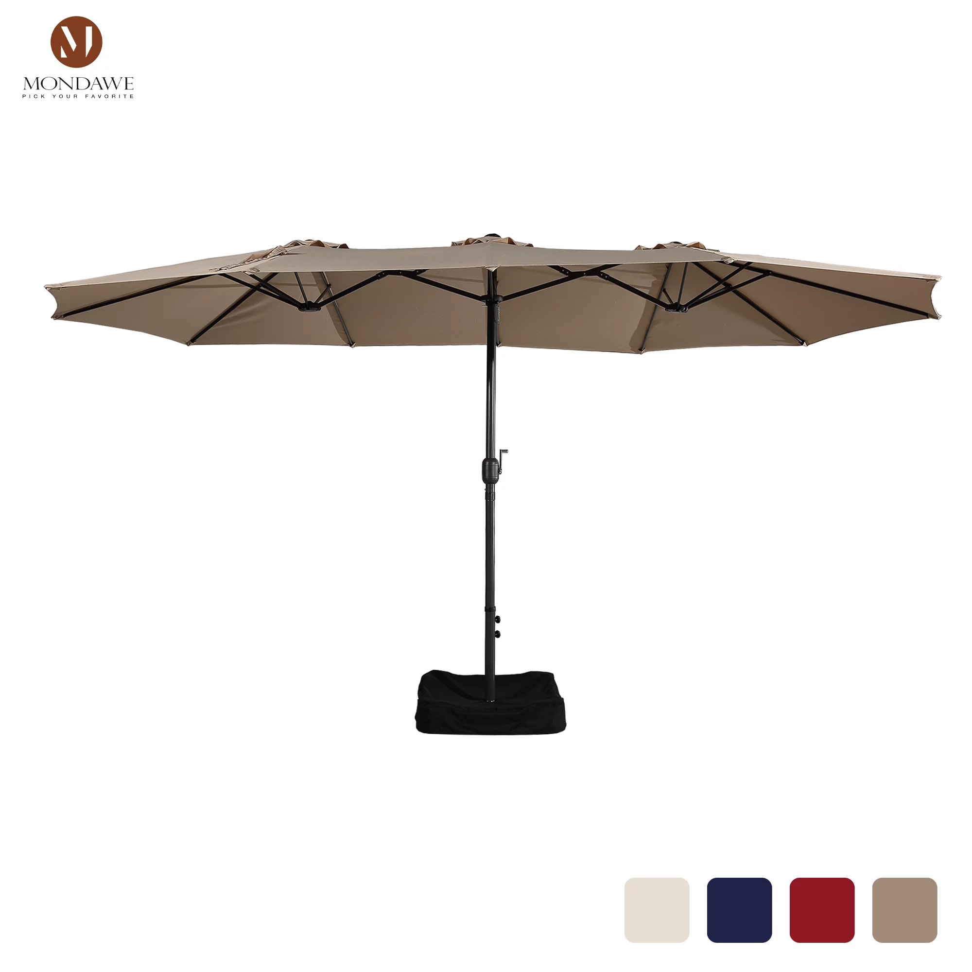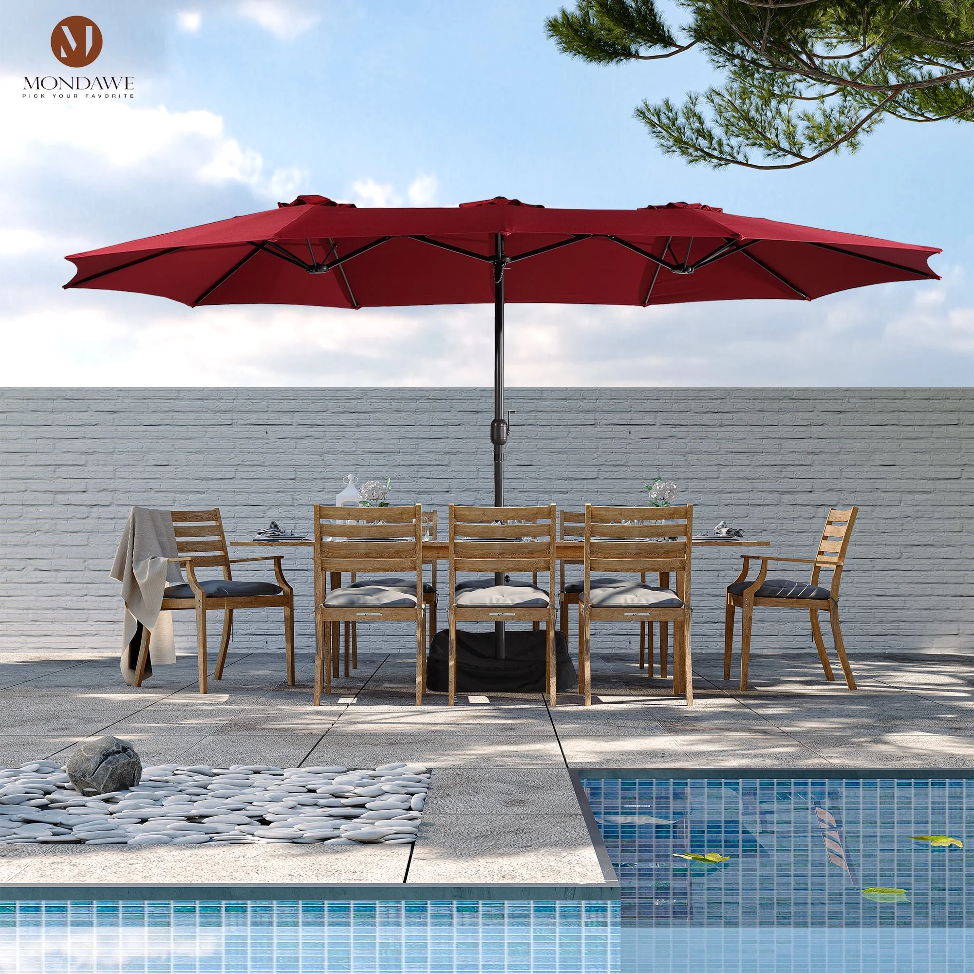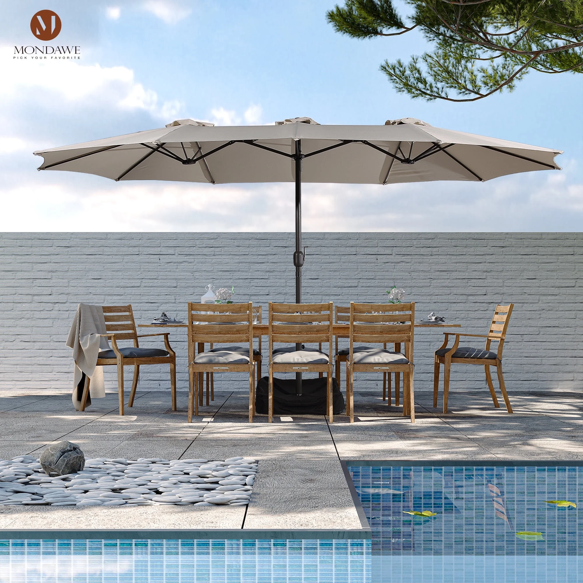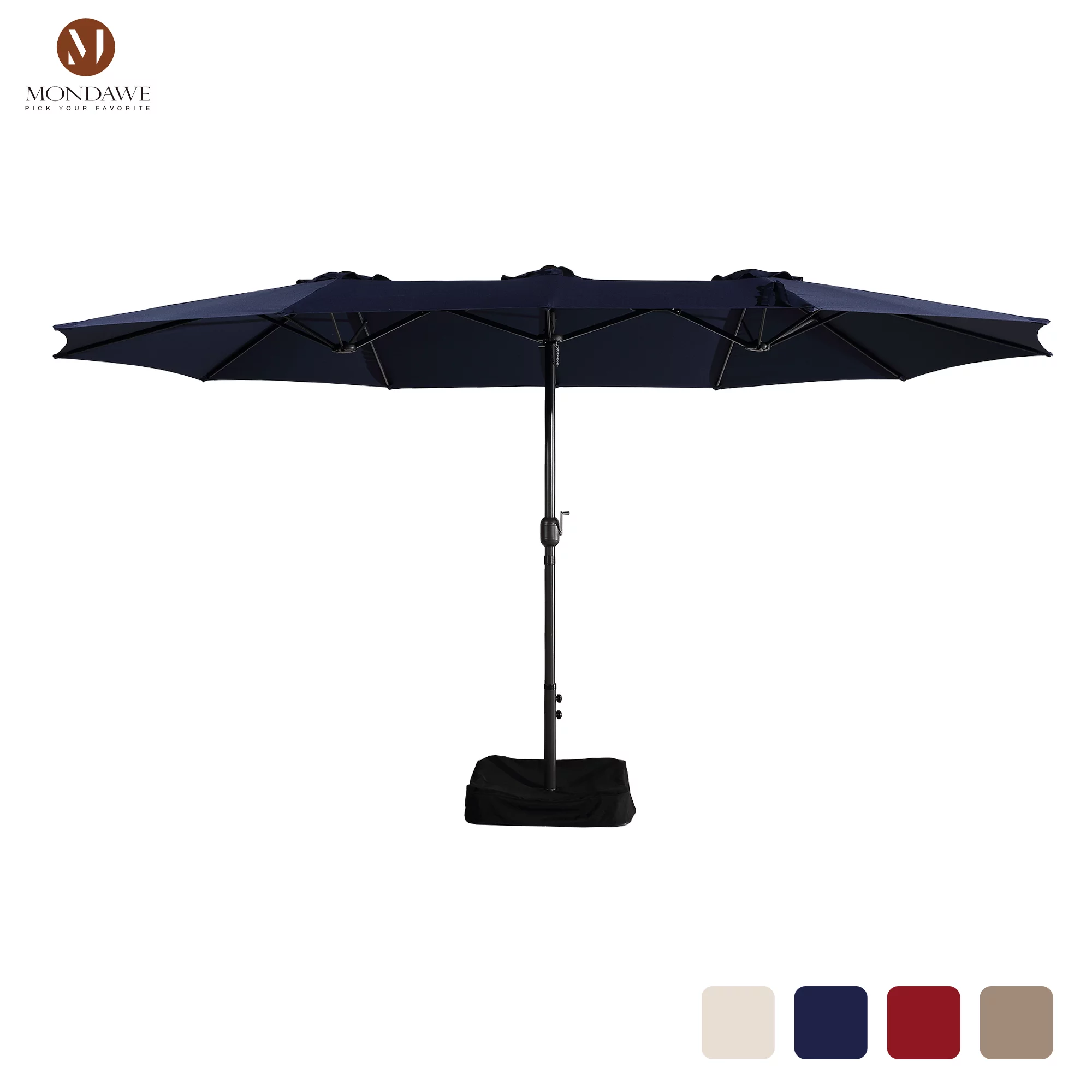 15ft Large Patio Umbrellas with Base Included, Outdoor Double-Sided Rectangle Market Umbrella with Crank Handle, for Pool Lawn Garden