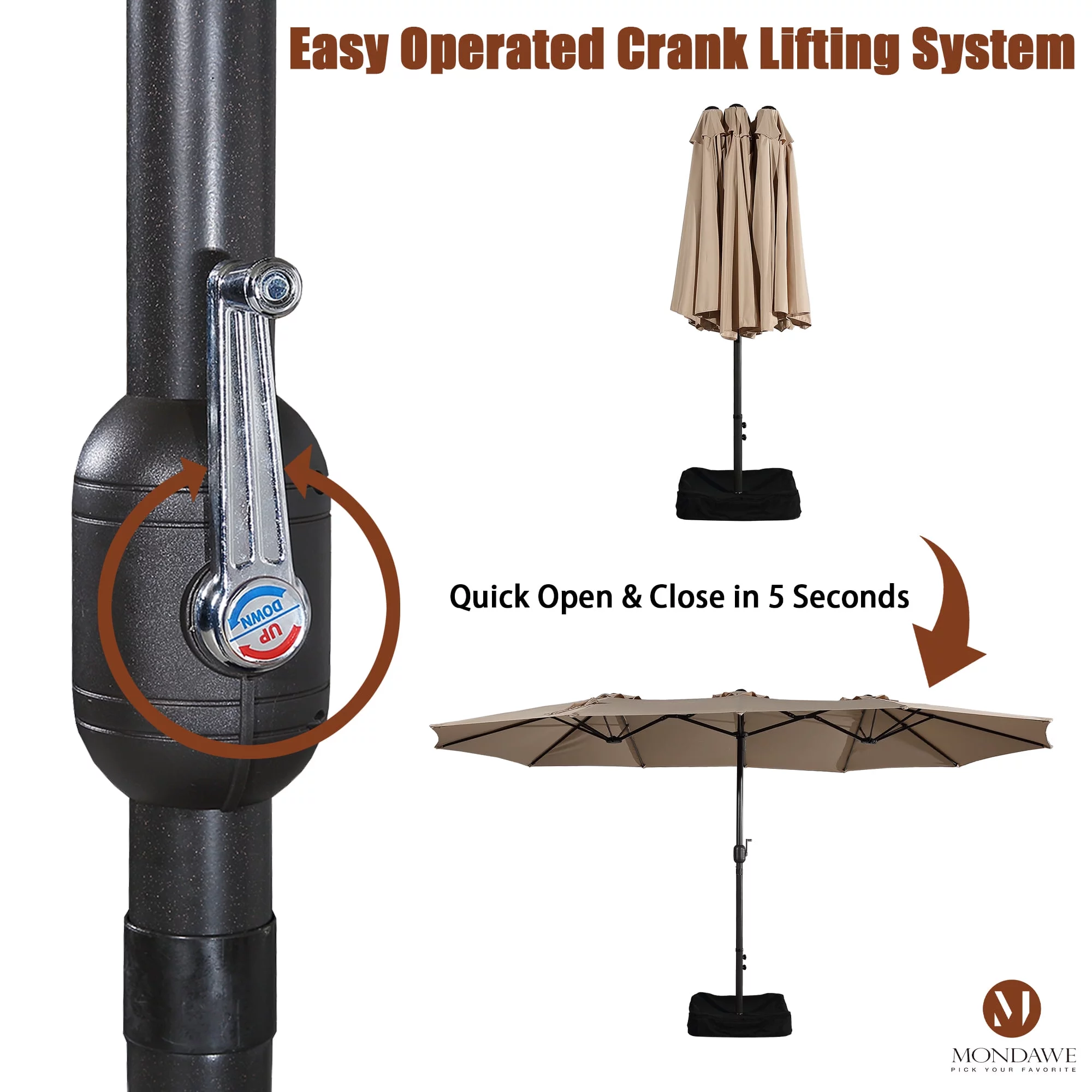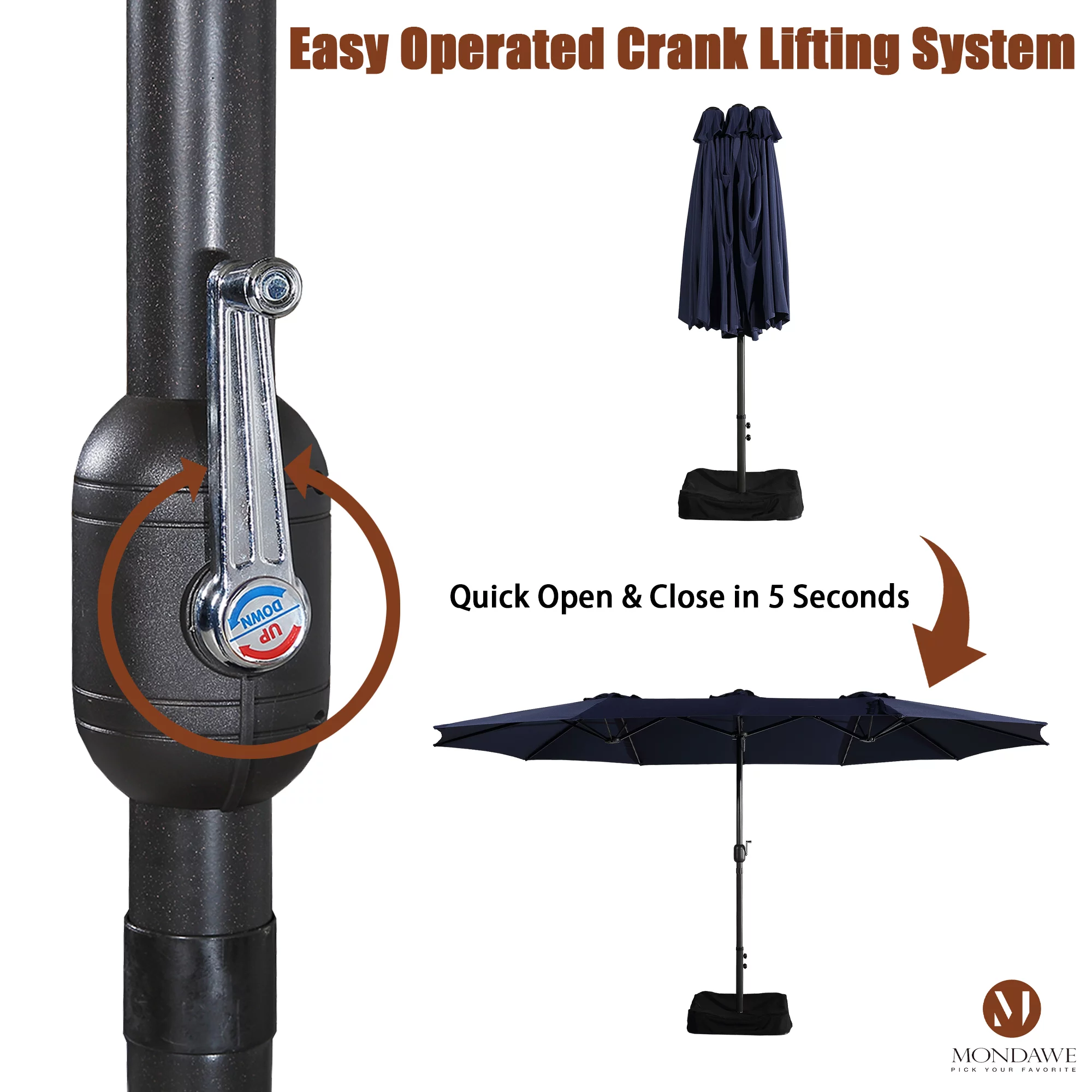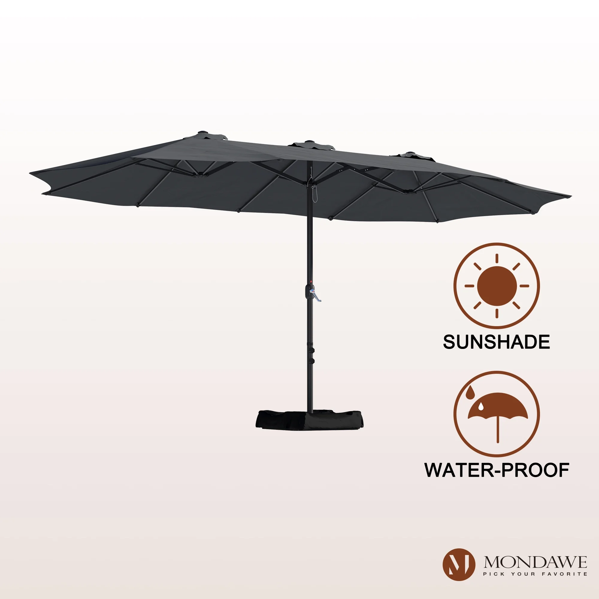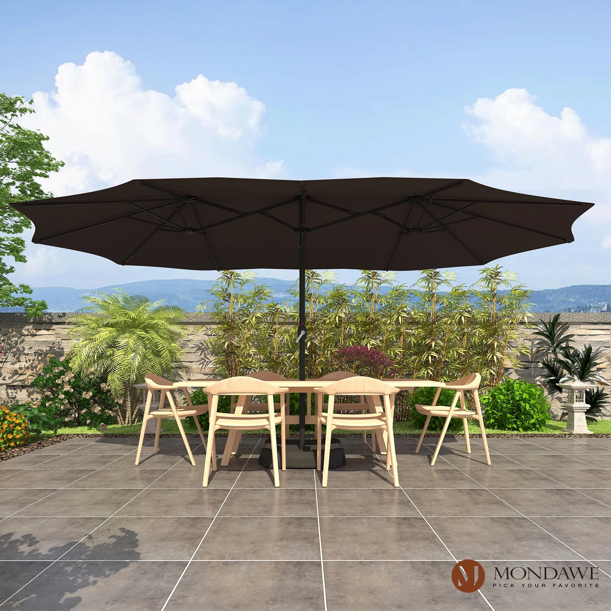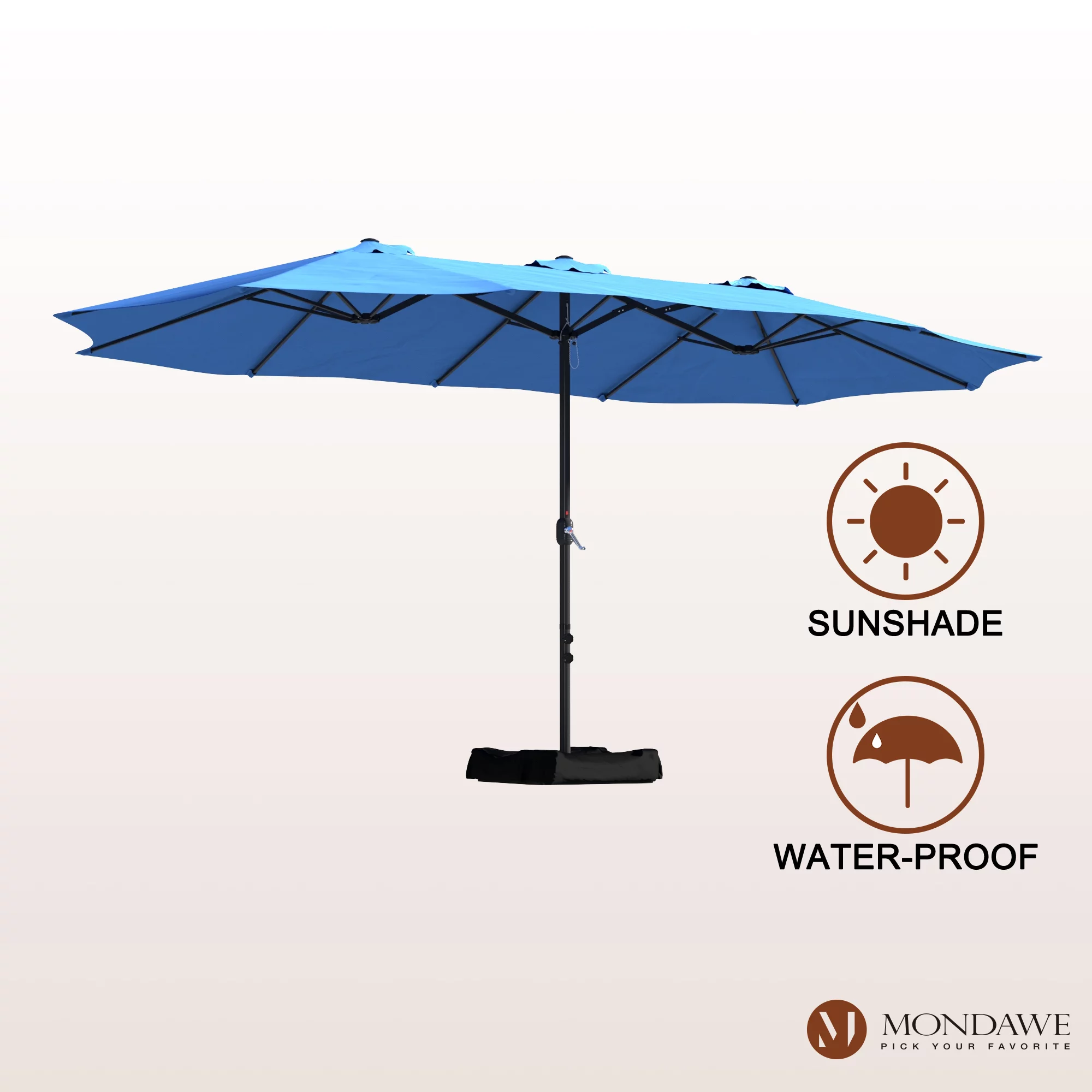 15ft Large Patio Umbrellas with Base Included, Outdoor Double-Sided Rectangle Market Umbrella with Crank Handle, for Pool Lawn Garden