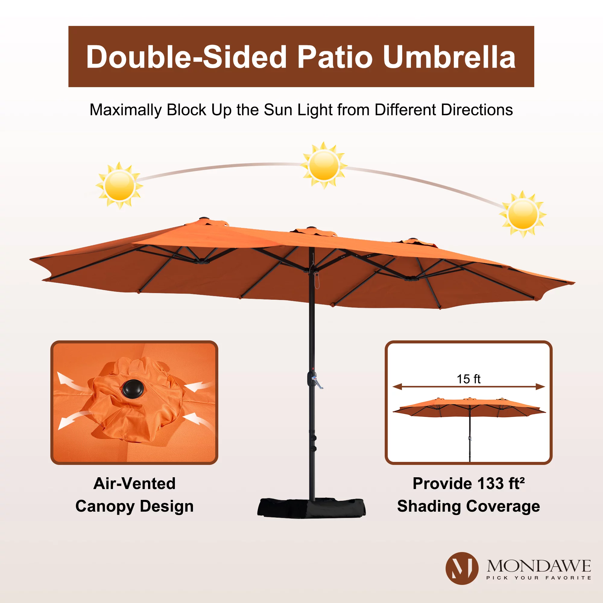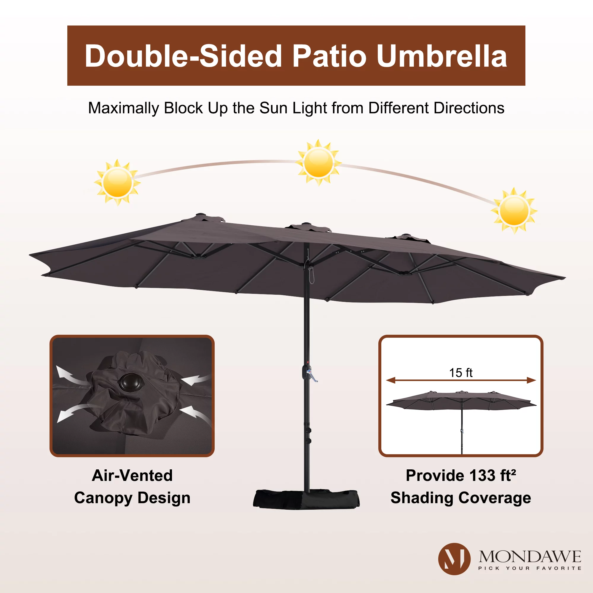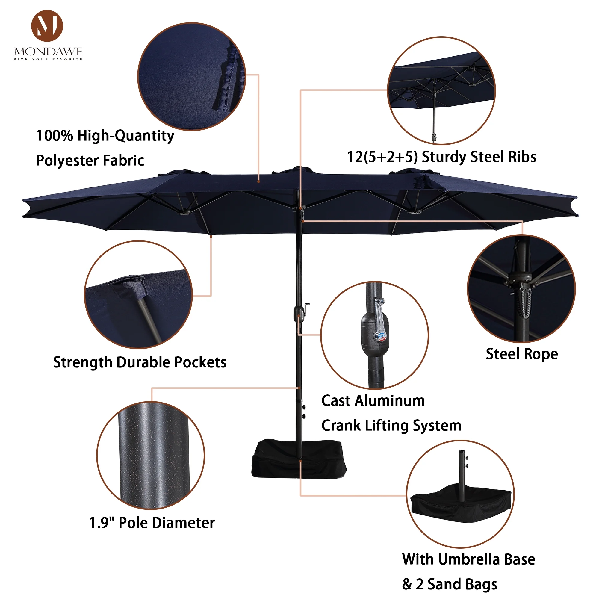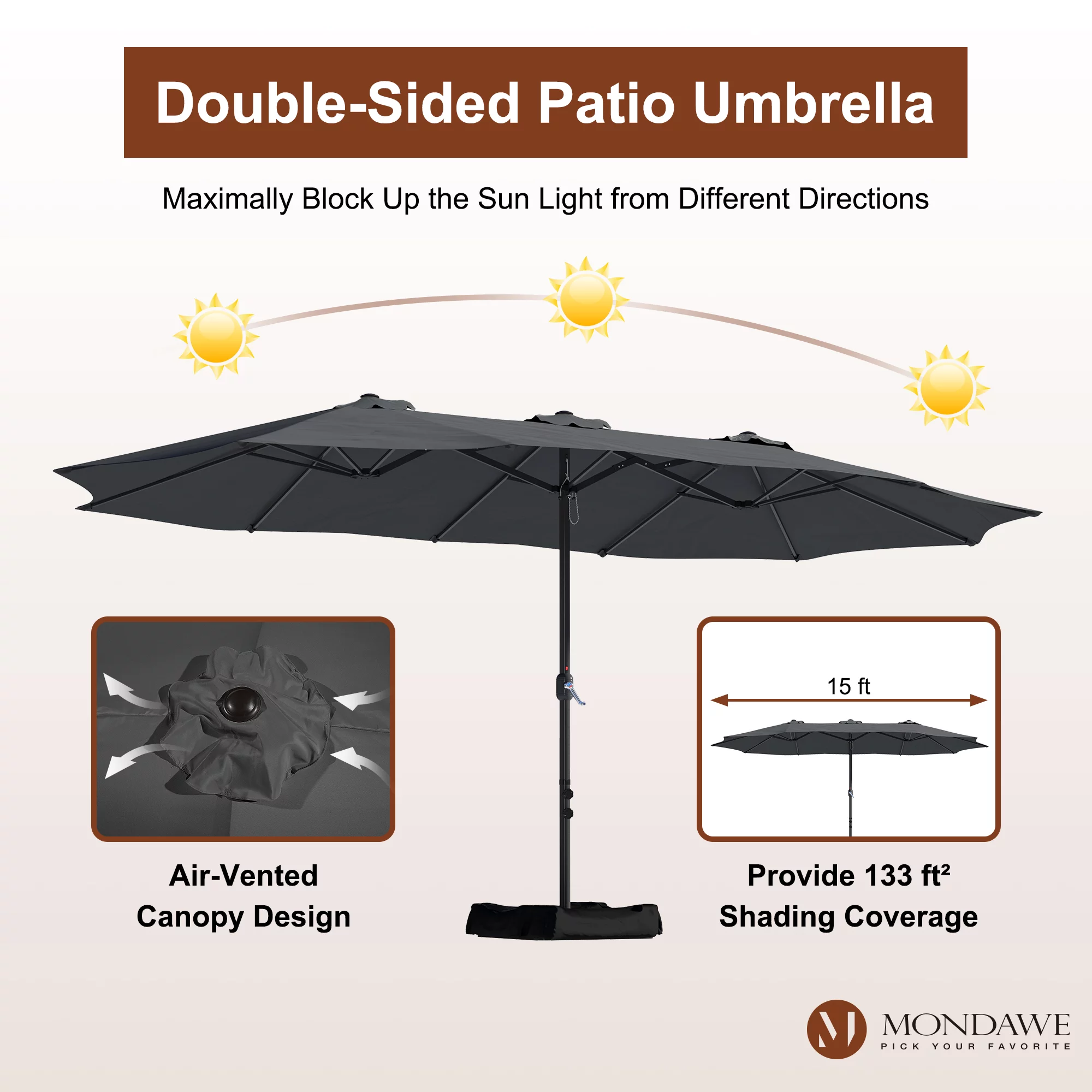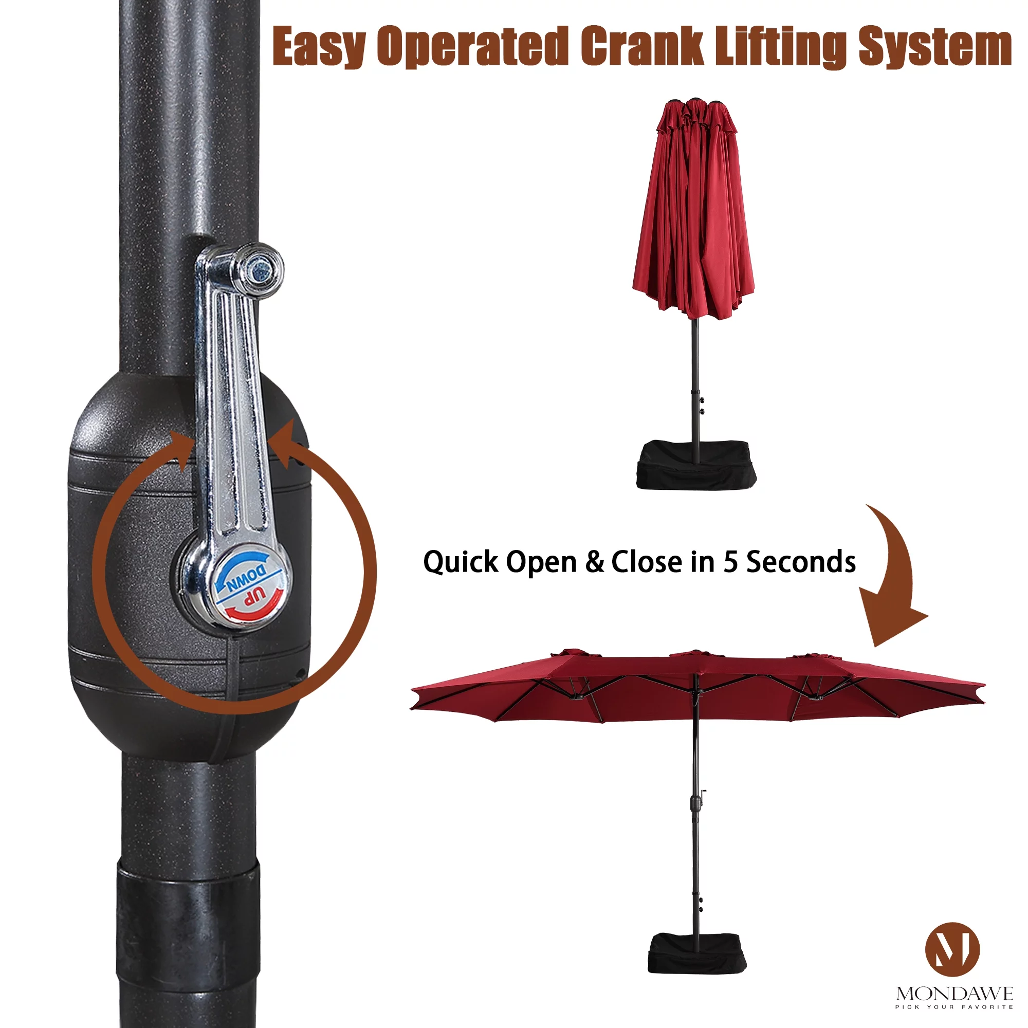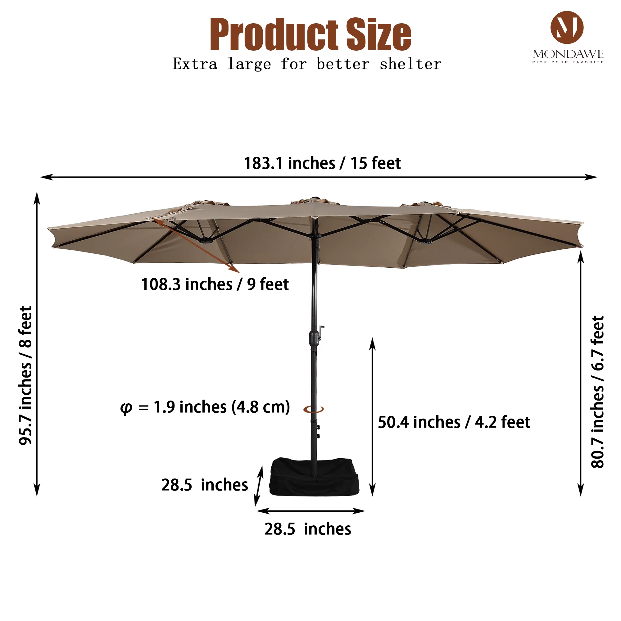 15ft Large Patio Umbrellas with Base Included, Outdoor Double-Sided Rectangle Market Umbrella with Crank Handle, for Pool Lawn Garden