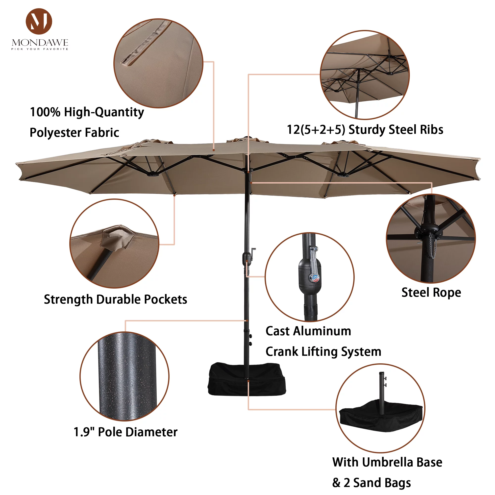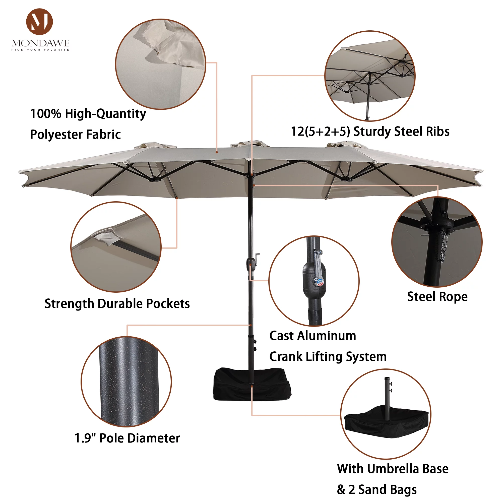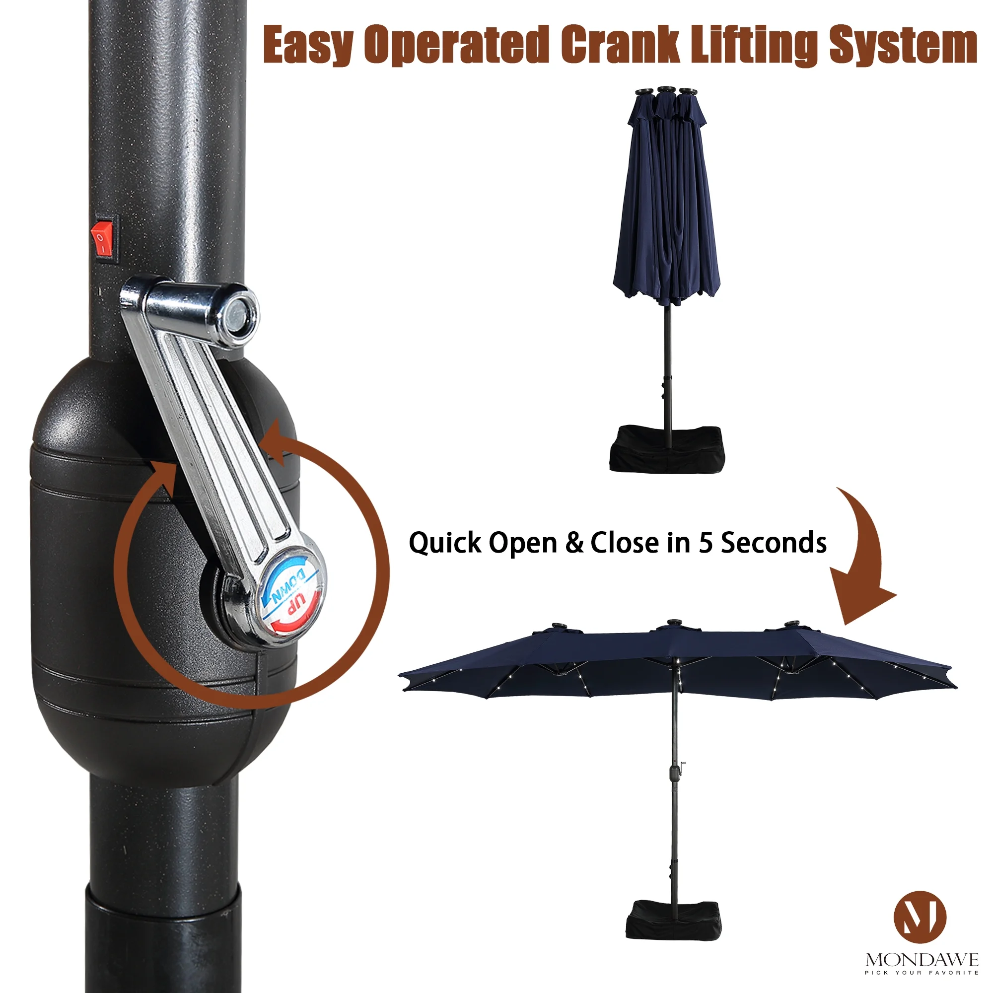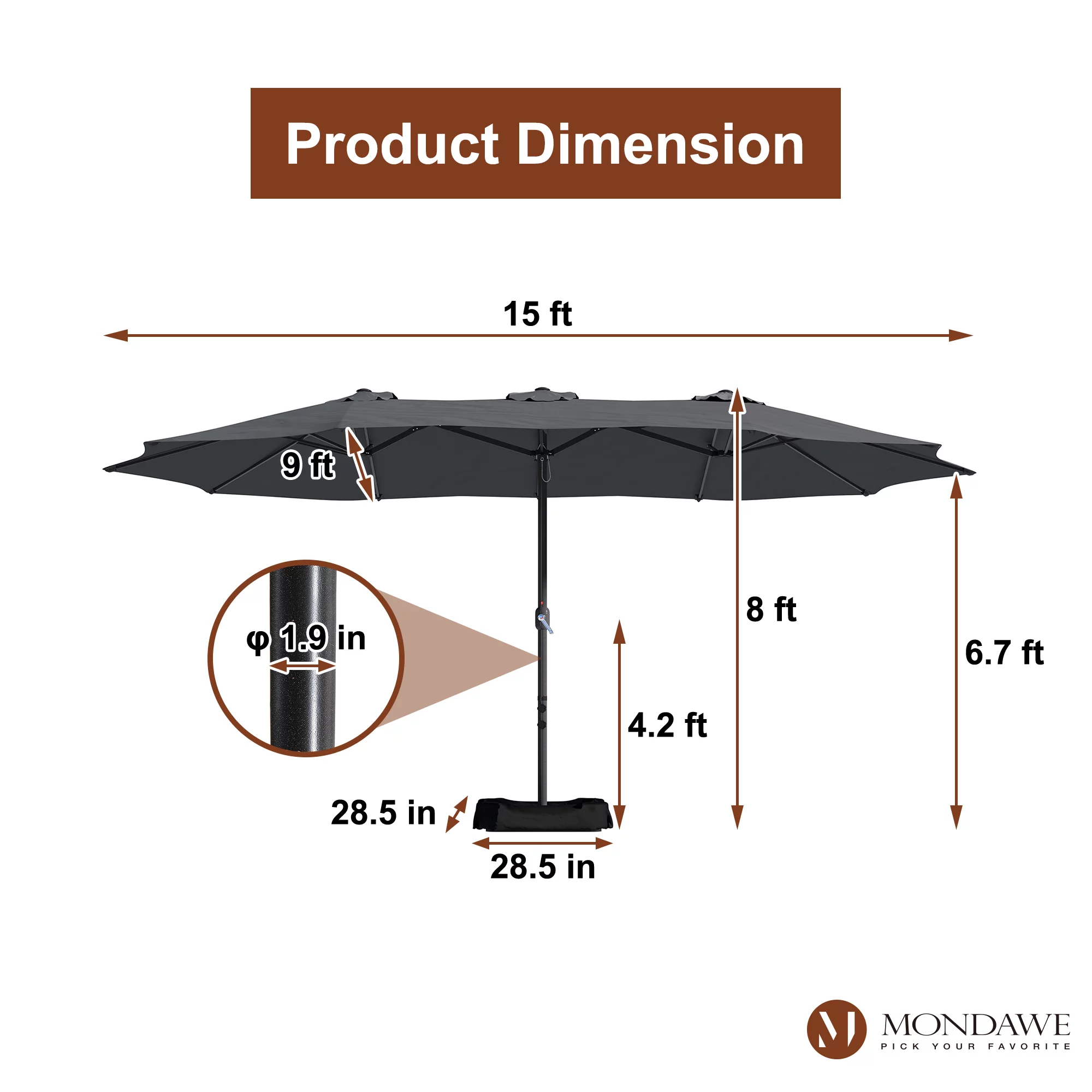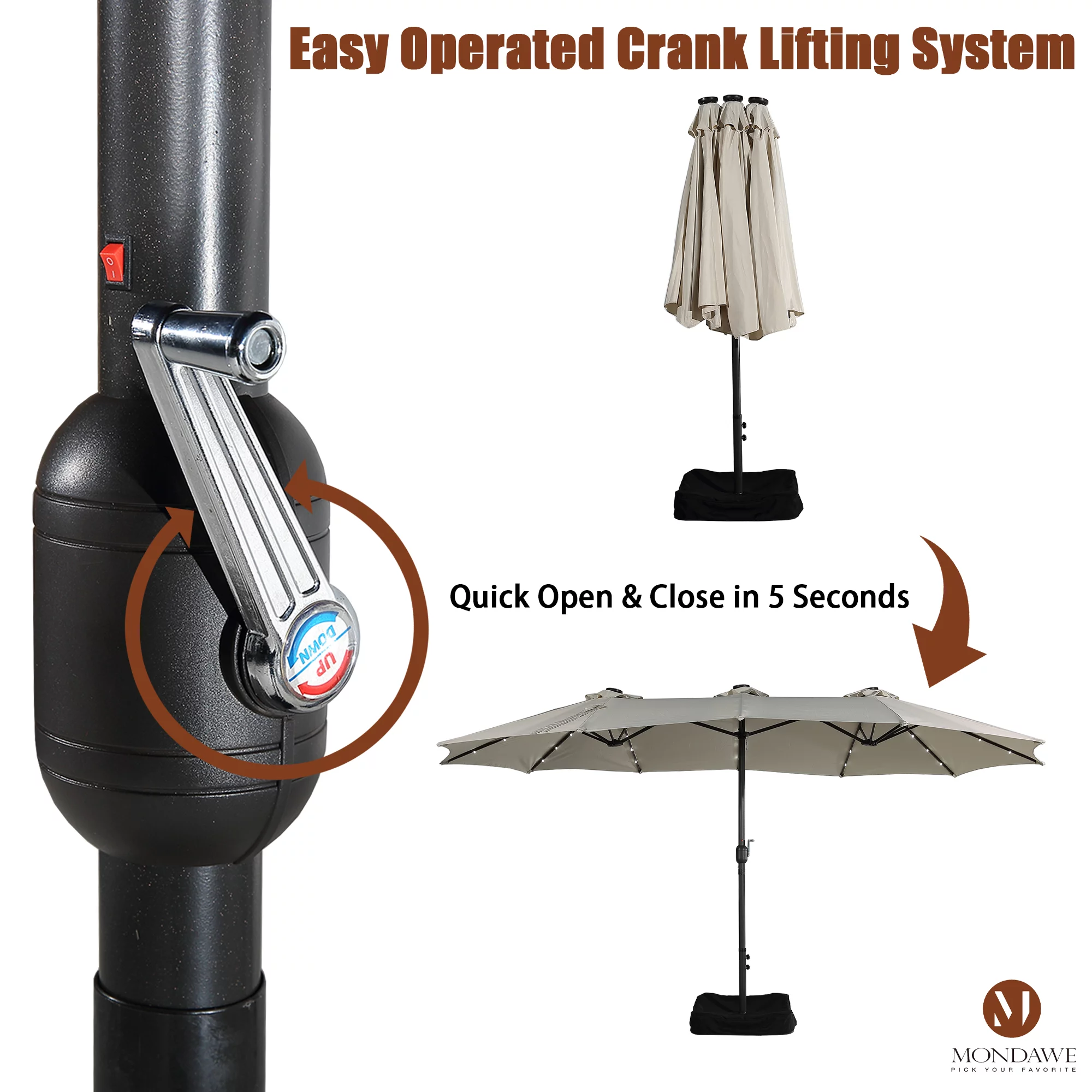 15ft Large Patio Umbrellas with Base Included, Outdoor Double-Sided Rectangle Market Umbrella with Crank Handle, for Pool Lawn Garden