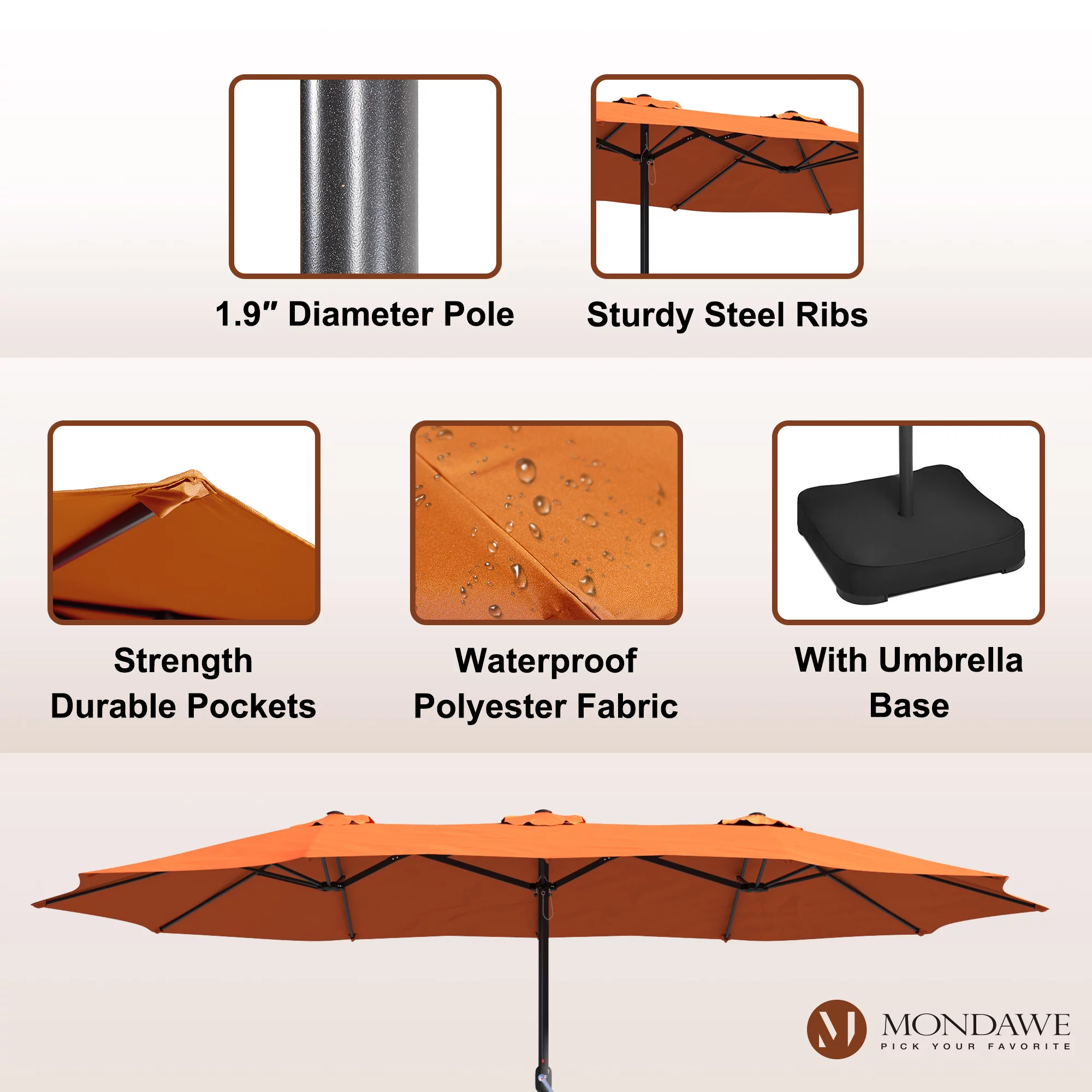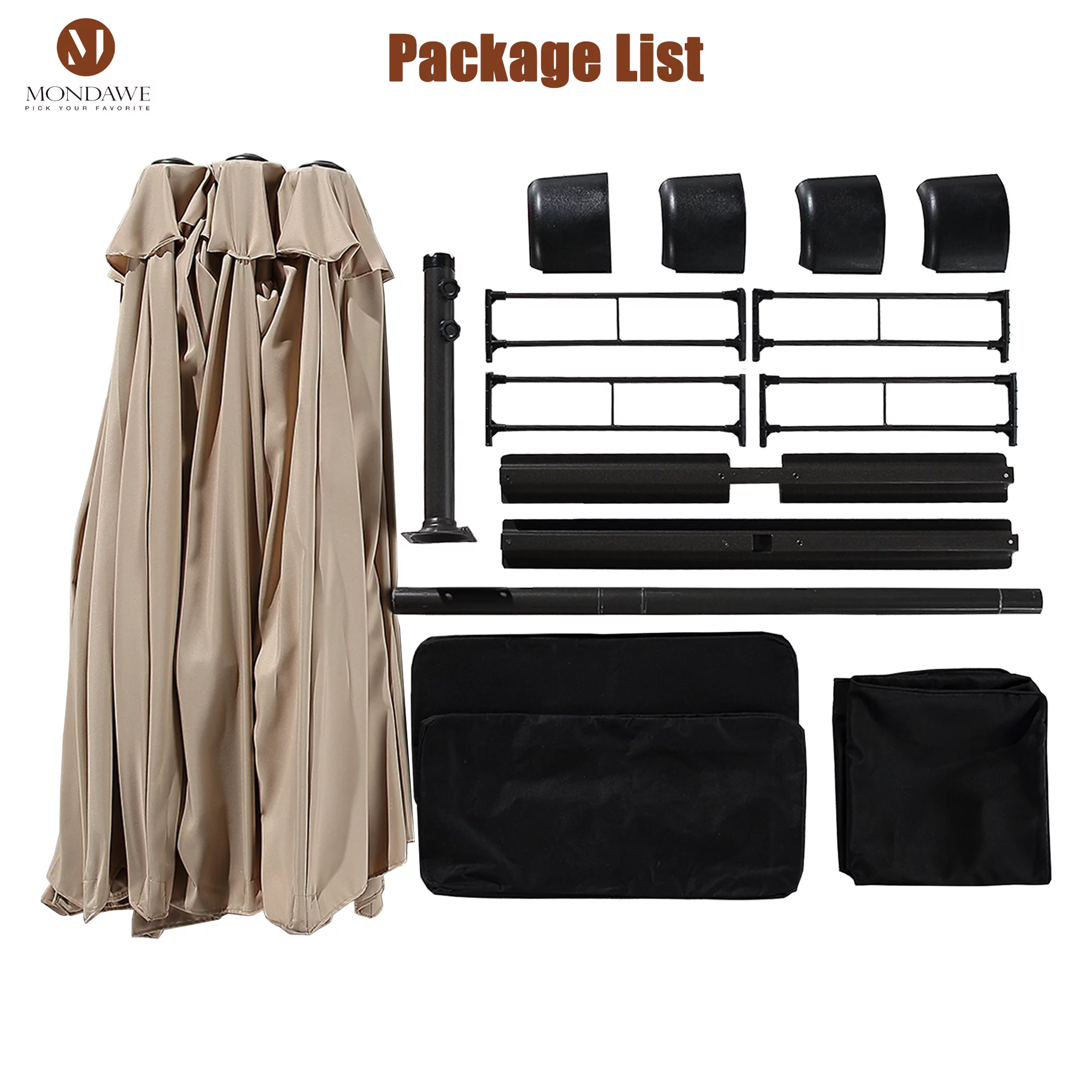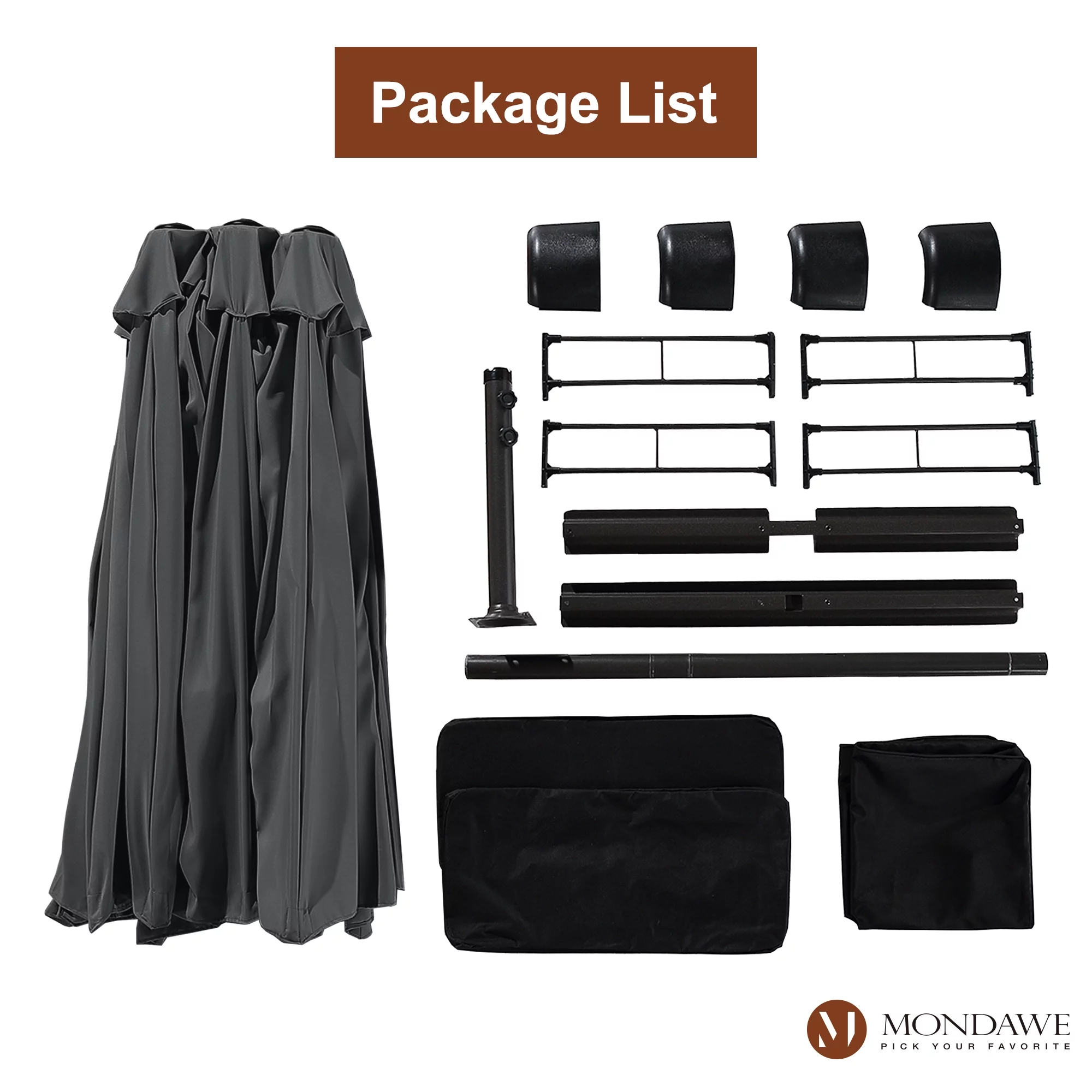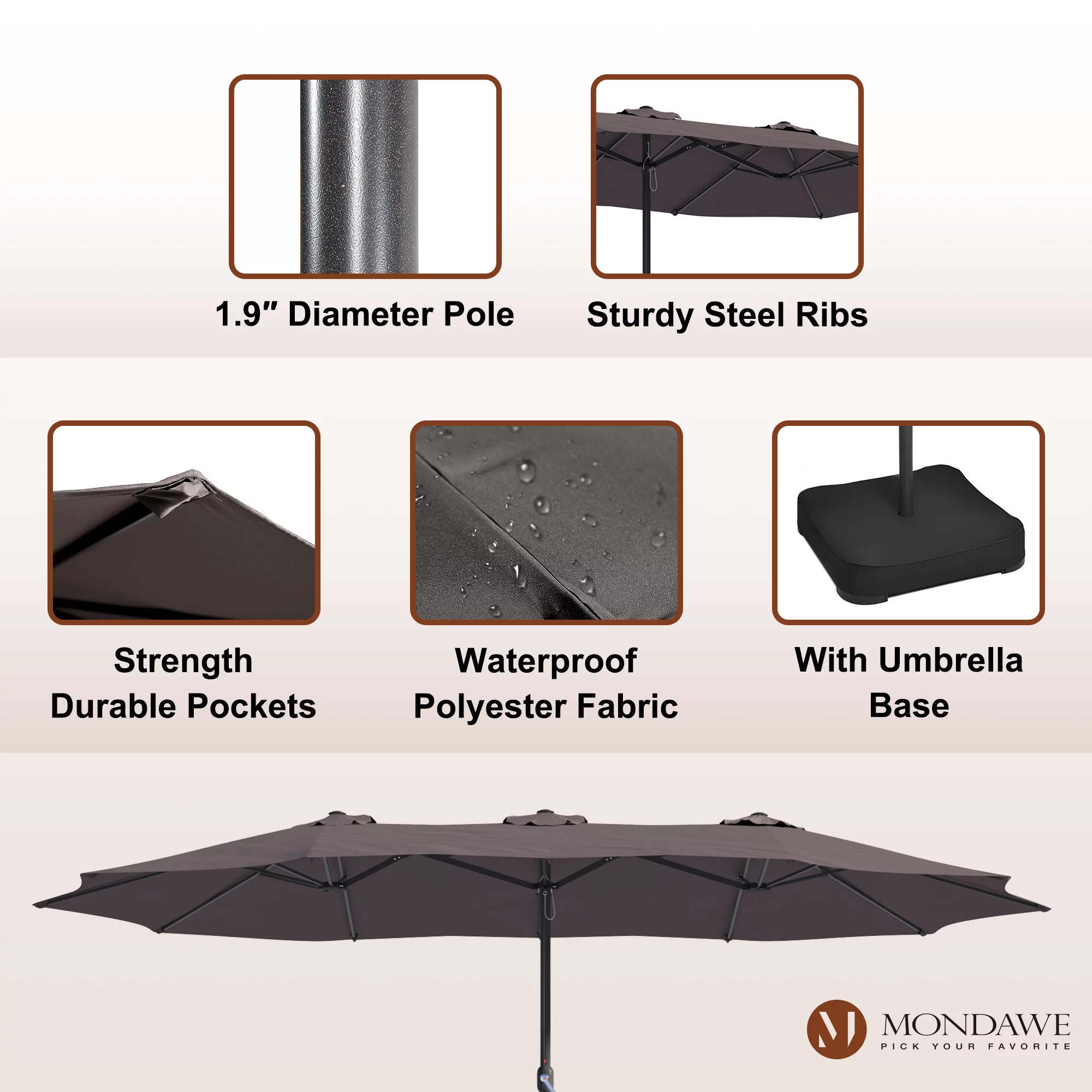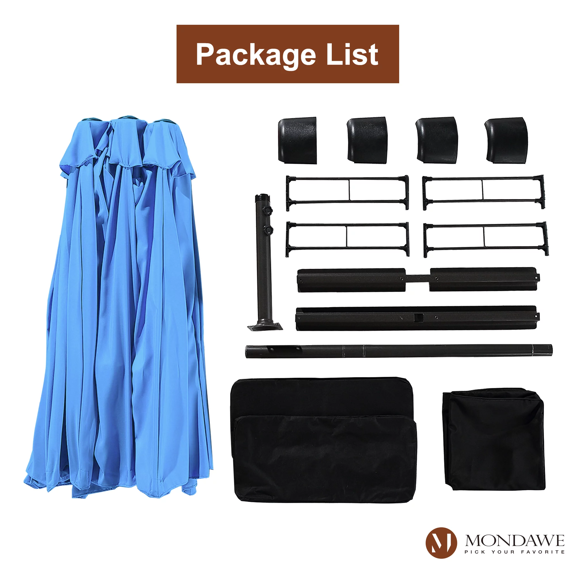 15ft Large Patio Umbrellas with Base Included, Outdoor Double-Sided Rectangle Market Umbrella with Crank Handle, for Pool Lawn Garden