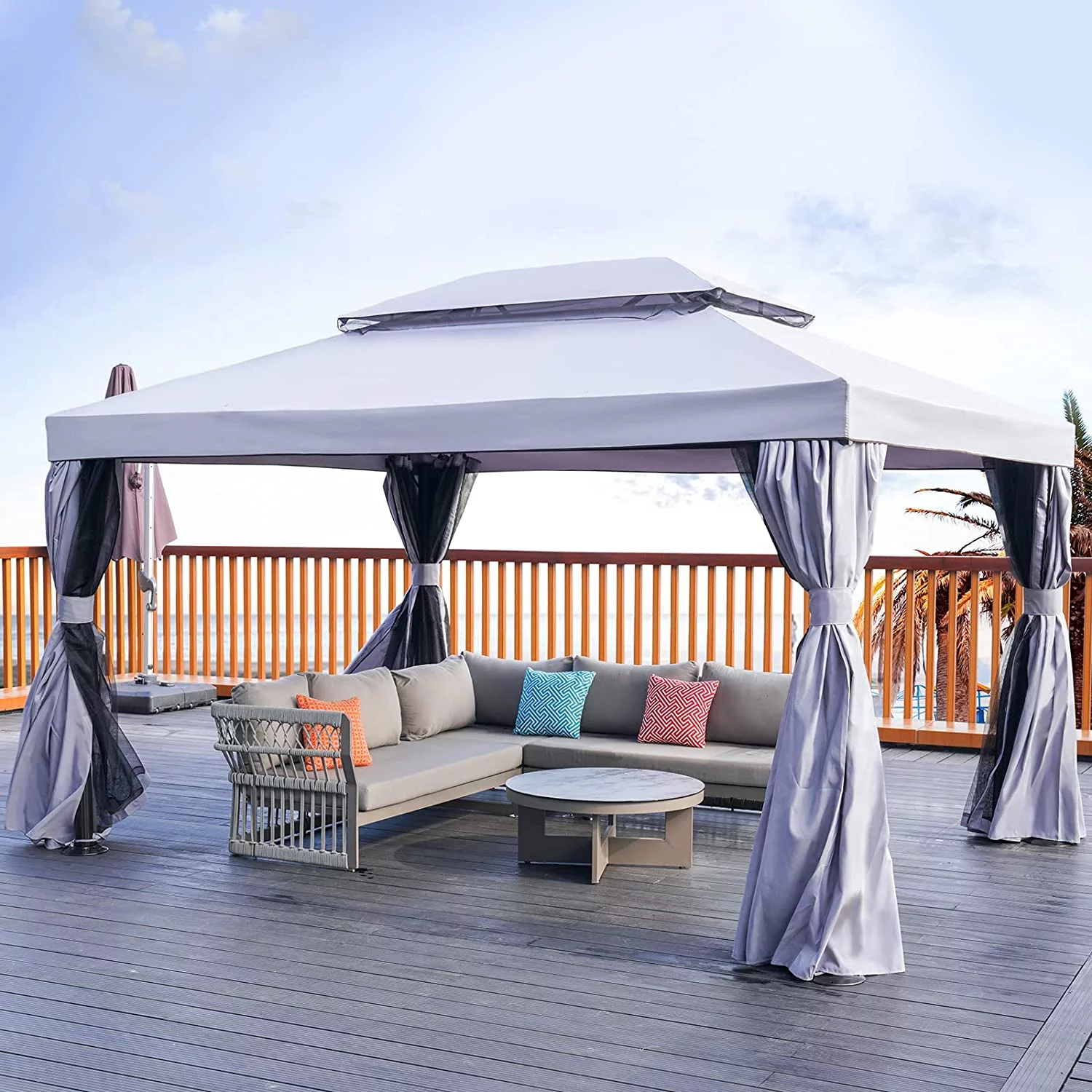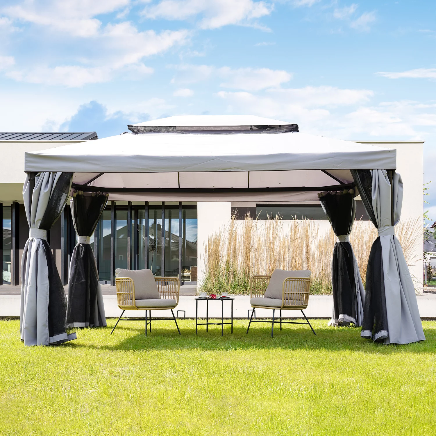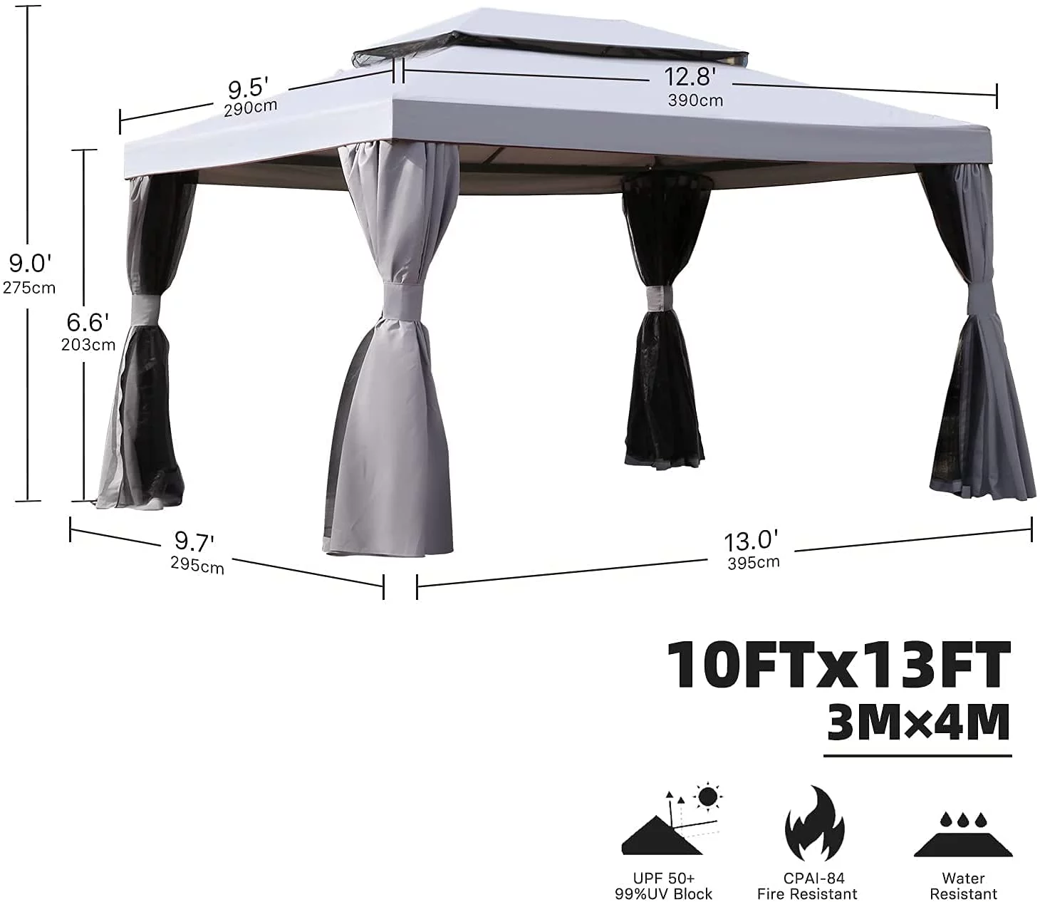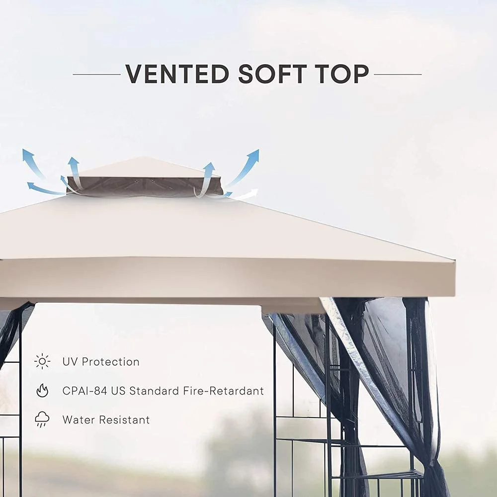 10x10 Ft Patio Gazebo with Mesh Netting Outdoor Canopy for Backyard, Garden, Pool-Side