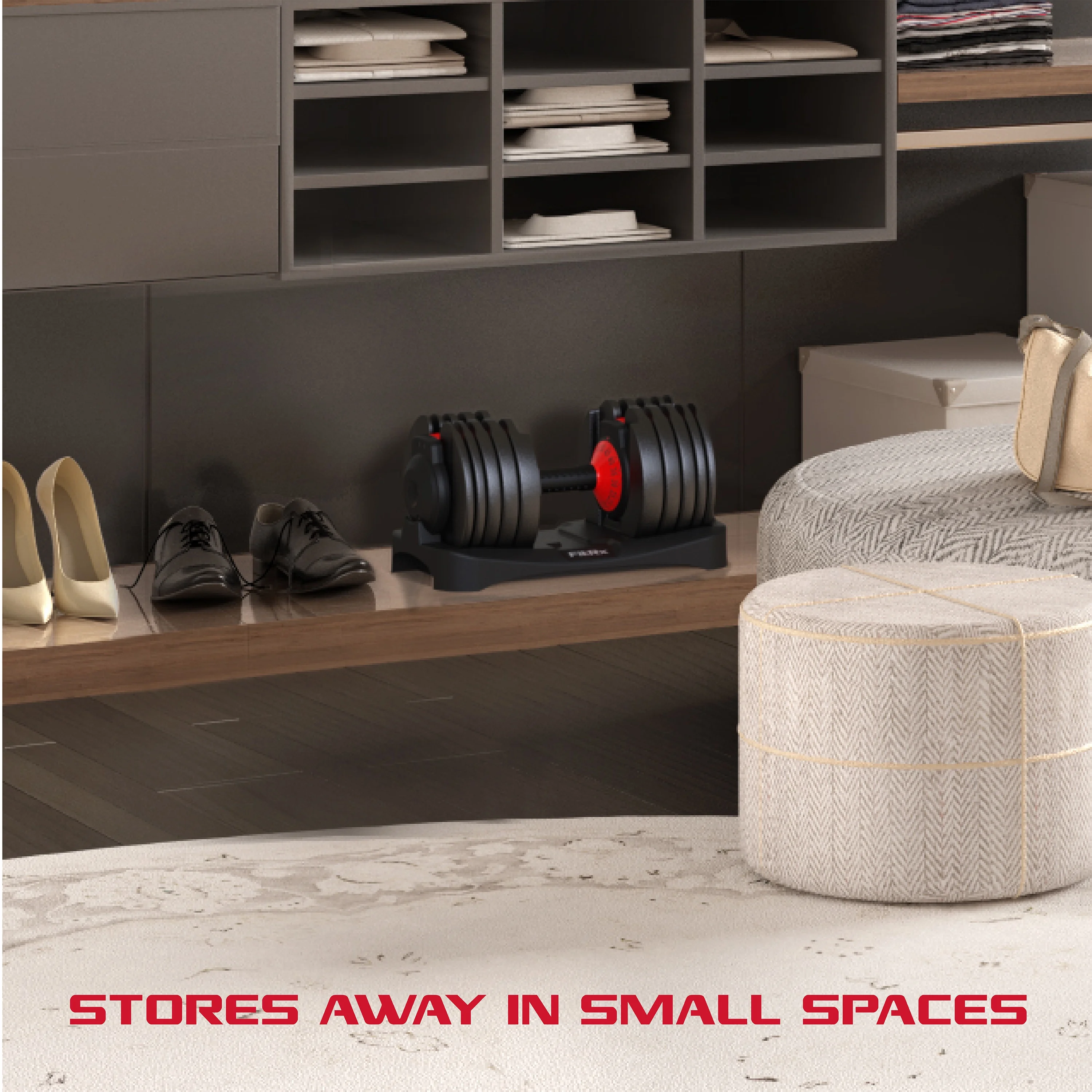 FitRx SmartBell, Quick-Select Adjustable Dumbbell, 5-52.5 lbs. Weight, Black, Single