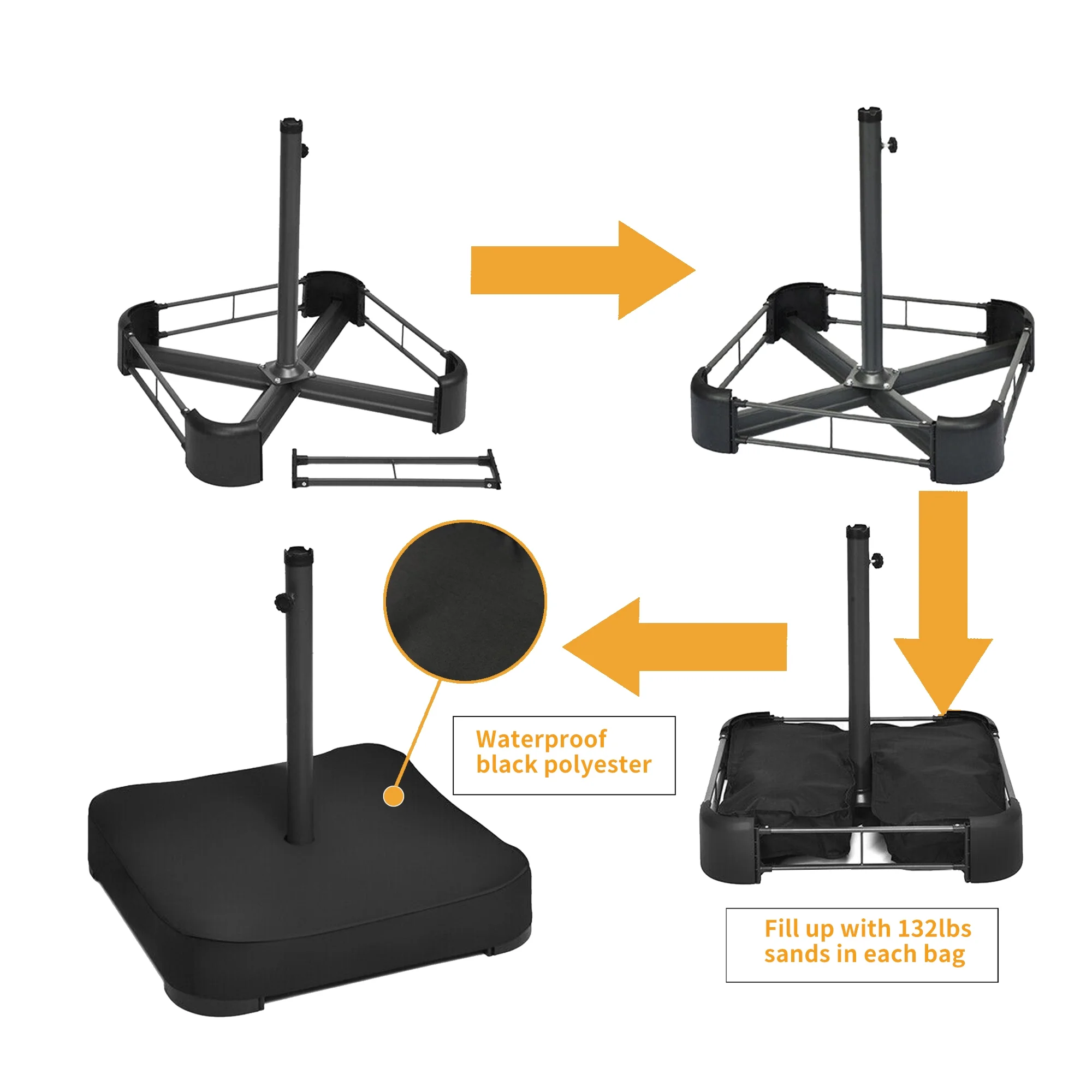 13*32inch Four-Piece Set, Black Round Iron Stove Frame, Silver Aluminum 30qt Turkey Pot 10qt Fish Pot, Gas Fryer