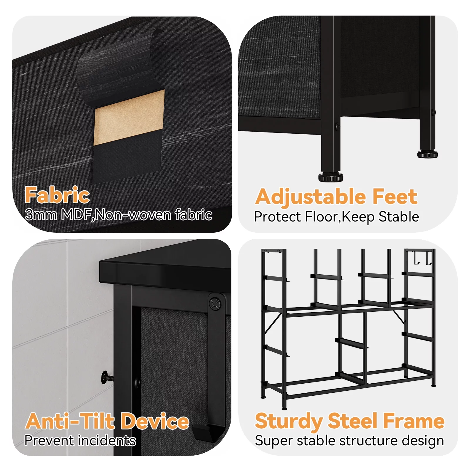 Zzistar 10 Drawers Dresser, Wood Top Dresser Chests of Drawers Storage Organizer Unit with Fabric Drawer