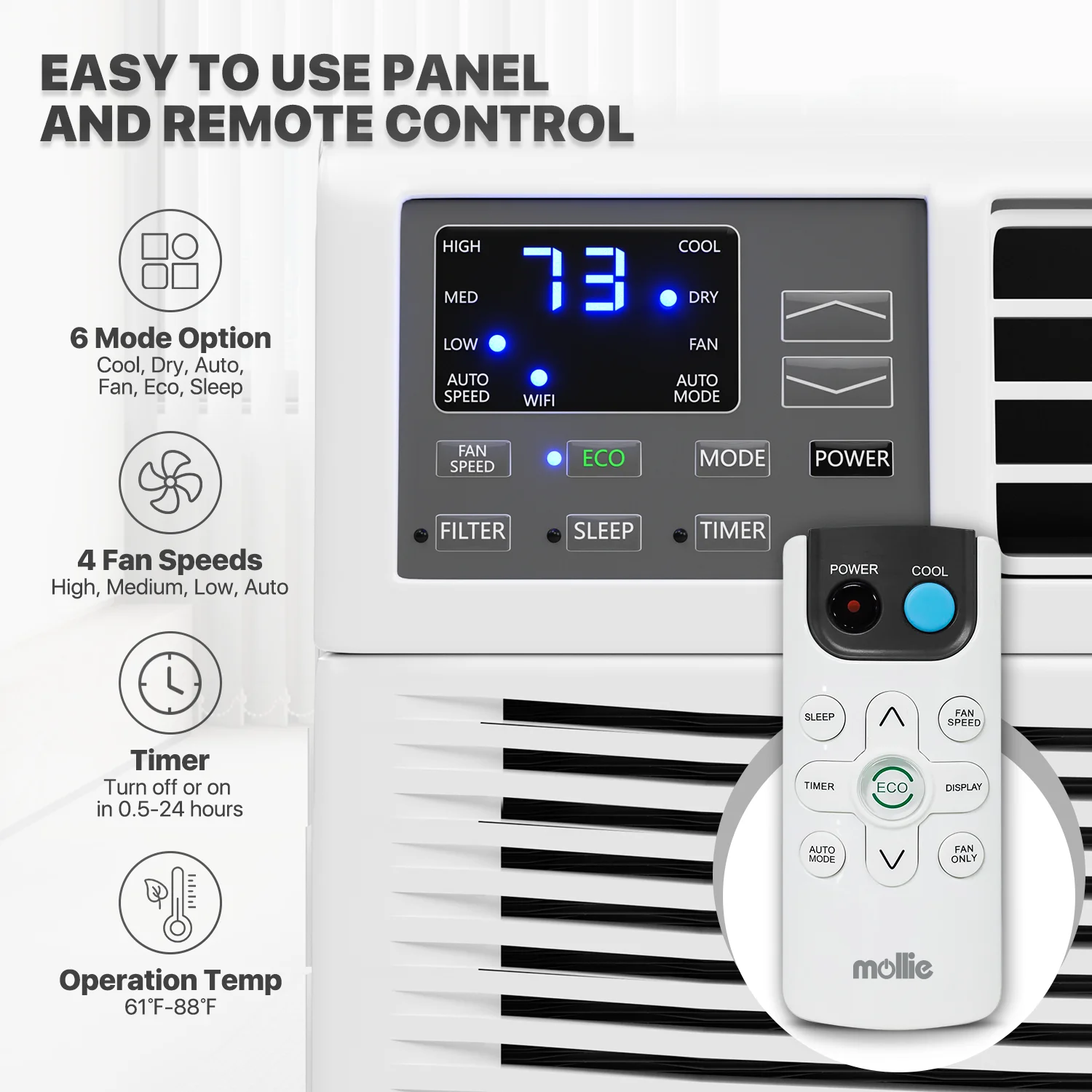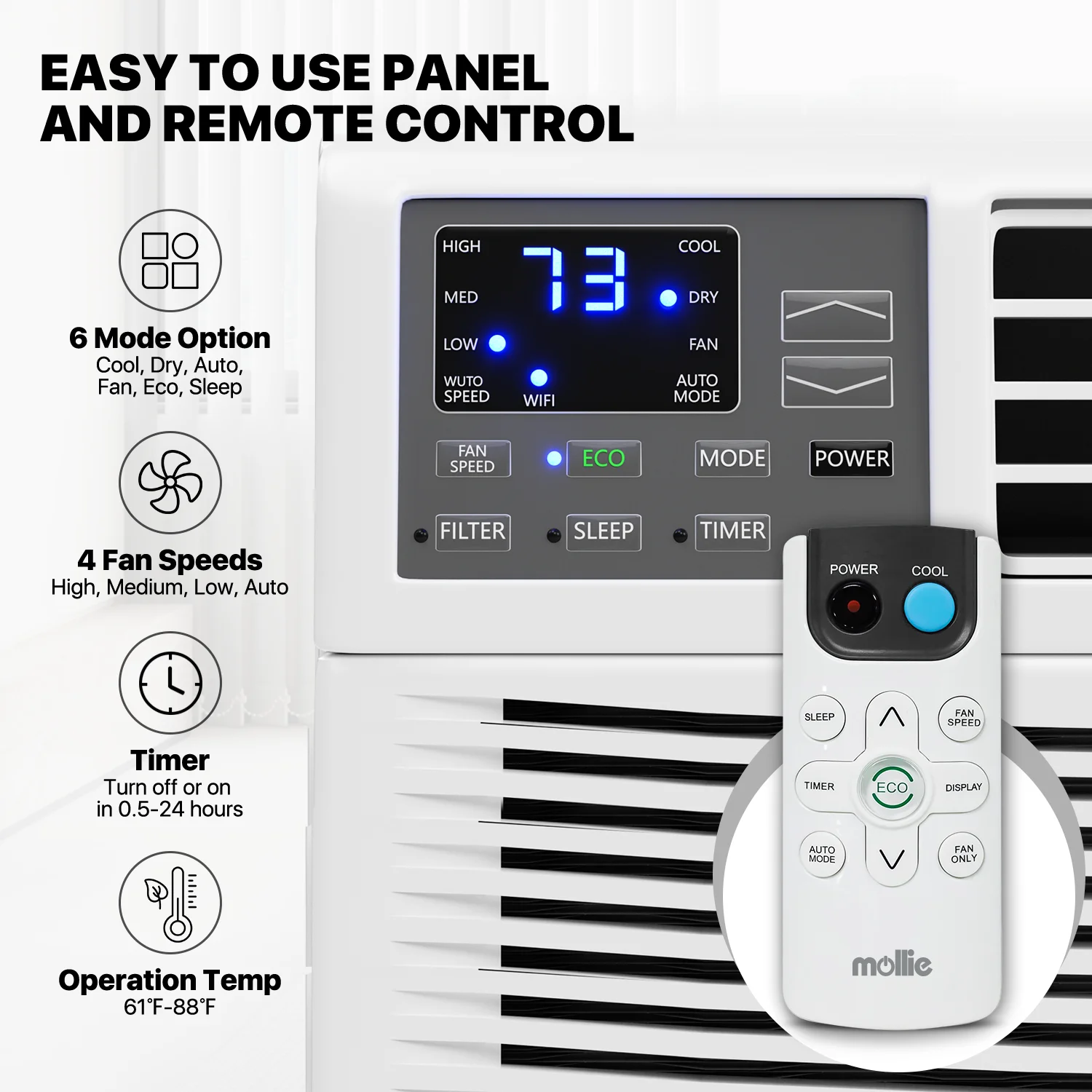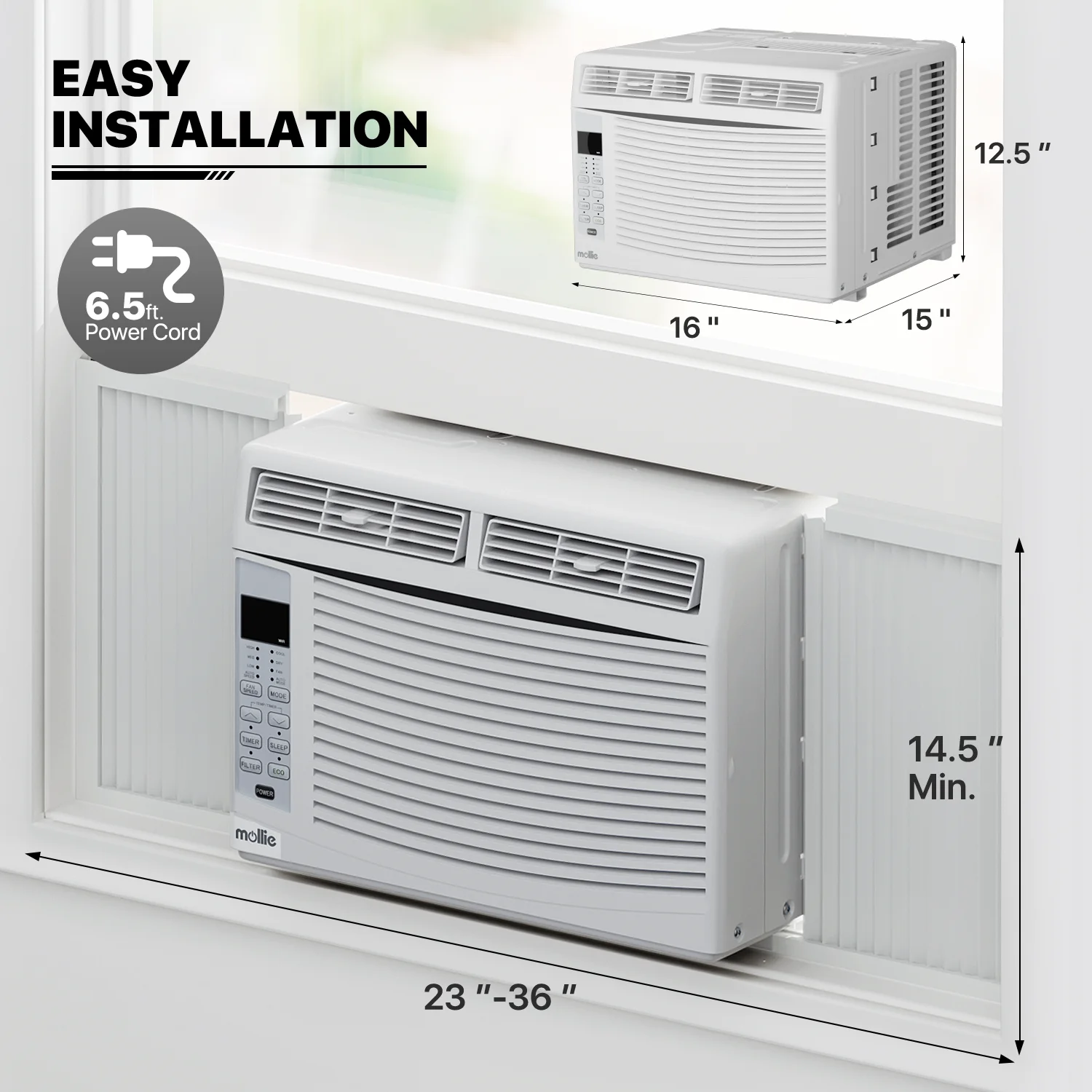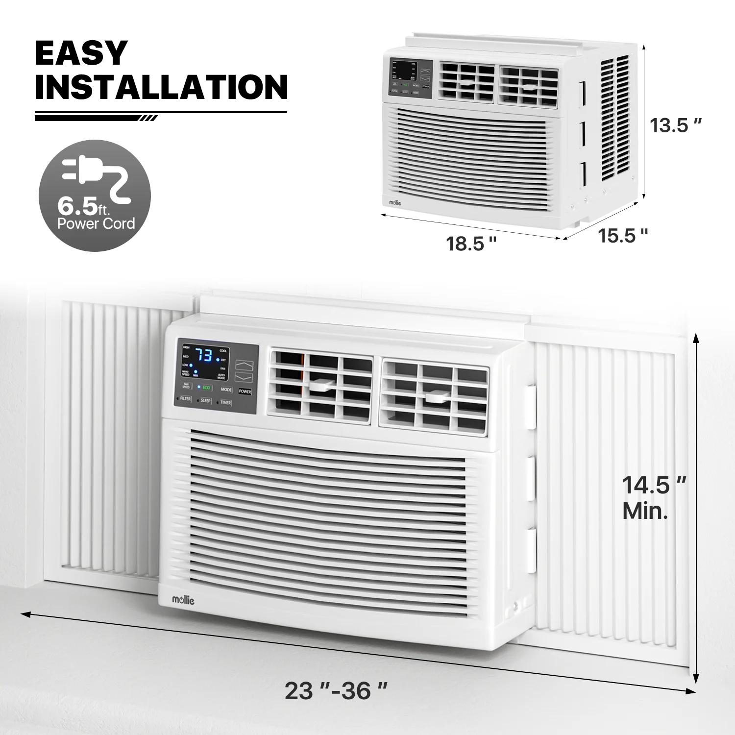 mollie 12,000 BTU 115V Smart Air Conditioner Window Unit with WIFI-Enabled, Energy Saving Room AC Unit with Remote Control & Timer Function, Cools Up to 450 Sq.Ft., White