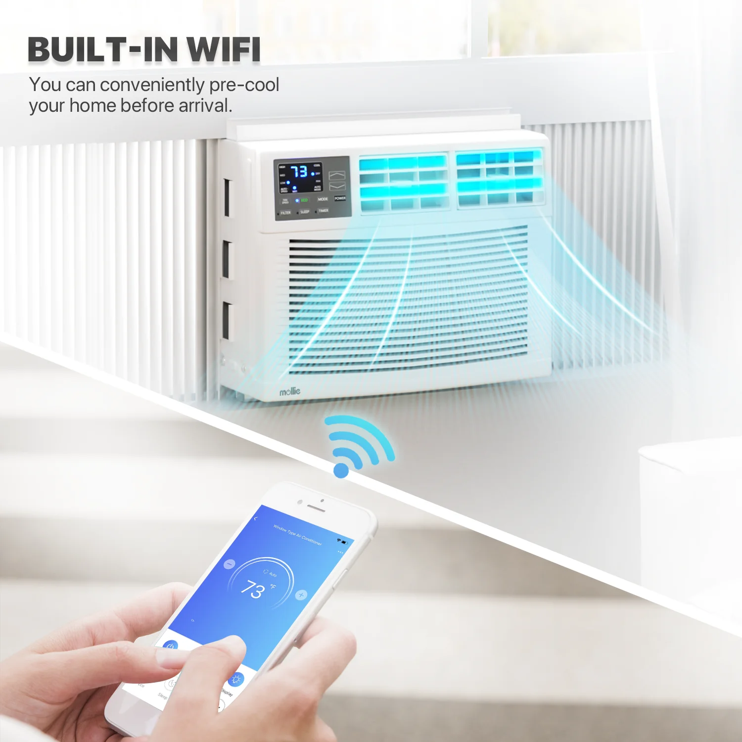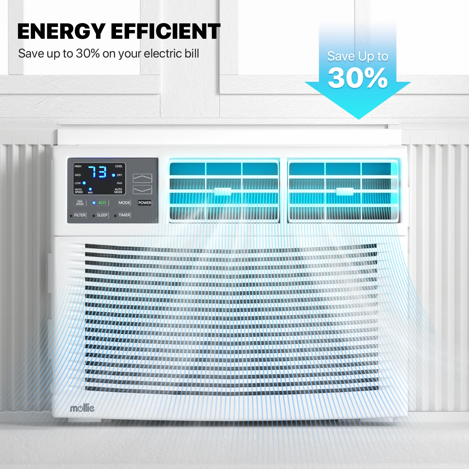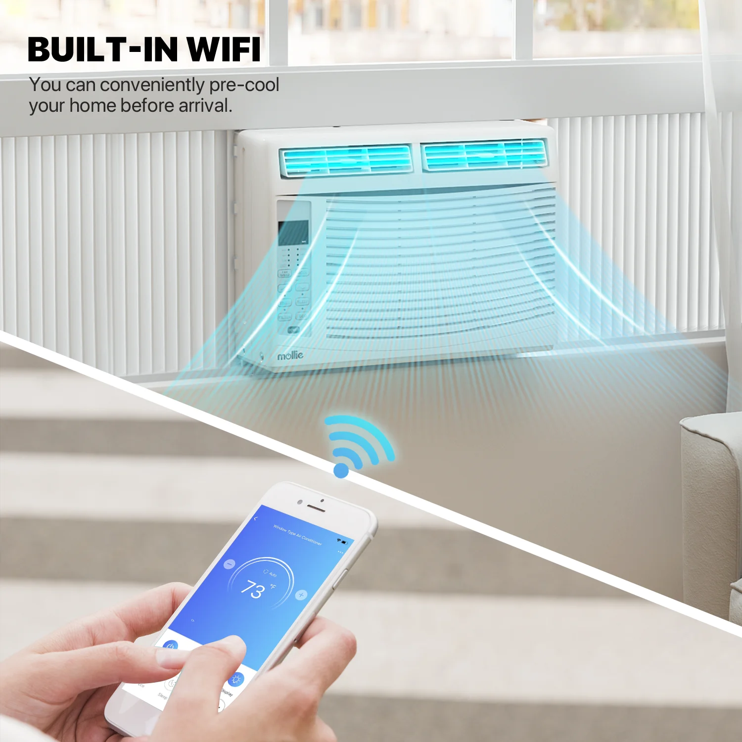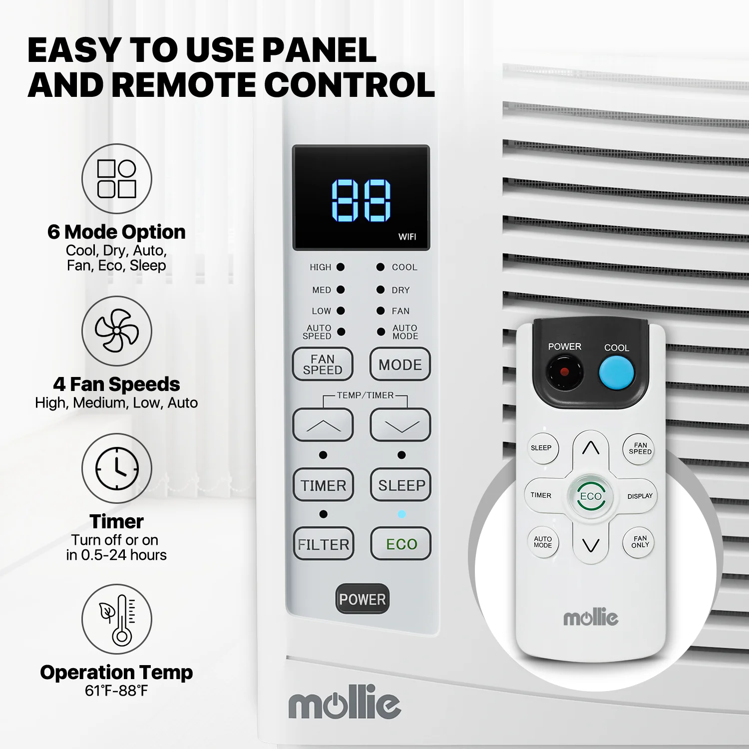 mollie 12,000 BTU 115V Smart Air Conditioner Window Unit with WIFI-Enabled, Energy Saving Room AC Unit with Remote Control & Timer Function, Cools Up to 450 Sq.Ft., White