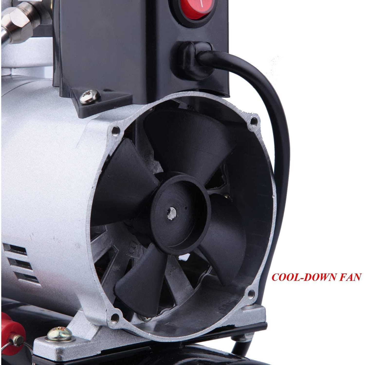Timbertech Professional Piston Airbrush Compressor with Cooling Down Fan ABPST08 Airbrush Mini Compressor Oil-Less Quiet Spraying Air Compressor