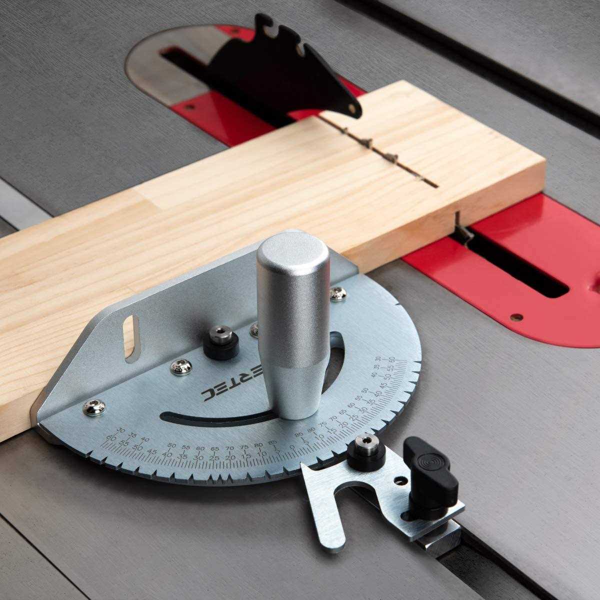 Powertec 71142 Universal Table Saw Miter Gauge Assembly/Miter Gauge with 27 Angle Stops