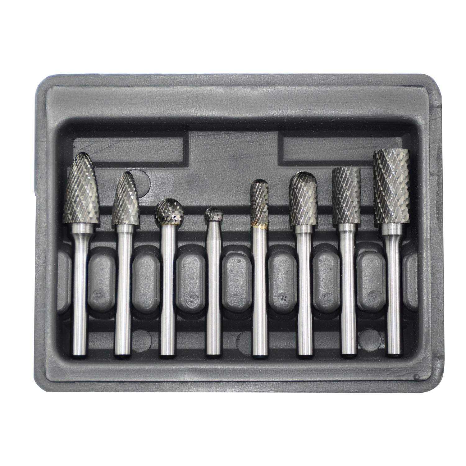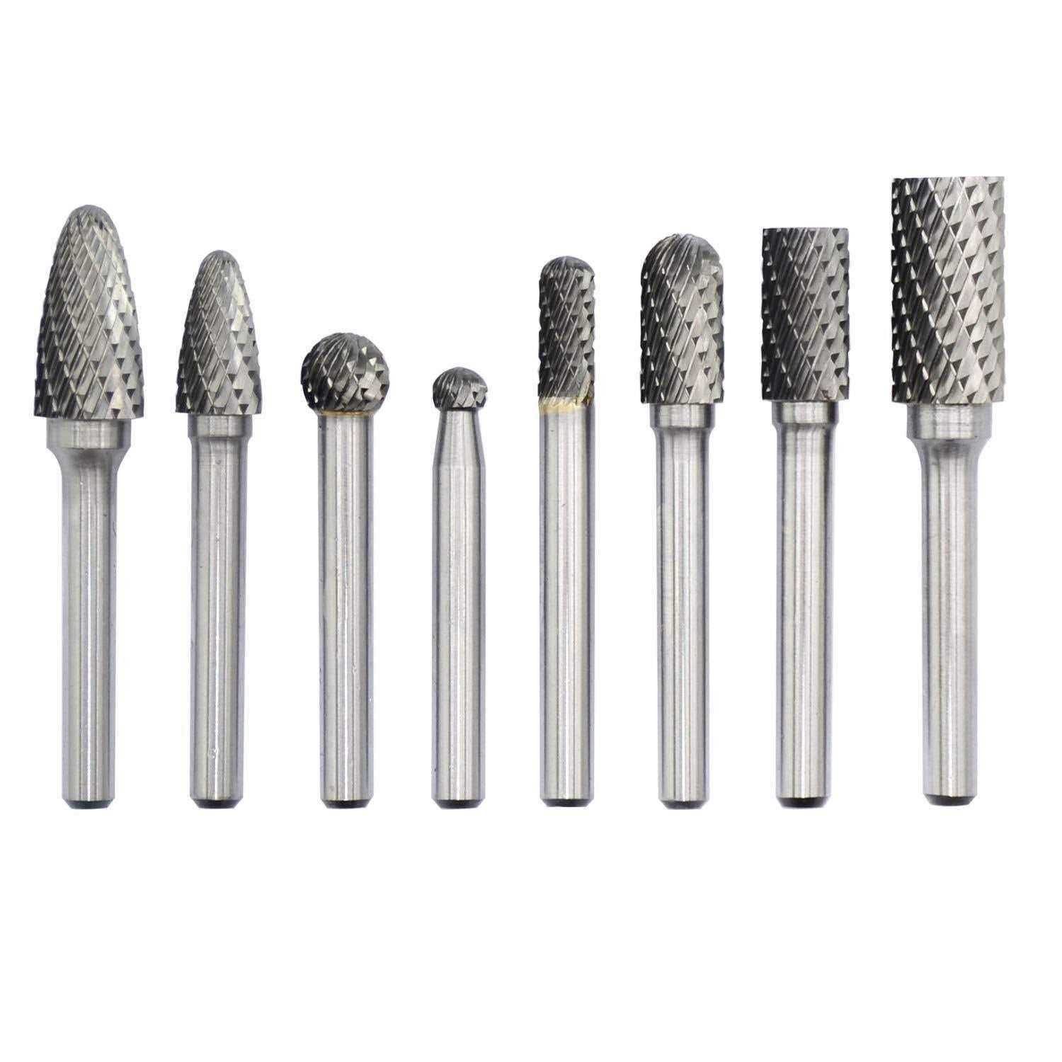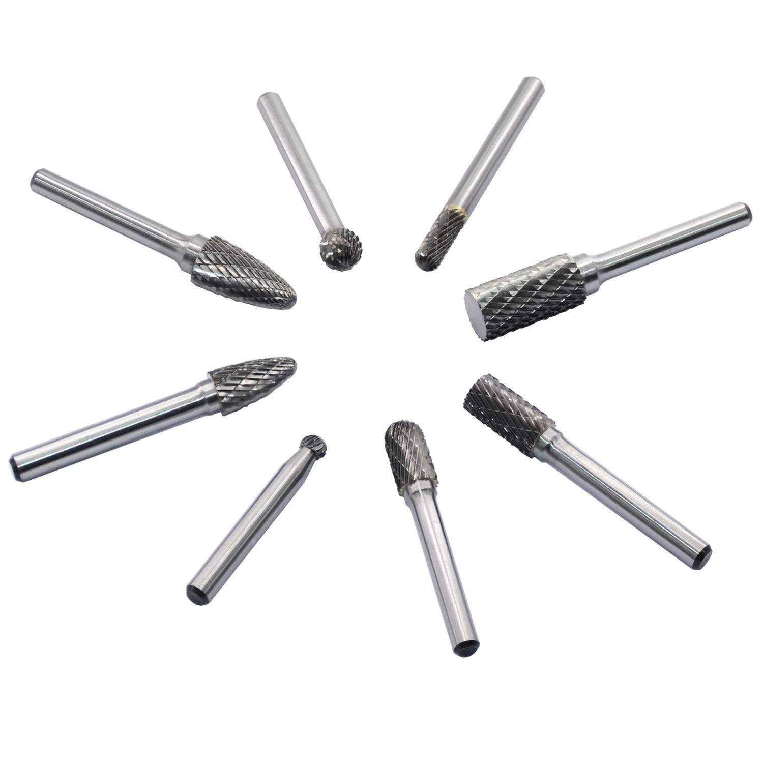 Asieg Tool Carbide Burr Set 8pcs with 1/4”Shank Double Cut Solid Power Tools Tungsten Carbide Rotary Files Bits for Die Grinder Metal Wood Carving