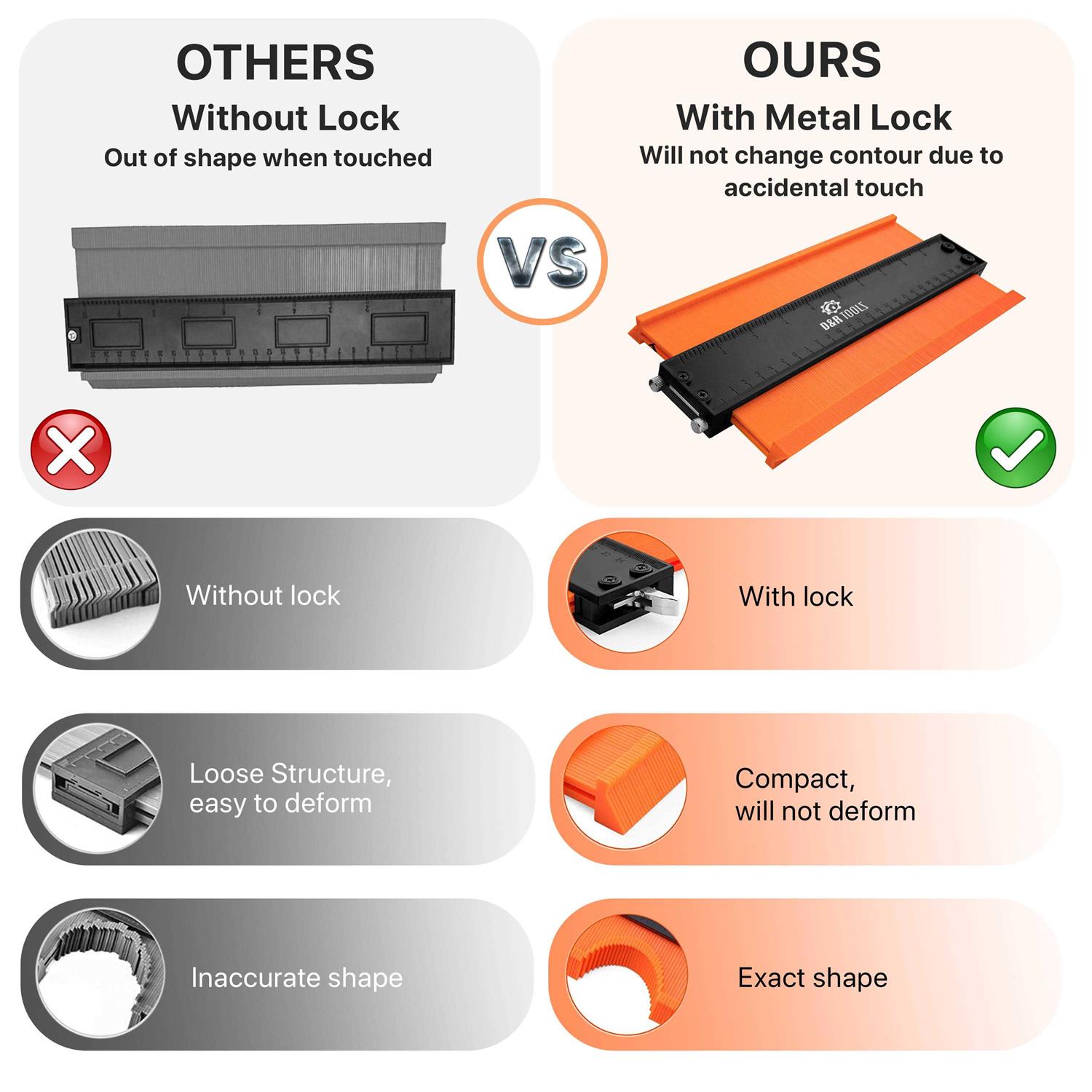 D&R Tools Contour Gauge with Lock Wider Shape Duplication Gauge Tool 5 & 10