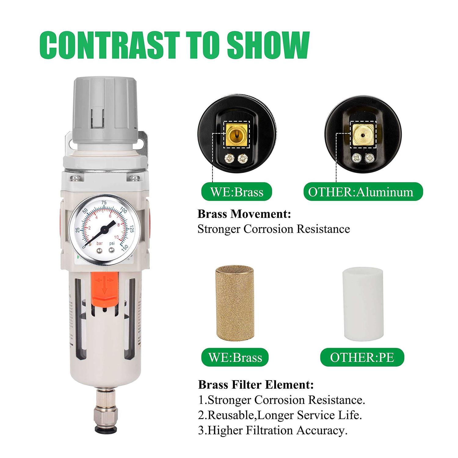 PUDUSI NPT Compressed Air Filter Regulator Combo Air Compressor Water Separator