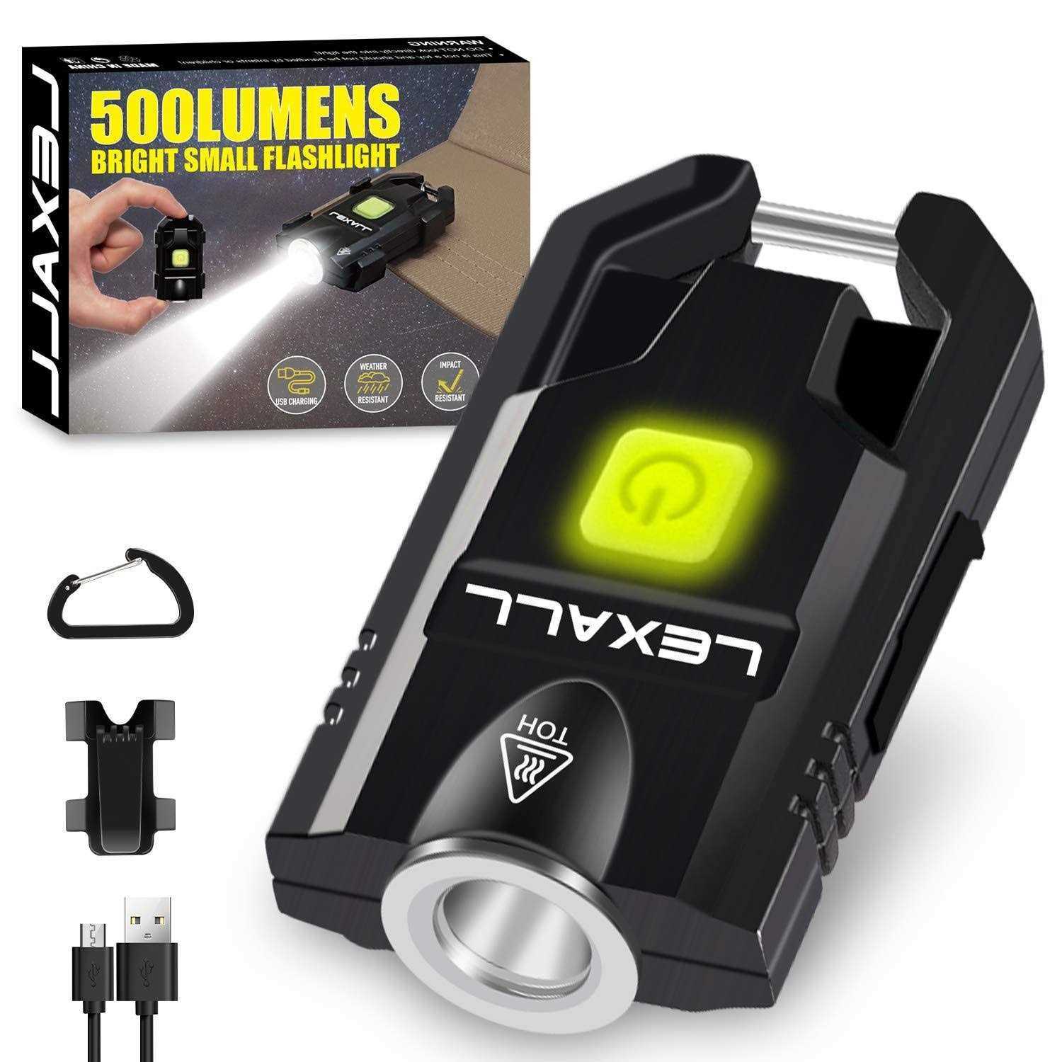 LED Small Flashlight 500Lumens Bright Mini Keychain Light Portable USB Rechargeable Pocket Lights with 3 Modes Compact Baseball Cap Lights Indoor