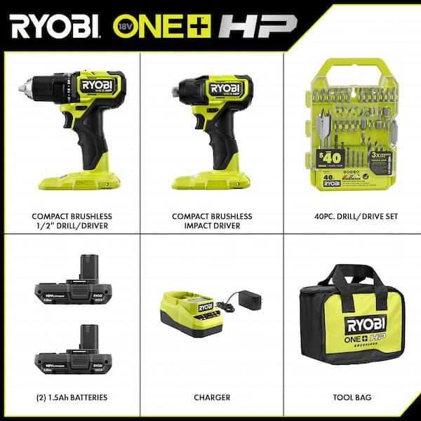 RYOBI ONE+ HP 18V Brushless Cordless Compact 2-Tool Combo Kit w/Drill