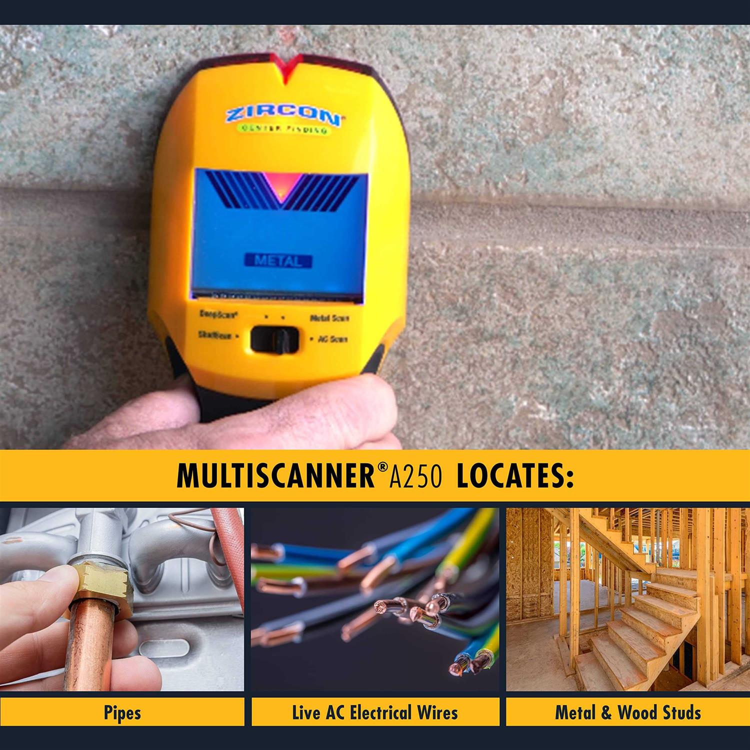 Zircon MultiScanner All-In-One Stud Finder/Metal Detector/Live AC Wire Detection and Scanner