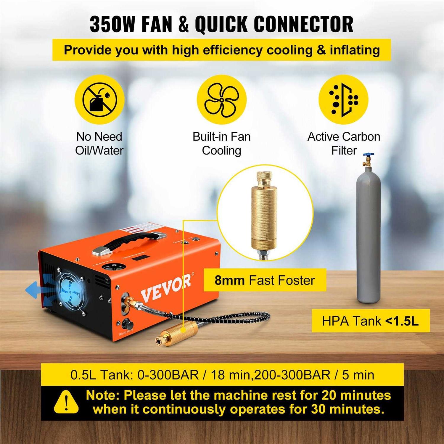 VEVOR PCP Air Compressor 4000psi Portable PCP Compressor 24V DC 110v220v AC PCP Airgun Compressor Auto-stop