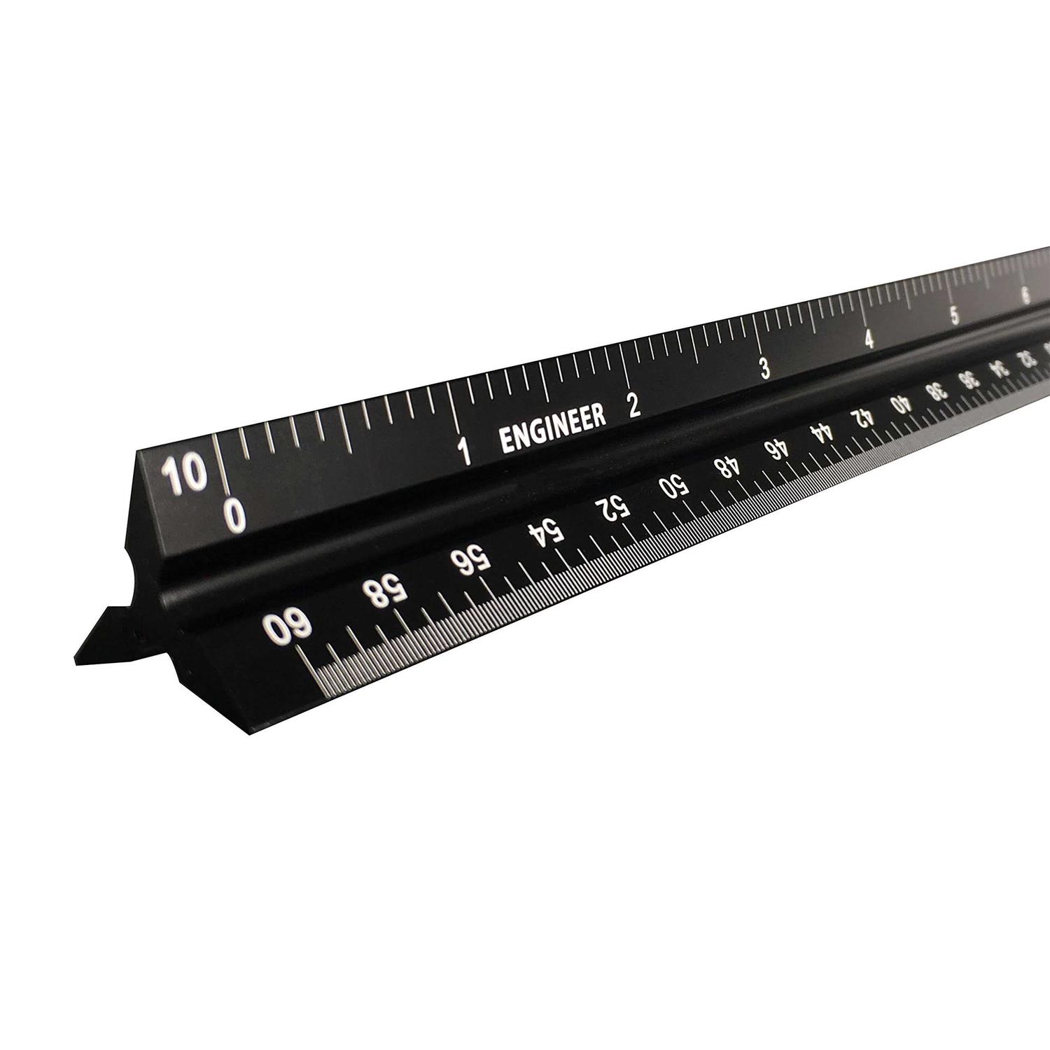 Intoy 12 Inch Triangular Engineer Scale Ruler Anodized Solid Aluminum Core with Laser Etched Scales