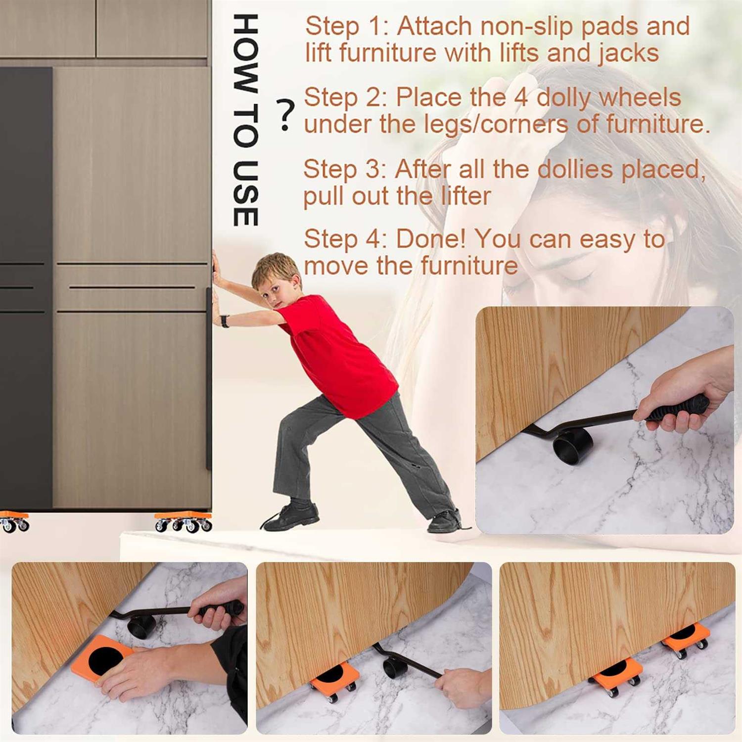 Furniture Mover Dolly with Lifter 4 Wheel Furniture Dolly 800 LB Load Capacity