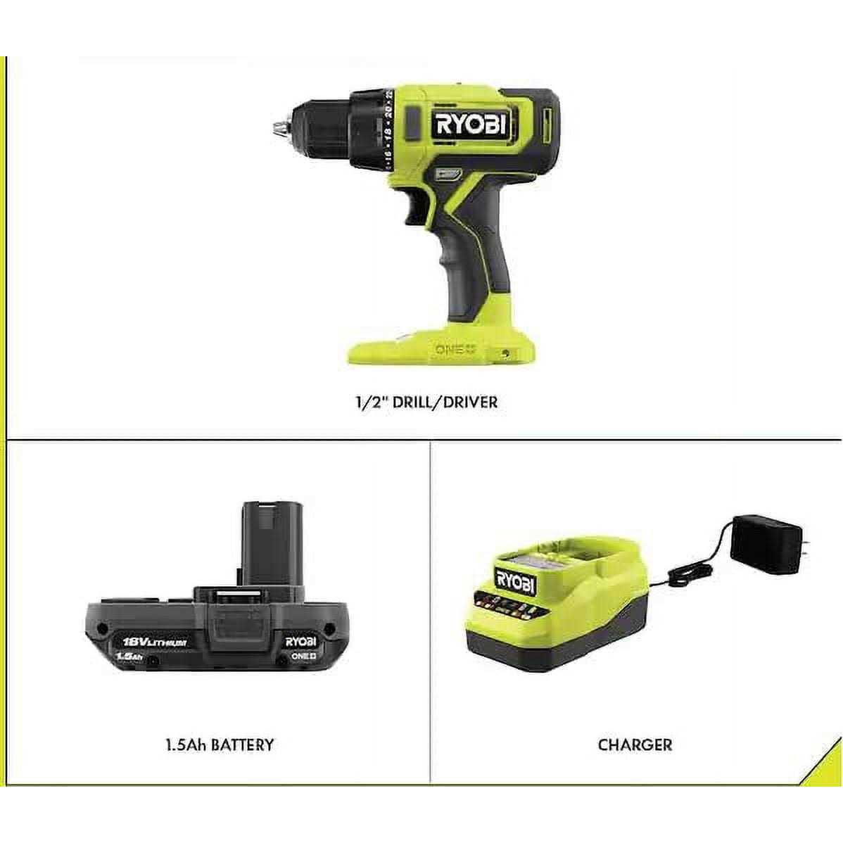 RYOBI ONE+ 18V Cordless 1/2 in. Drill/Driver Kit with 1.5 Ah Battery and Charger