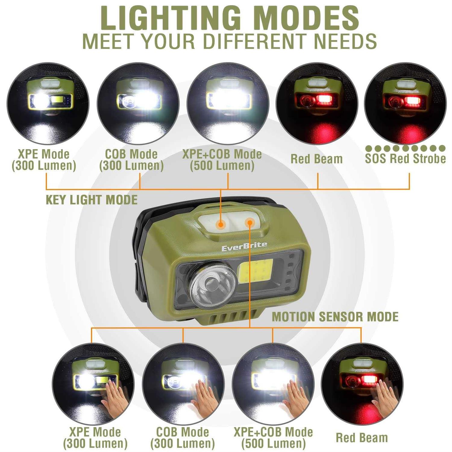 everbrite rechargeable headlamp led bright motion sensor head lamp flashlight