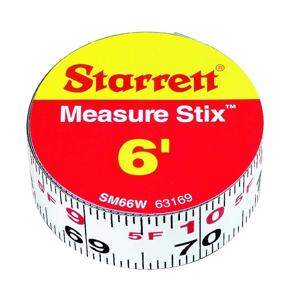 Starrett Measure Stix SM66W Steel White Measure Tape with Adhesive Backing, Engl