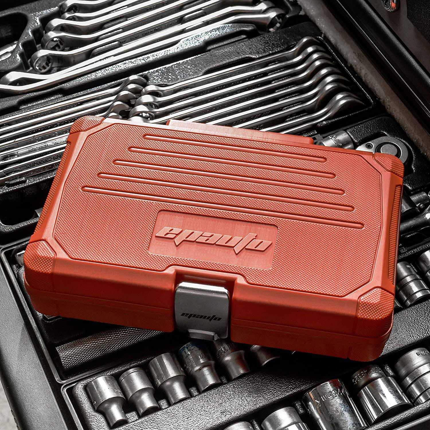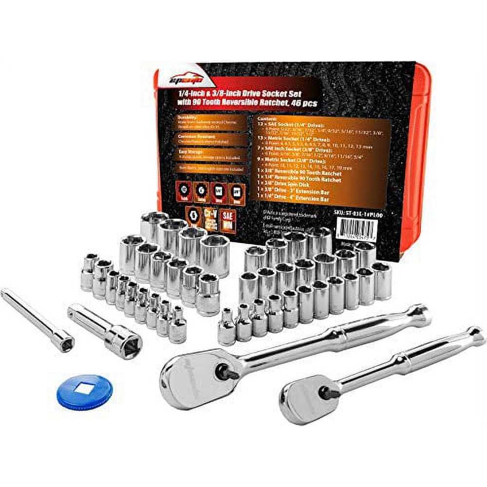 Epauto 46 Pieces 1/4-Inch and 3/8-Inch Drive Socket Set with 90 Tooth Reversible Ratchet