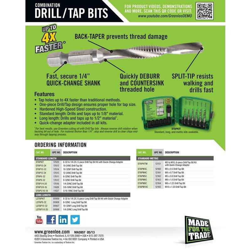 Greenlee LDTAPKIT Long Drill/Tap Kit