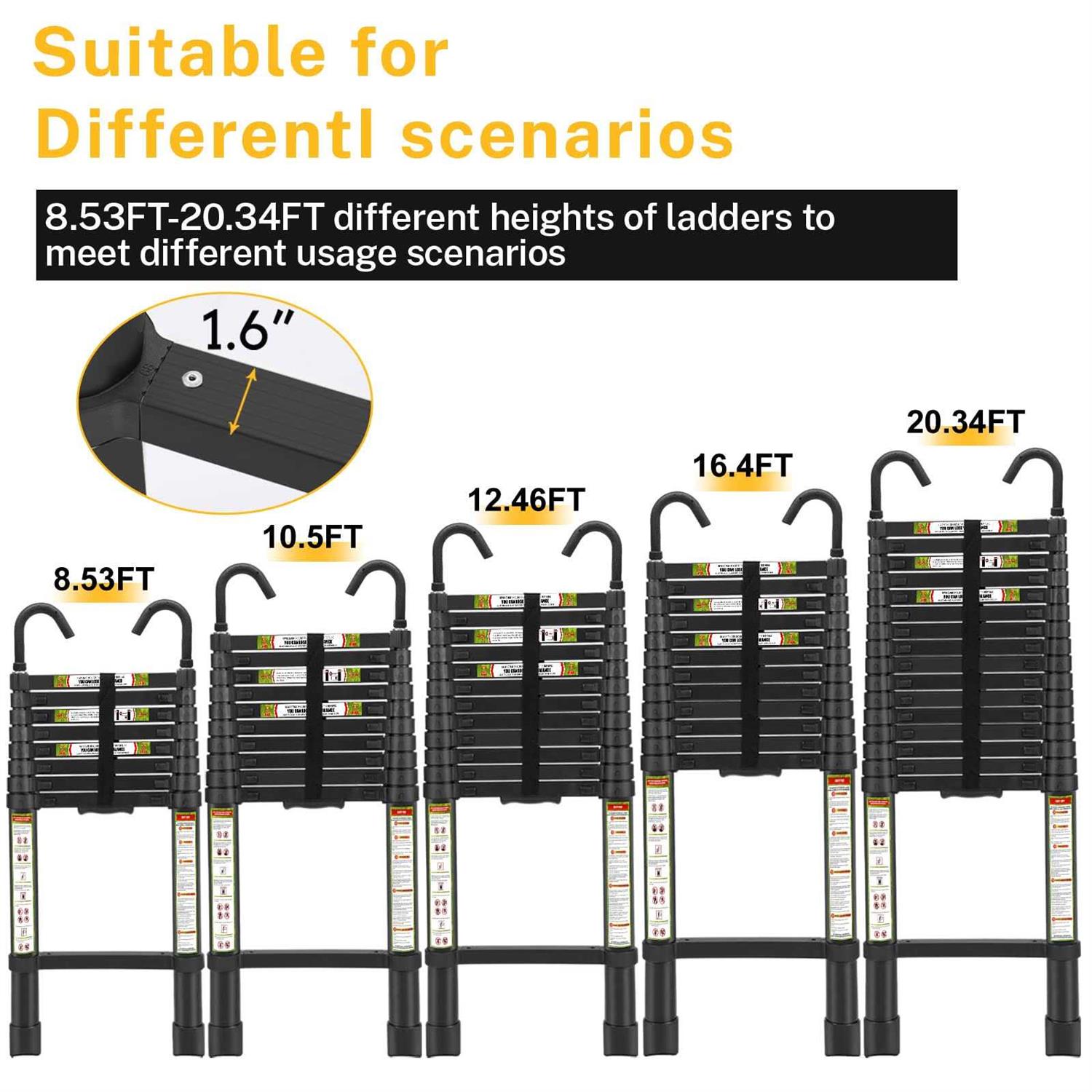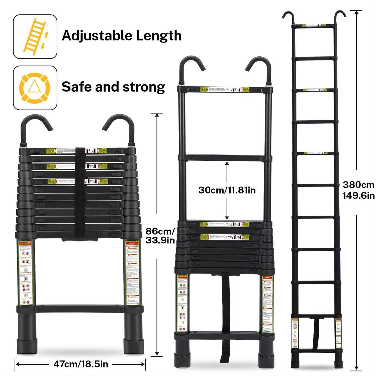 RIKADE Telescopic Ladder Aluminum Telescoping Ladder with Non-Slip Feet and Stable Hook, Portable Extension Ladder for Household and Outdoor