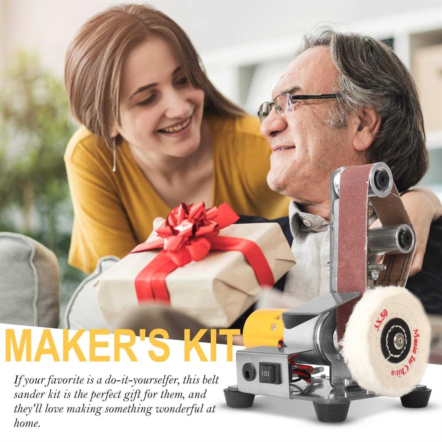 NunDunco Mini Belt Sander Electric Bench Grinder Sanding Machine 7 Adjustable Table Top Grinder Polisher for DIY Woodworking