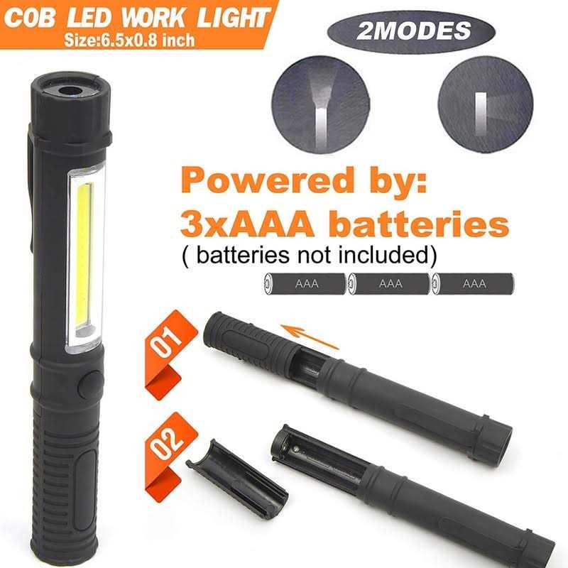 WUTL COB LED Work Flashlight with Magnetic Base and Clip Multi-Function Pocket Pen Light Inspection Work Light