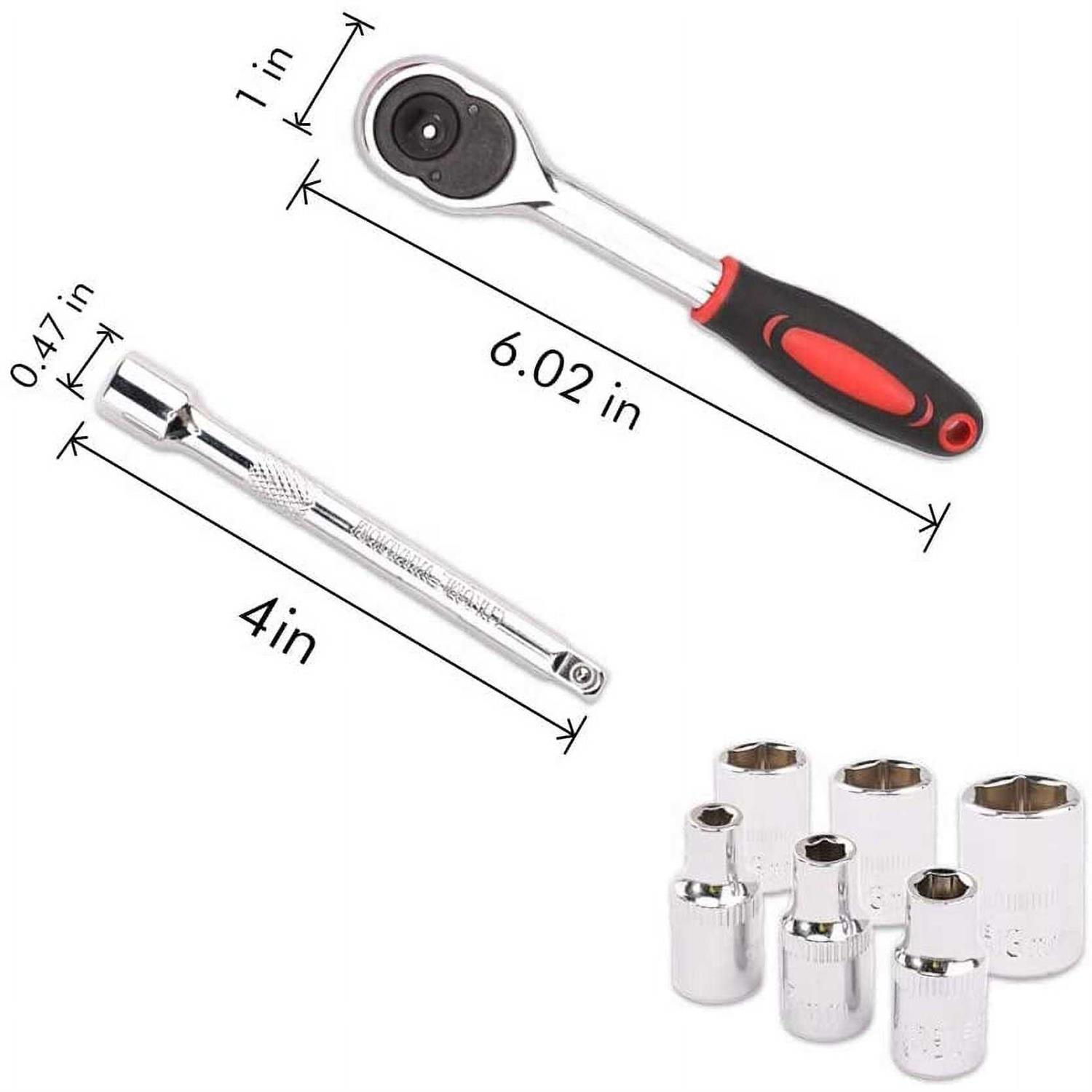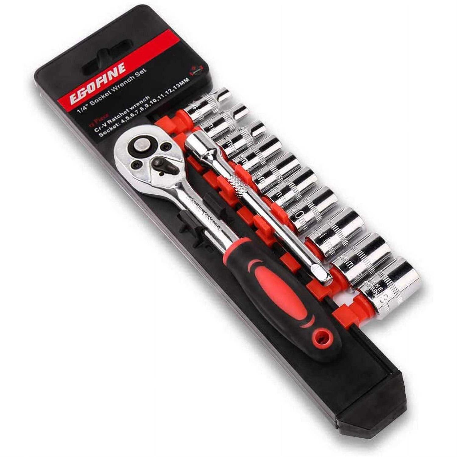 Egofine 12pcs 1/4 Inch Ratchet Socket Wrench Set Drive Socket Set with 10 Sockets 4-13mm and 2 Way Quick Released Ratchet Handle and Extension Bar