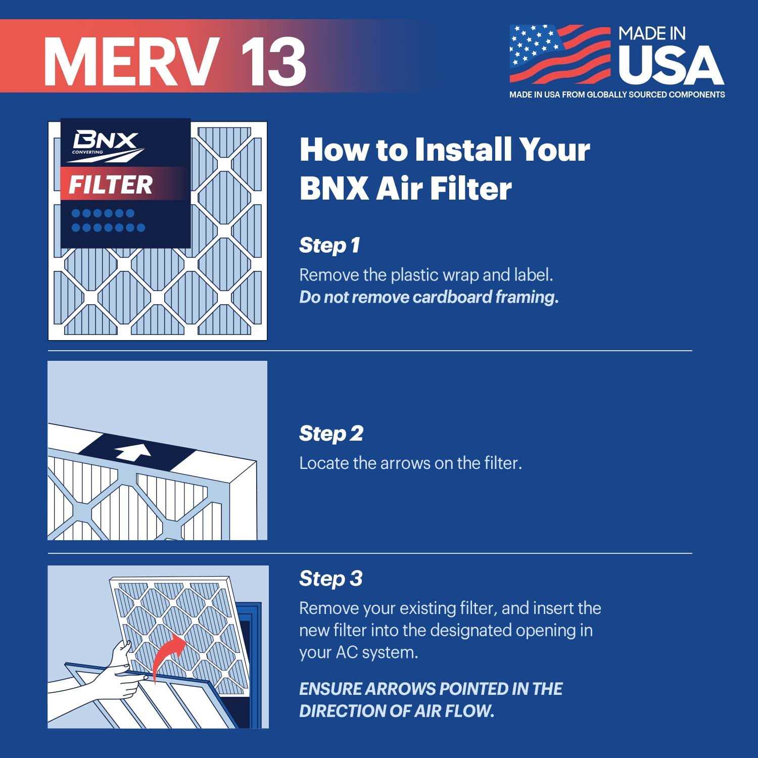 BNX MERV 13 Air Filter MADE IN USA