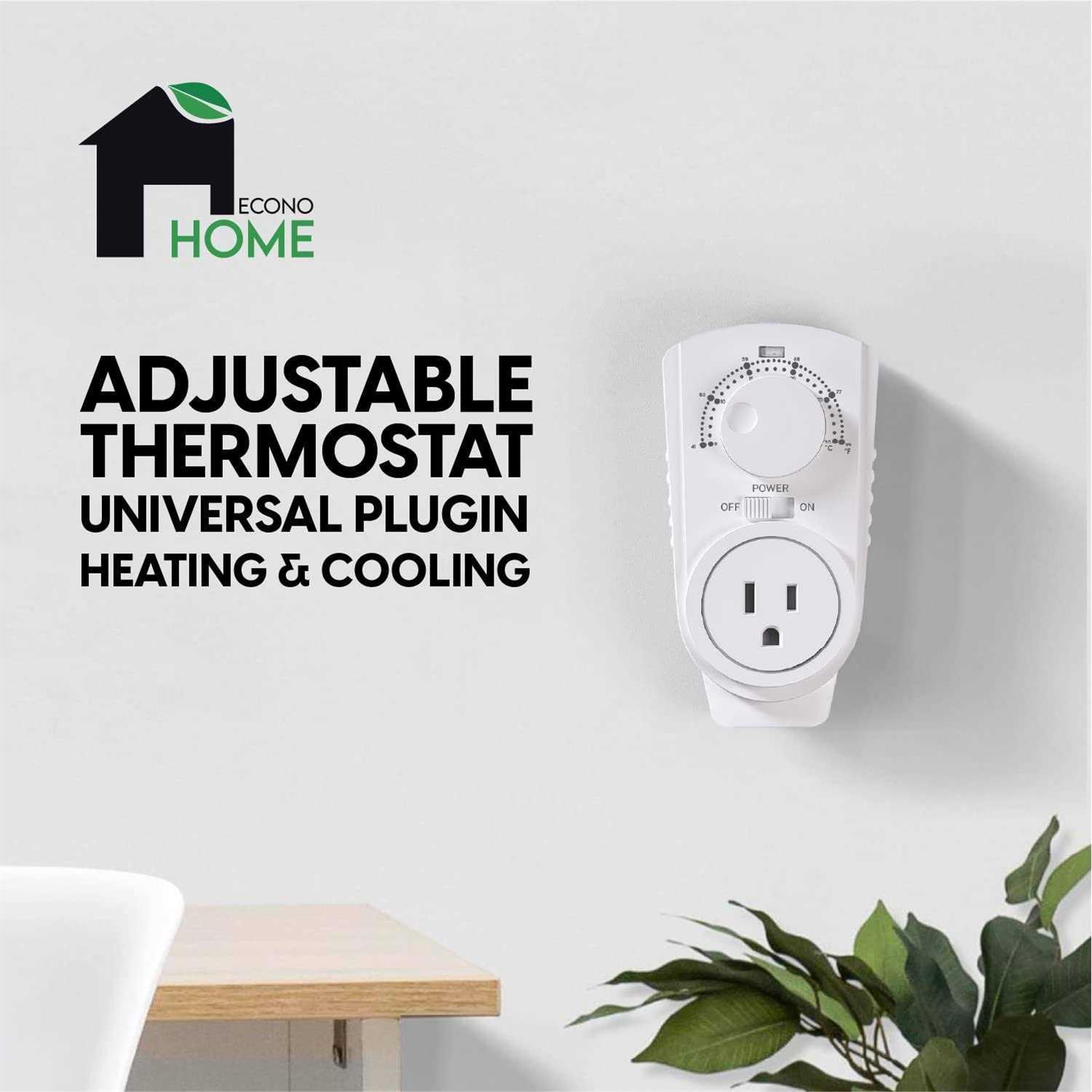 EconoHome Adjustable Thermostat Universal Plugin Heating & Cooling Thermostat